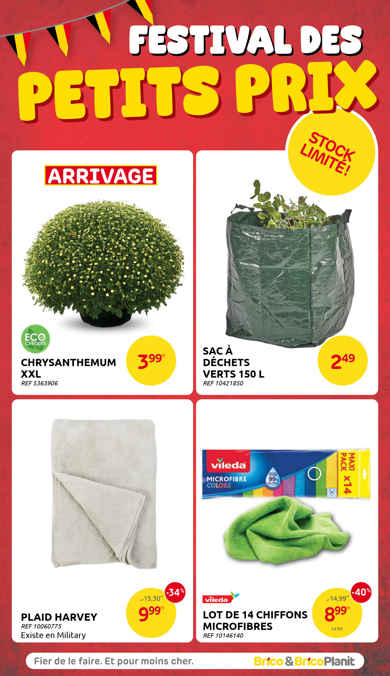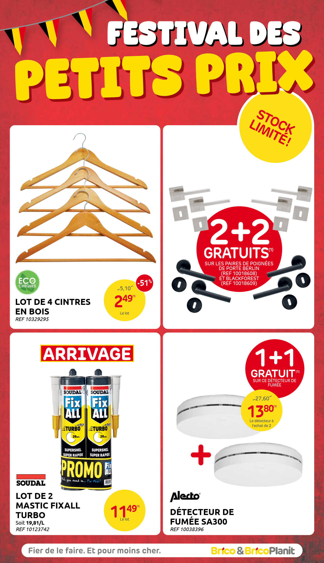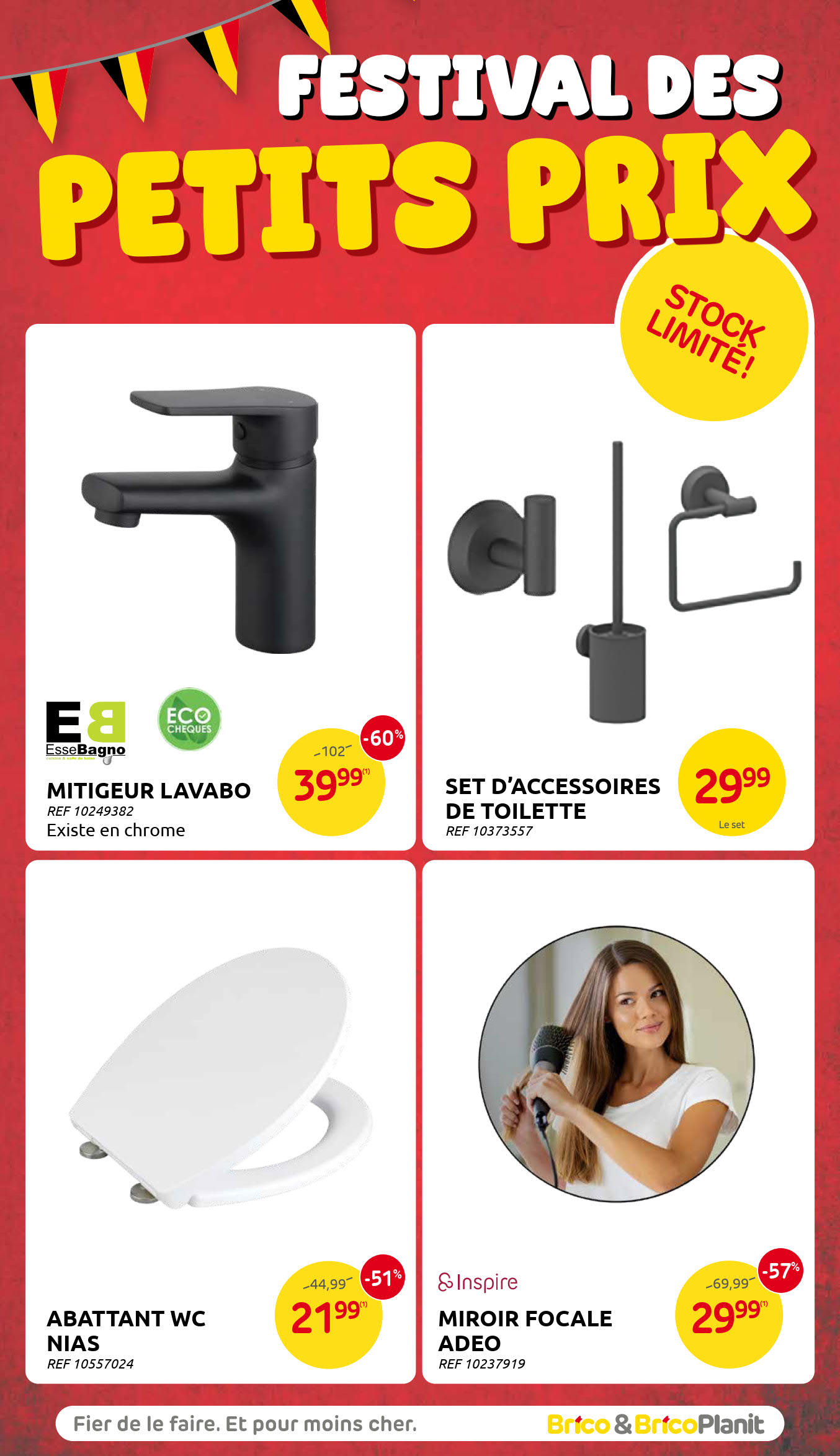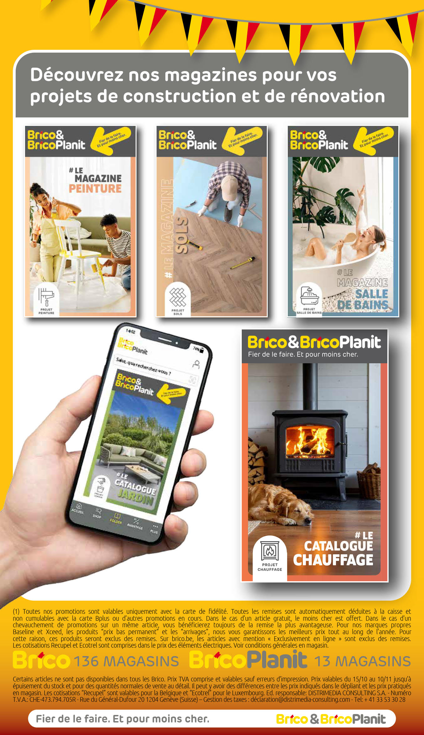 Vous êtes à la recherche de bonnes affaires et de réductions exceptionnelles? Ne cherchez plus loin que Brico Plan-it pour répondre à tous vos besoins en matière de shopping. Nos promotions et offres sont proposées à des prix incroyablement bas, et notre gamme de produits convient à tous les goûts et à tous les budgets. Consultez notre brochure de promotion valable du 15 octobre au 10 novembre, et explorez le catalogue pour créer votre liste de courses. Ne manquez pas nos offres hebdomadaires et nos offres exclusives et restez à jour avec les dernières offres et réductions chez Brico Plan-it.