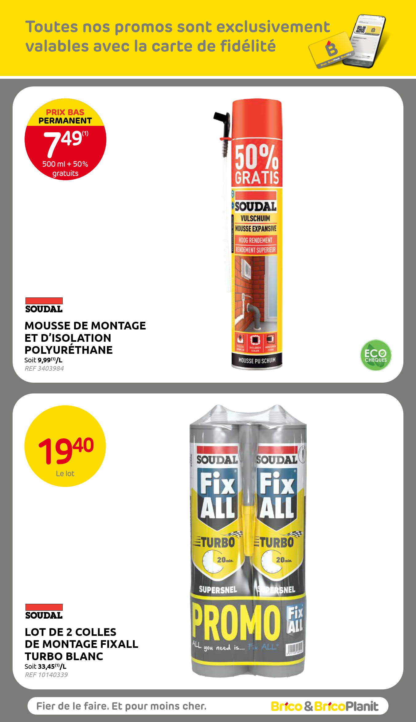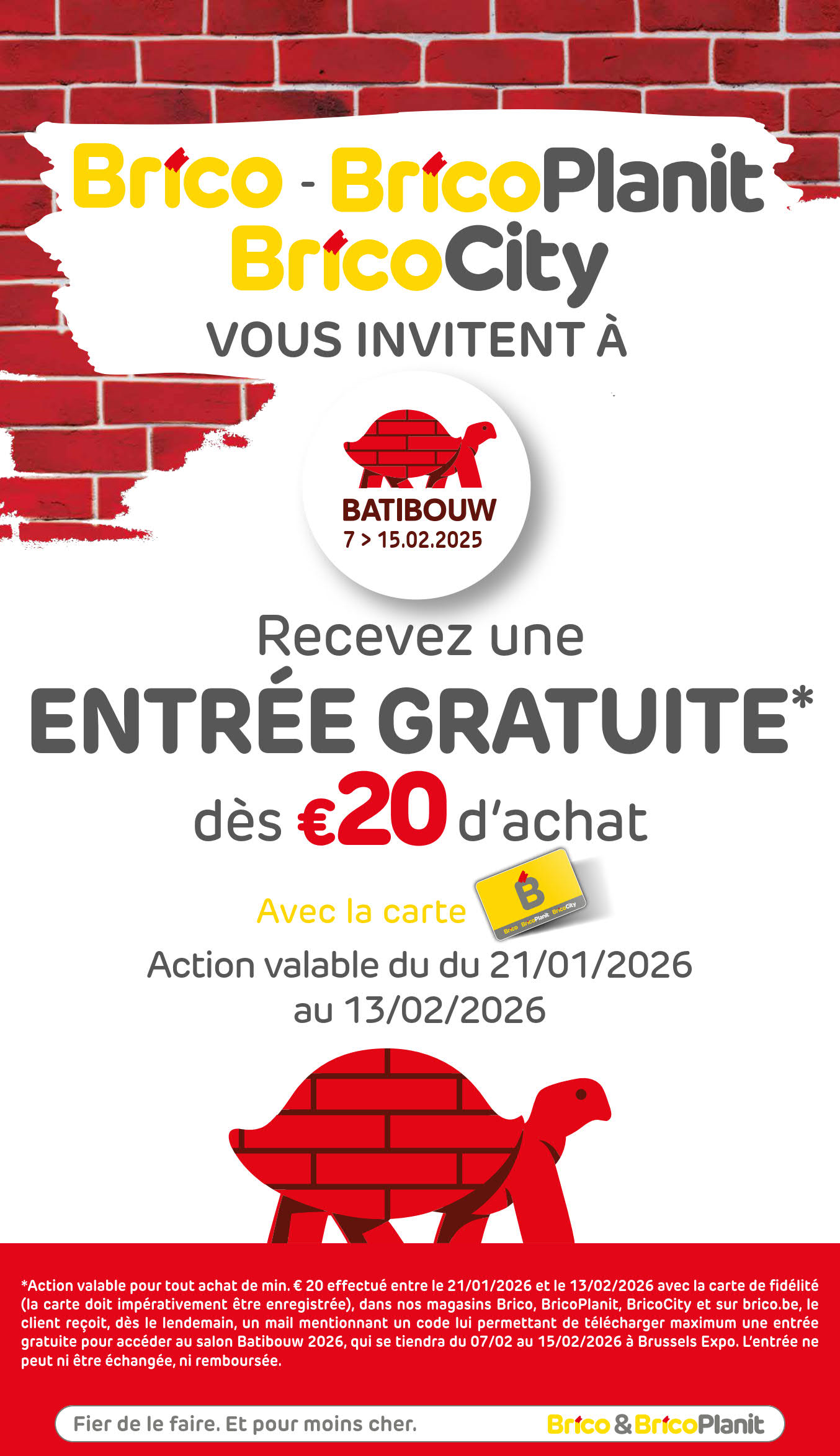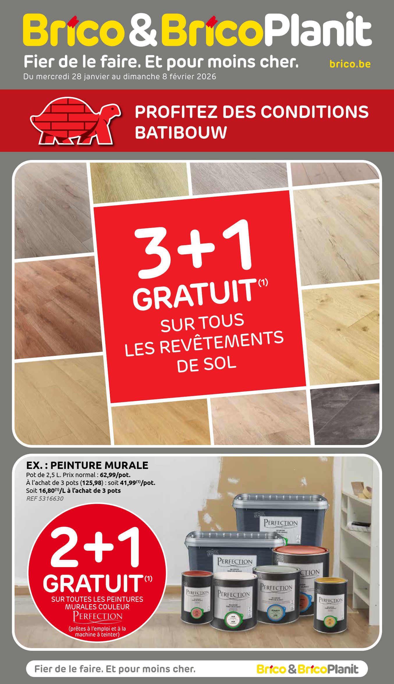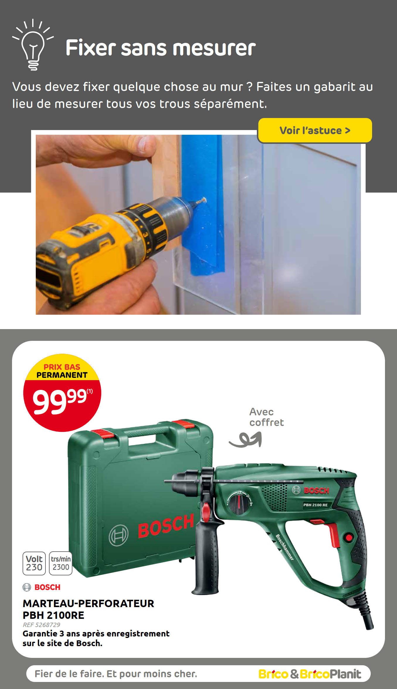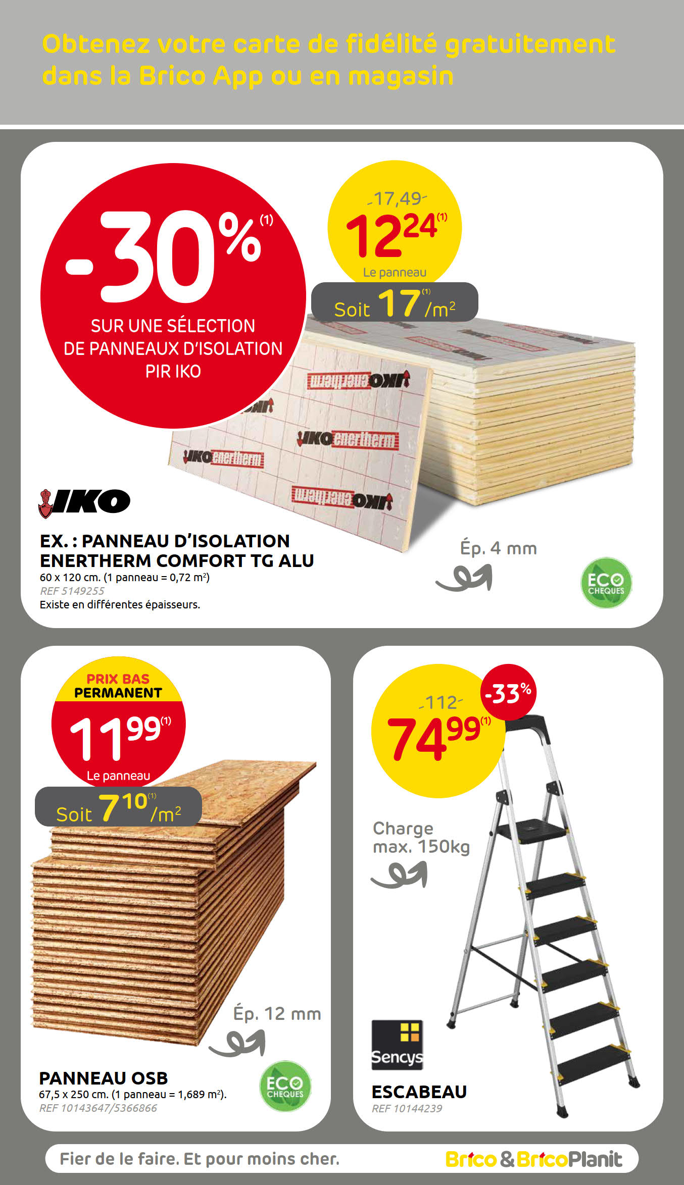 Vous êtes à la recherche de bonnes affaires et de réductions exceptionnelles? Ne cherchez plus loin que Brico Plan-it pour répondre à tous vos besoins en matière de shopping. Nos promotions et offres sont proposées à des prix incroyablement bas, et notre gamme de produits convient à tous les goûts et à tous les budgets. Consultez notre brochure de promotion valable du 28 janvier au 08 février, et explorez le catalogue pour créer votre liste de courses. Ne manquez pas nos offres hebdomadaires et nos offres exclusives et restez à jour avec les dernières offres et réductions chez Brico Plan-it.