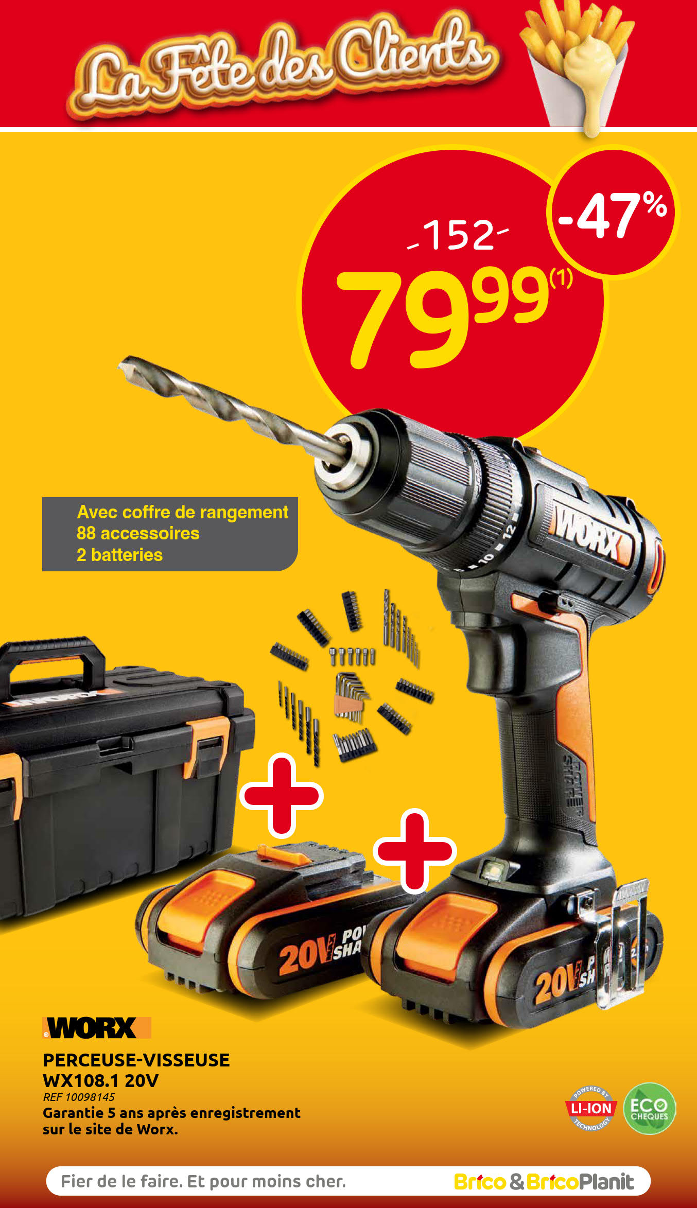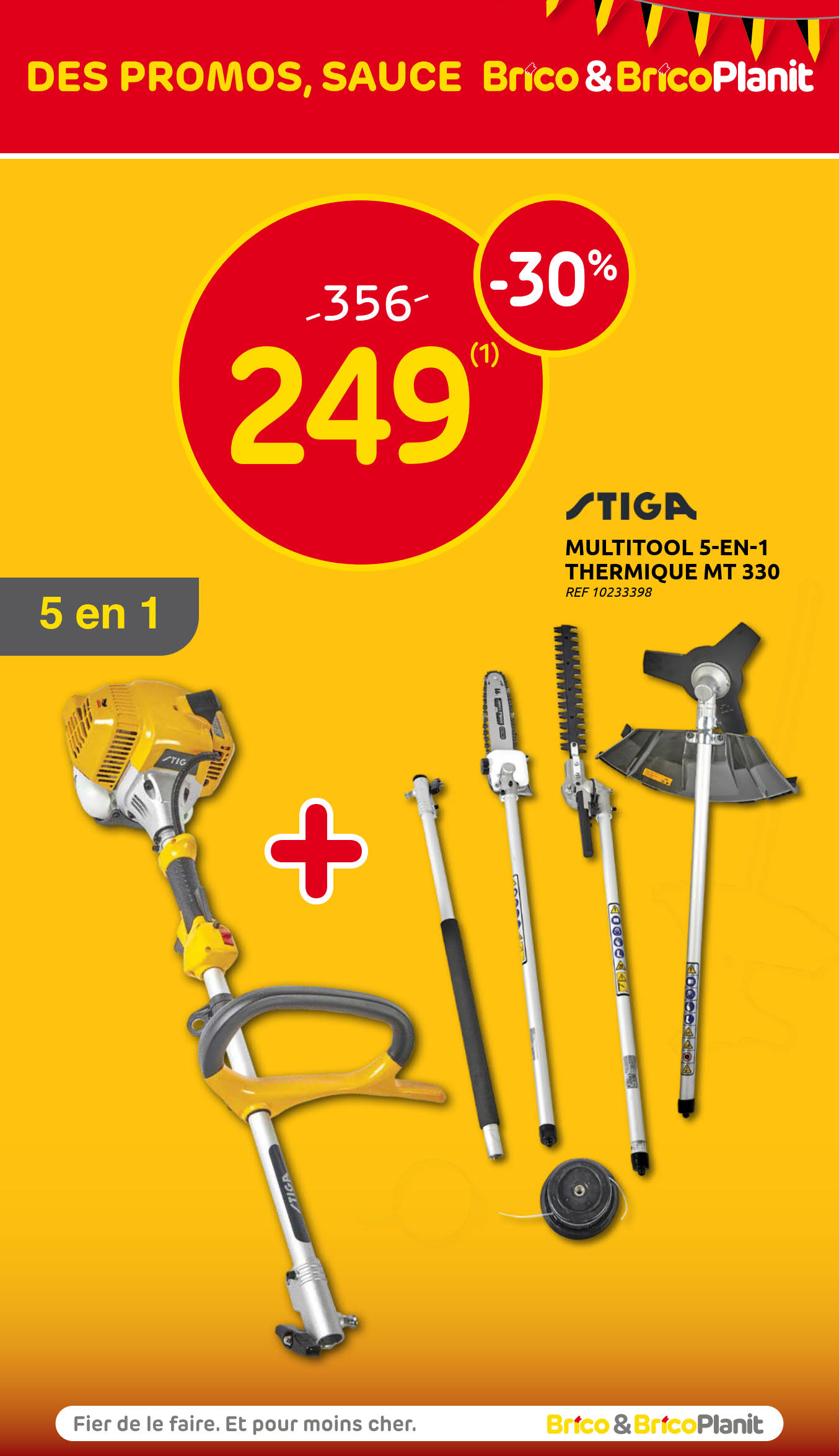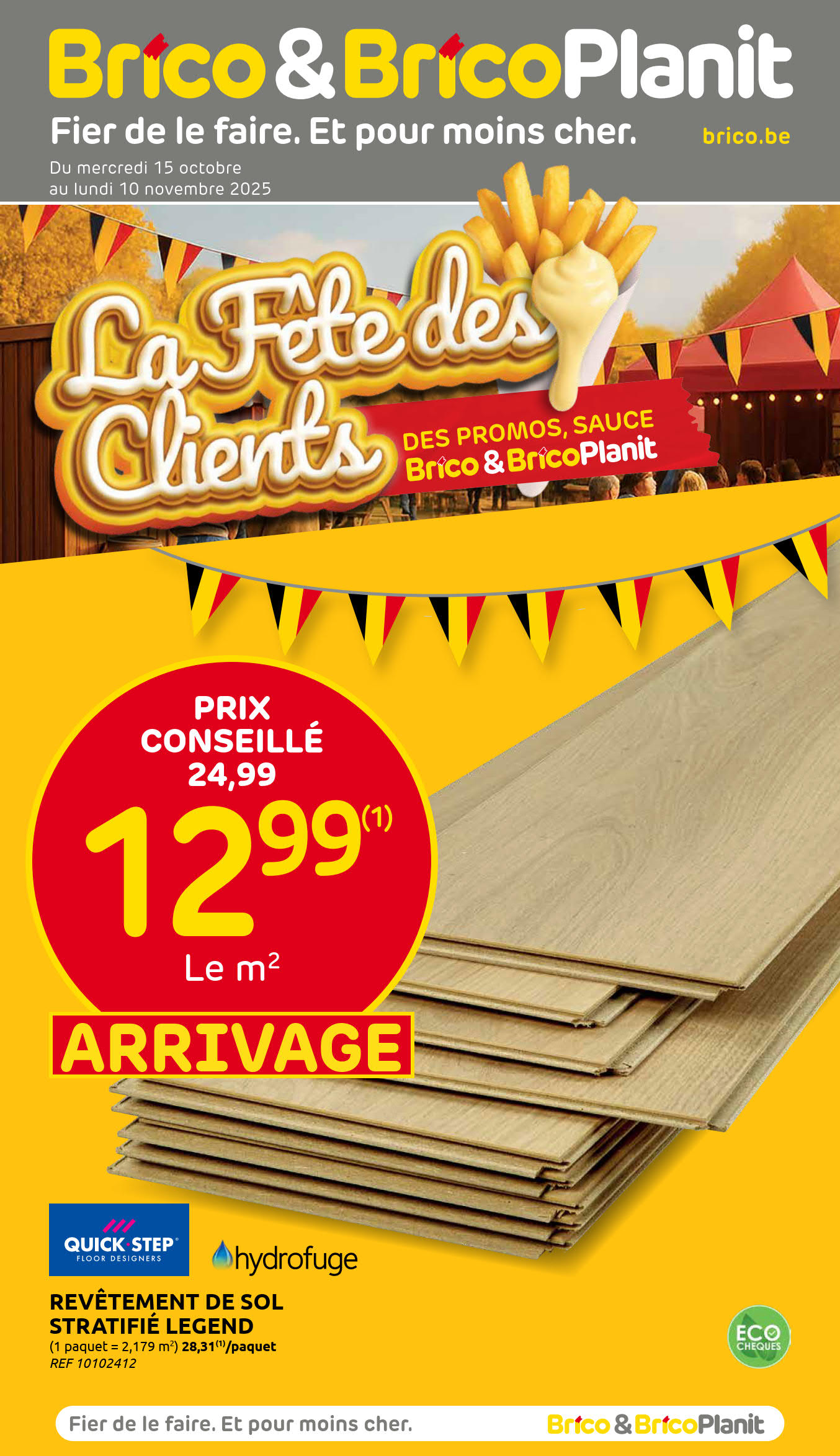 Vous êtes à la recherche de bonnes affaires et de réductions exceptionnelles? Ne cherchez plus loin que Brico pour répondre à tous vos besoins en matière de shopping. Nos promotions et offres sont proposées à des prix incroyablement bas, et notre gamme de produits convient à tous les goûts et à tous les budgets. Consultez notre brochure de promotion valable du 15 octobre au 10 novembre, et explorez le catalogue pour créer votre liste de courses. Ne manquez pas nos offres hebdomadaires et nos offres exclusives et restez à jour avec les dernières offres et réductions chez Brico.