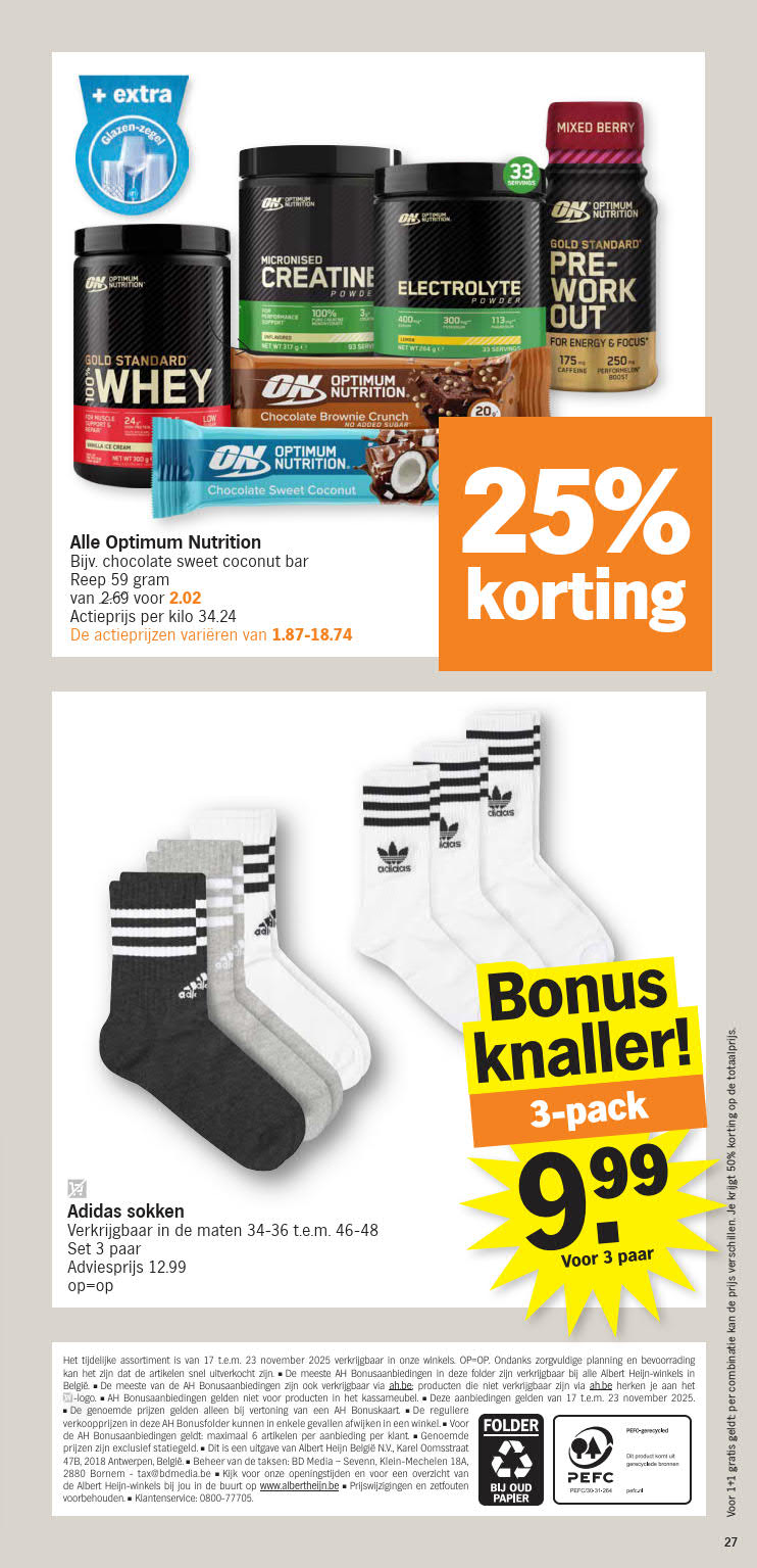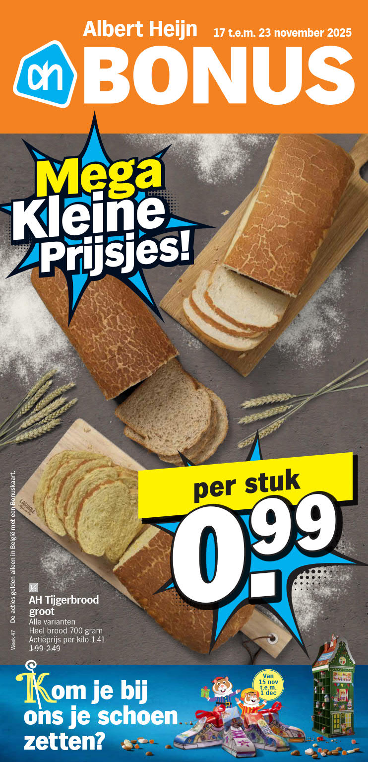 Vous êtes à la recherche de bonnes affaires et de réductions exceptionnelles? Ne cherchez plus loin que Albert Heijn pour répondre à tous vos besoins en matière de shopping. Nos promotions et offres sont proposées à des prix incroyablement bas, et notre gamme de produits convient à tous les goûts et à tous les budgets. Consultez notre brochure de promotion valable du 17 novembre au 23 novembre, et explorez le catalogue pour créer votre liste de courses. Ne manquez pas nos offres hebdomadaires et nos offres exclusives et restez à jour avec les dernières offres et réductions chez Albert Heijn.