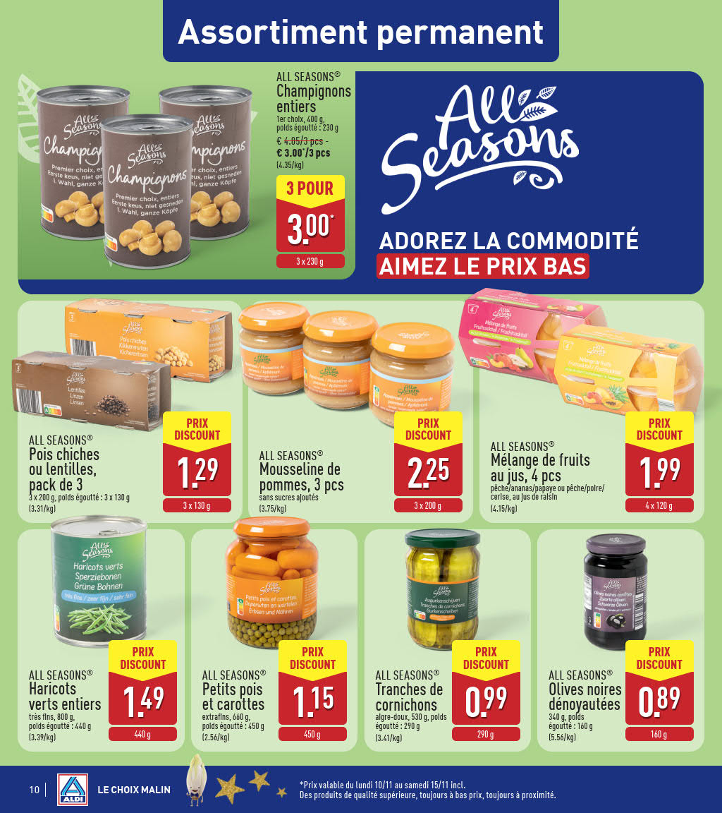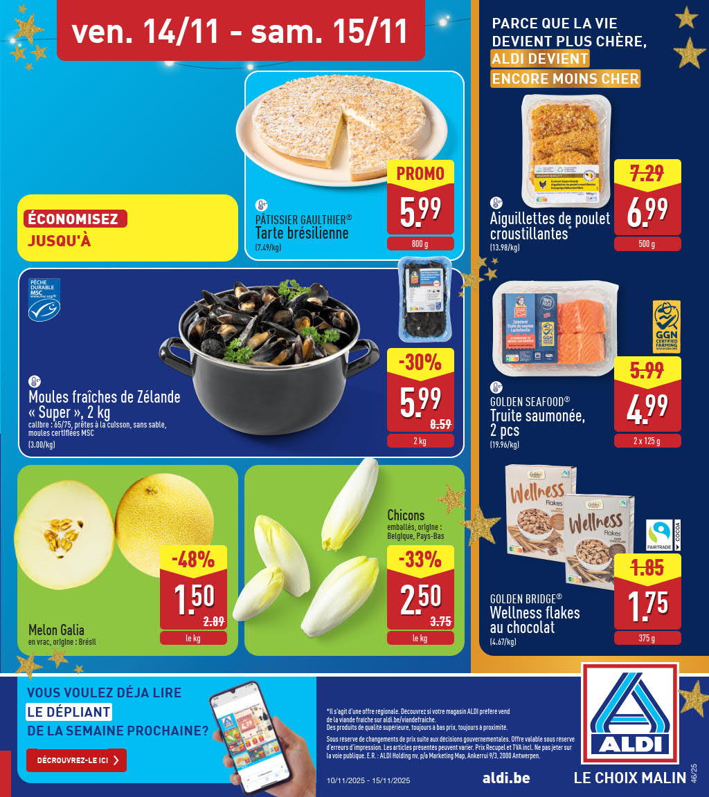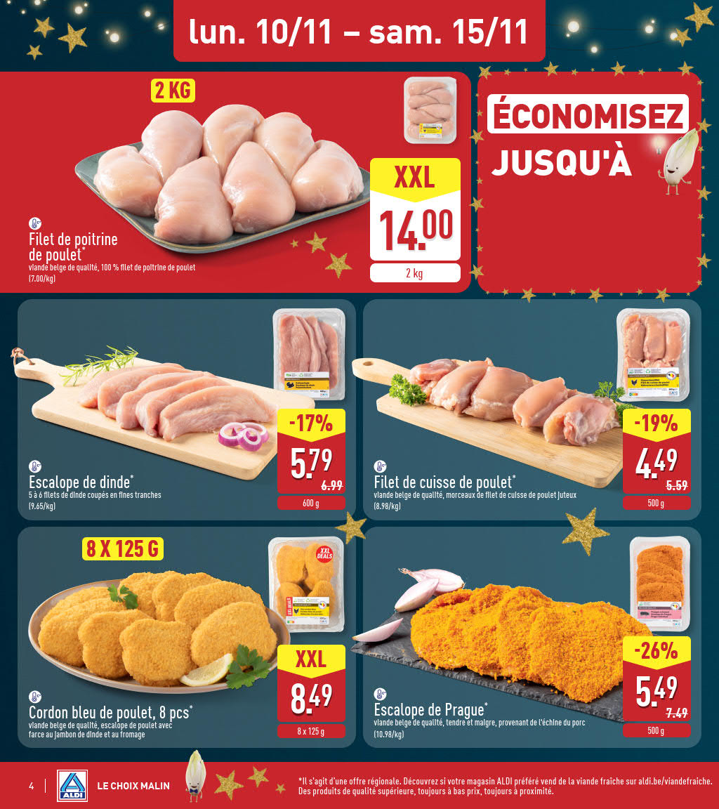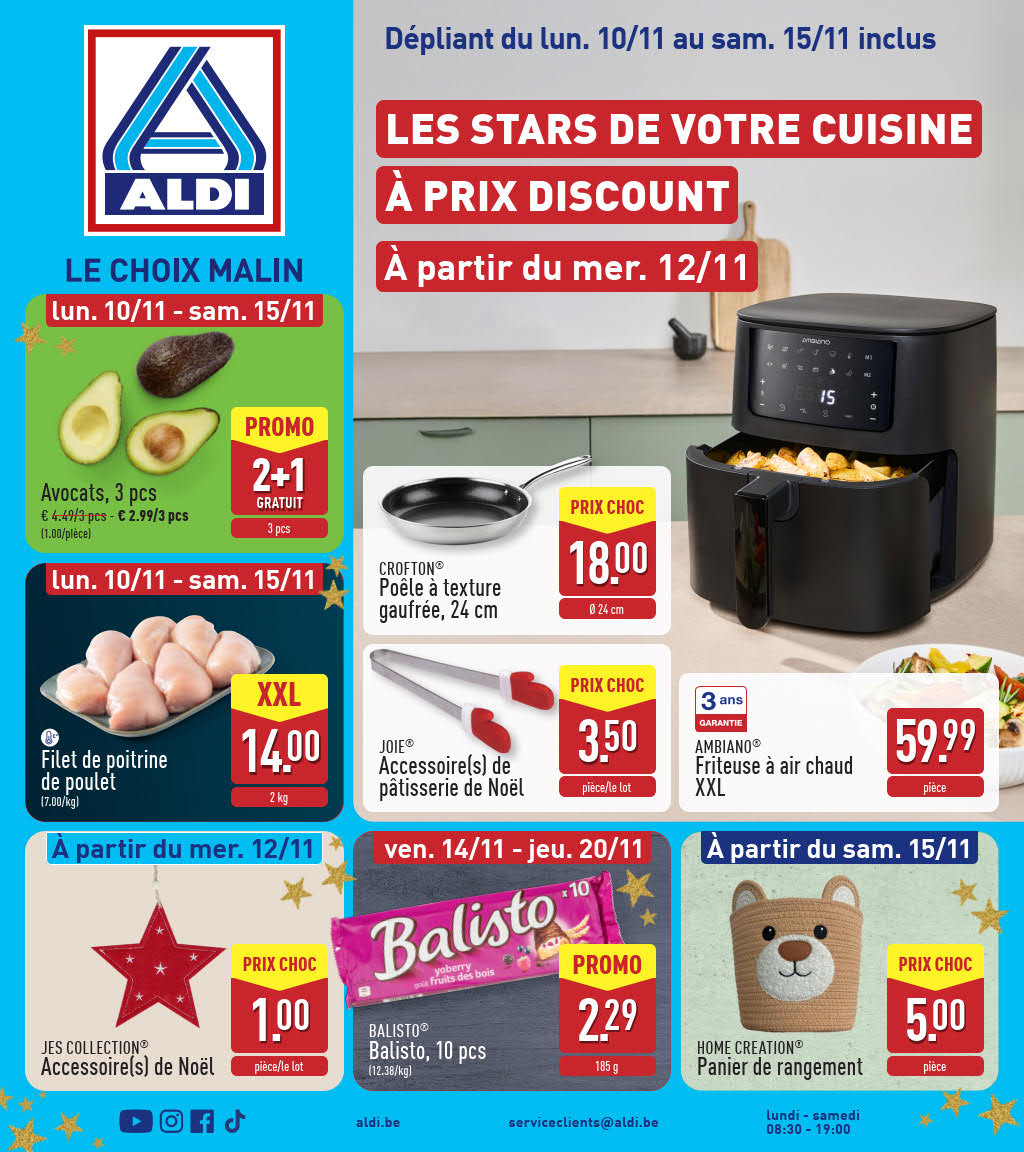 Vous êtes à la recherche de bonnes affaires et de réductions exceptionnelles? Ne cherchez plus loin que Aldi pour répondre à tous vos besoins en matière de shopping. Nos promotions et offres sont proposées à des prix incroyablement bas, et notre gamme de produits convient à tous les goûts et à tous les budgets. Consultez notre brochure de promotion valable du 10 novembre au 15 novembre, et explorez le catalogue pour créer votre liste de courses. Ne manquez pas nos offres hebdomadaires et nos offres exclusives et restez à jour avec les dernières offres et réductions chez Aldi.