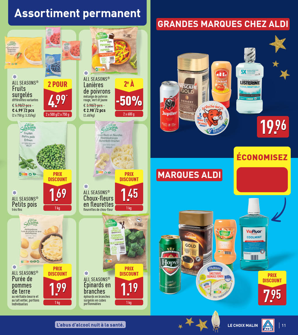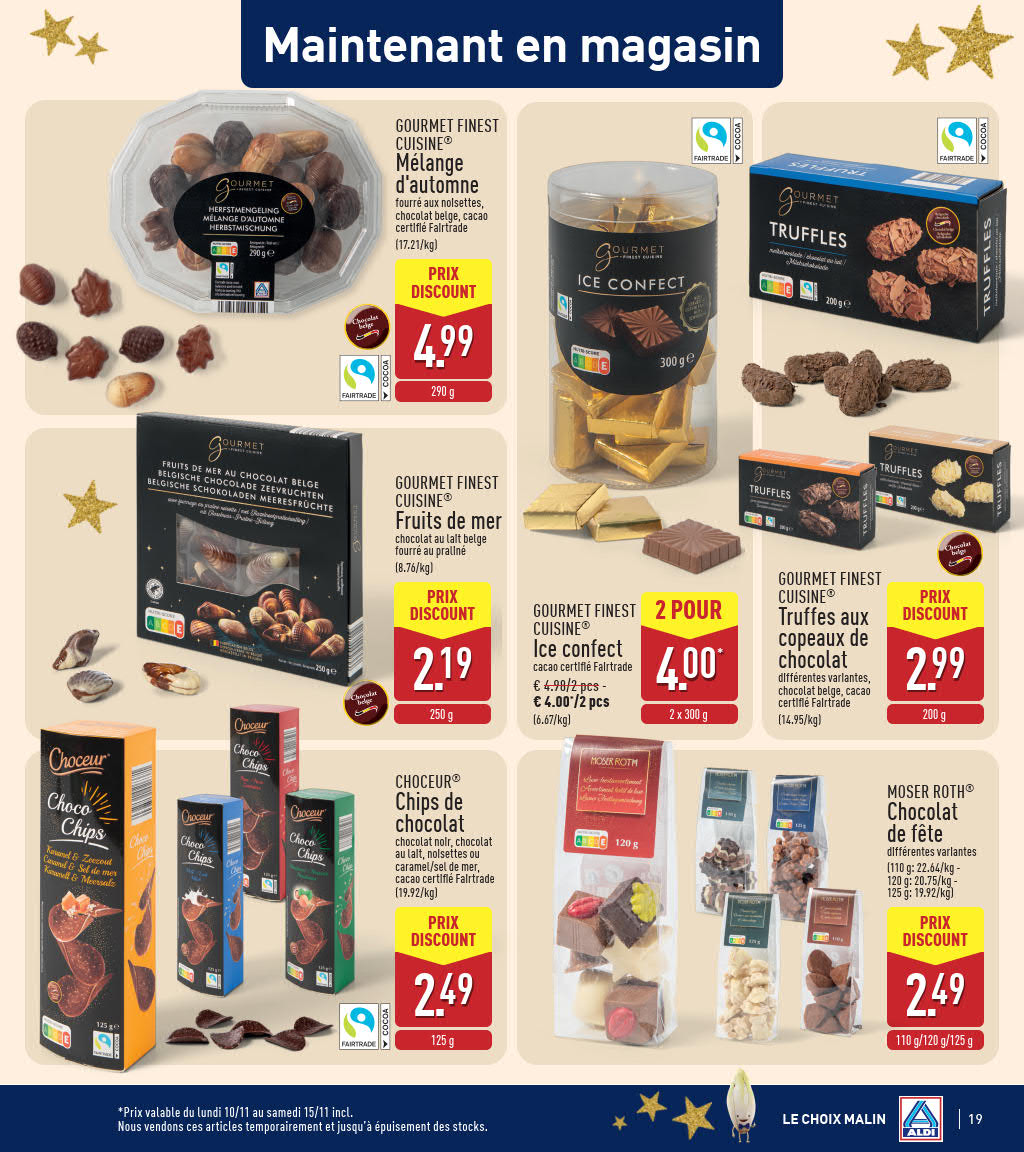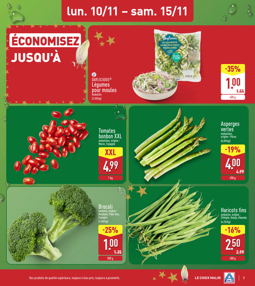 Vous êtes à la recherche de bonnes affaires et de réductions exceptionnelles? Ne cherchez plus loin que Aldi pour répondre à tous vos besoins en matière de shopping. Nos promotions et offres sont proposées à des prix incroyablement bas, et notre gamme de produits convient à tous les goûts et à tous les budgets. Consultez notre brochure de promotion valable du 10 novembre au 15 novembre, et explorez le catalogue pour créer votre liste de courses. Ne manquez pas nos offres hebdomadaires et nos offres exclusives et restez à jour avec les dernières offres et réductions chez Aldi.