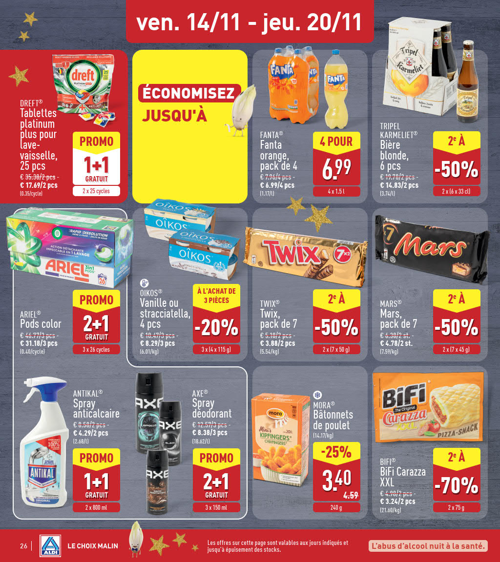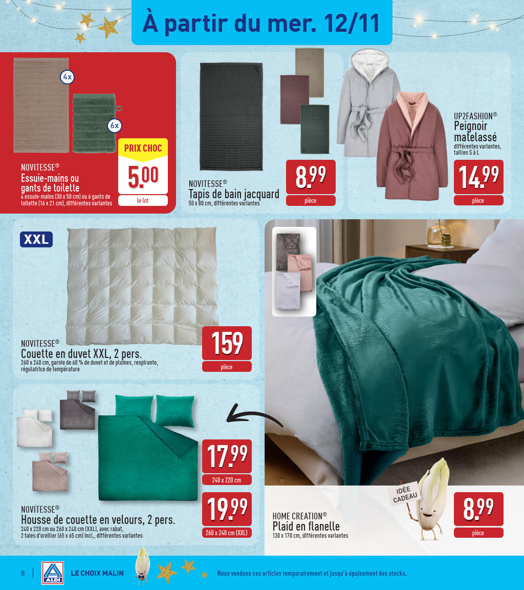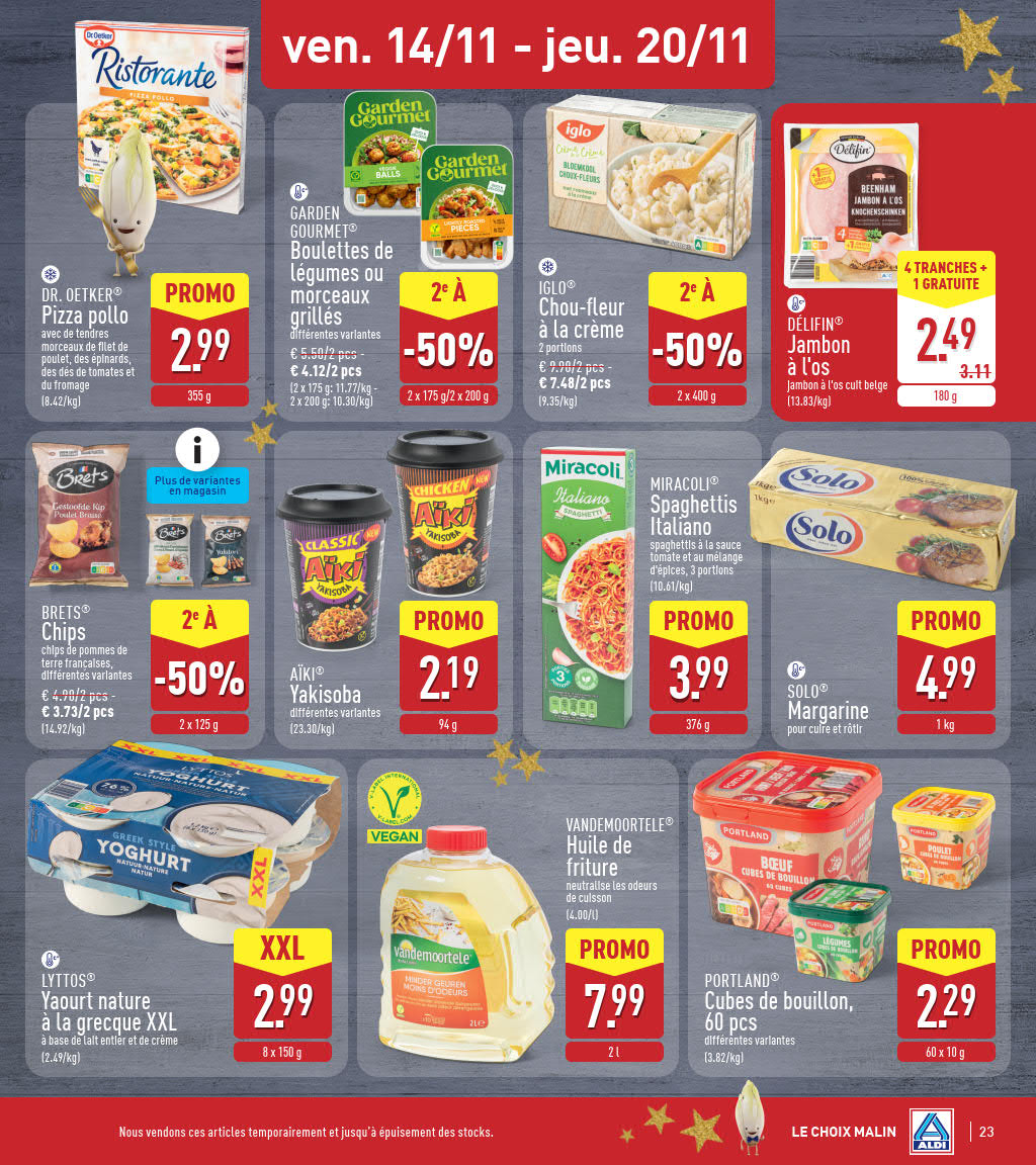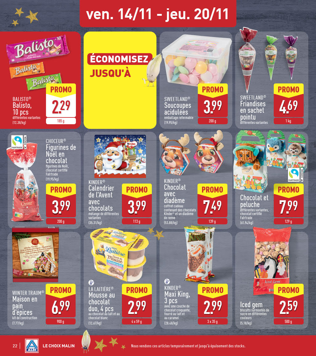 Vous êtes à la recherche de bonnes affaires et de réductions exceptionnelles? Ne cherchez plus loin que Aldi pour répondre à tous vos besoins en matière de shopping. Nos promotions et offres sont proposées à des prix incroyablement bas, et notre gamme de produits convient à tous les goûts et à tous les budgets. Consultez notre brochure de promotion valable du 10 novembre au 15 novembre, et explorez le catalogue pour créer votre liste de courses. Ne manquez pas nos offres hebdomadaires et nos offres exclusives et restez à jour avec les dernières offres et réductions chez Aldi.