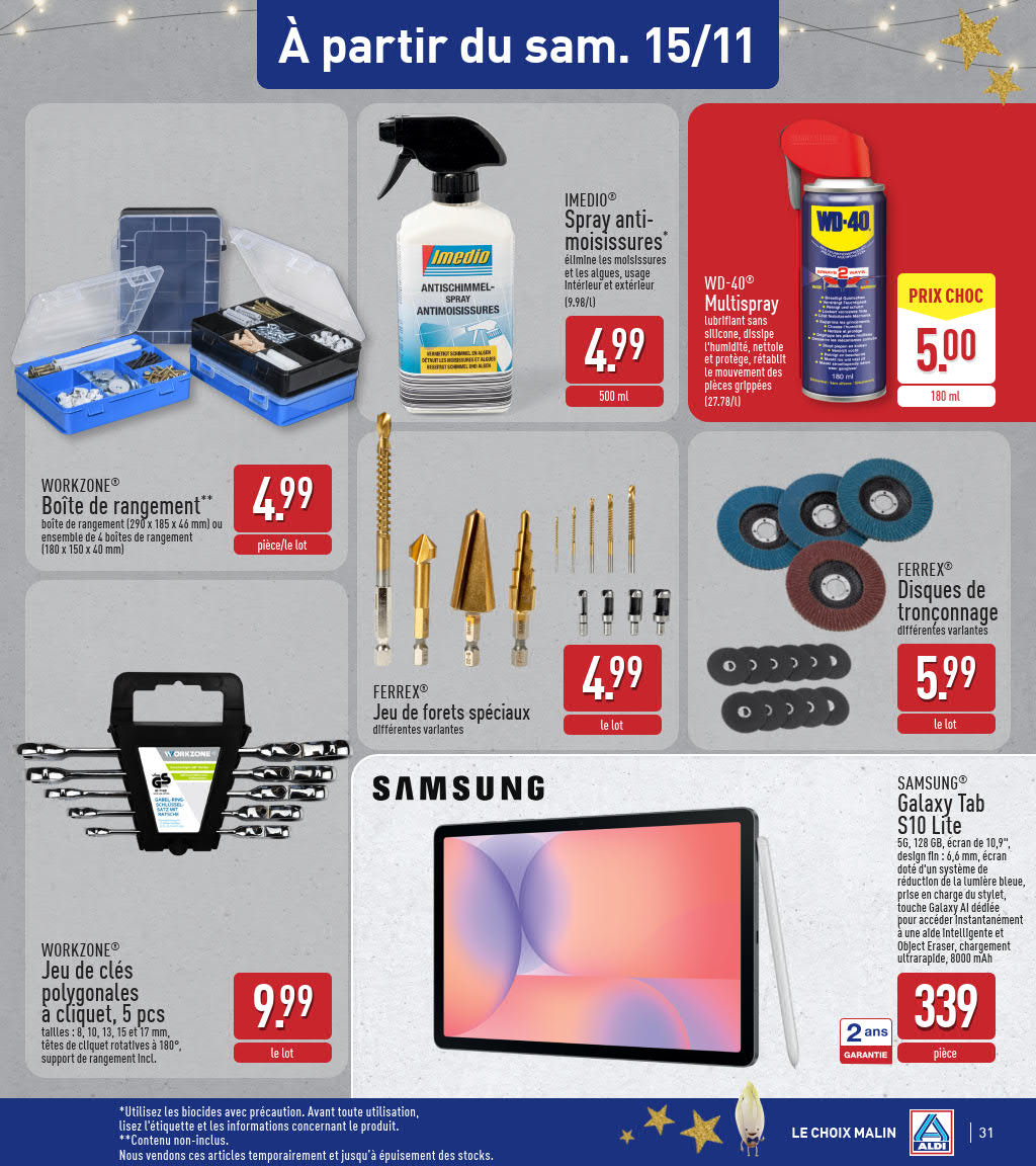 Nous proposons les derniers arrivages, vous offrant ainsi un large choix de produits parmi lesquels vous pouvez sélectionner vos favoris. Assurez-vous de parcourir nos produits et de sélectionner vos favoris avant l'expiration des offres. Faire du shopping de manière intelligente signifie réaliser des économies considérables, et les meilleures offres sont maintenant disponibles et valables jusqu'au 15 novembre. Alors ne tardez pas à faire vos courses. Notre personnel amical est toujours prêt à vous aider, vous pouvez donc être sûr d'un service client de qualité à chaque étape. Découvrez le shopping sans tracas et des économies importantes, uniquement avec Aldi.