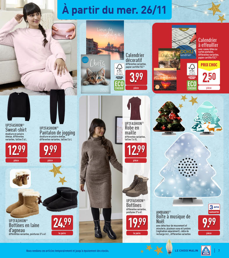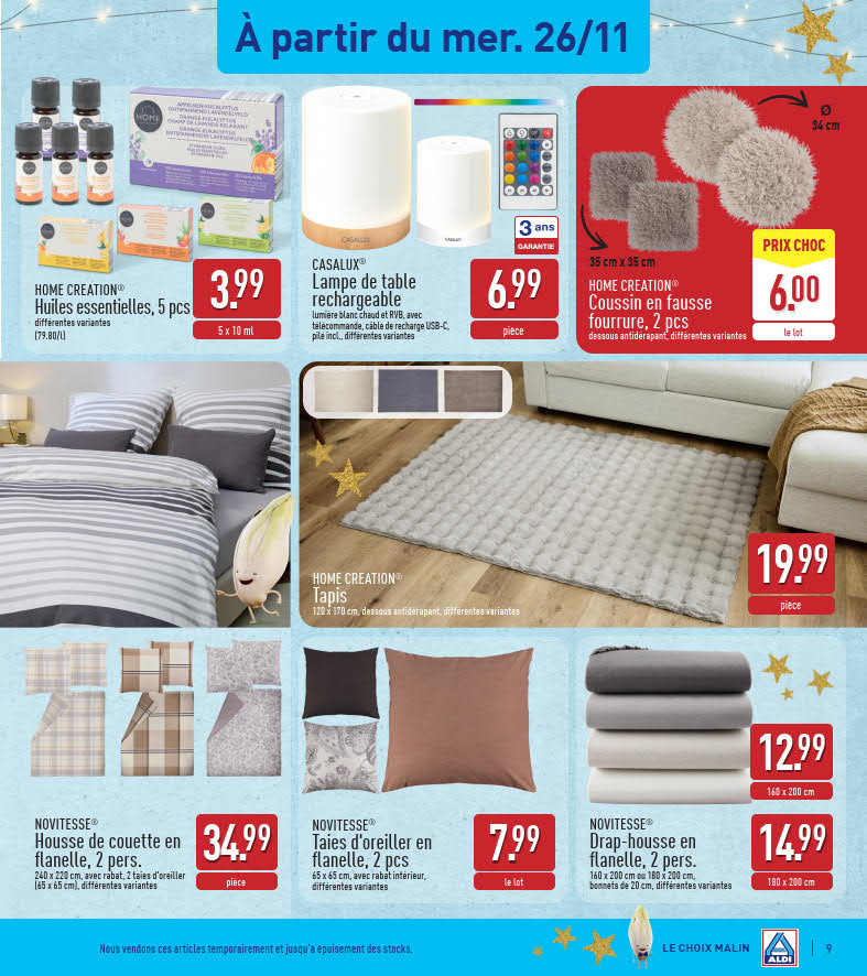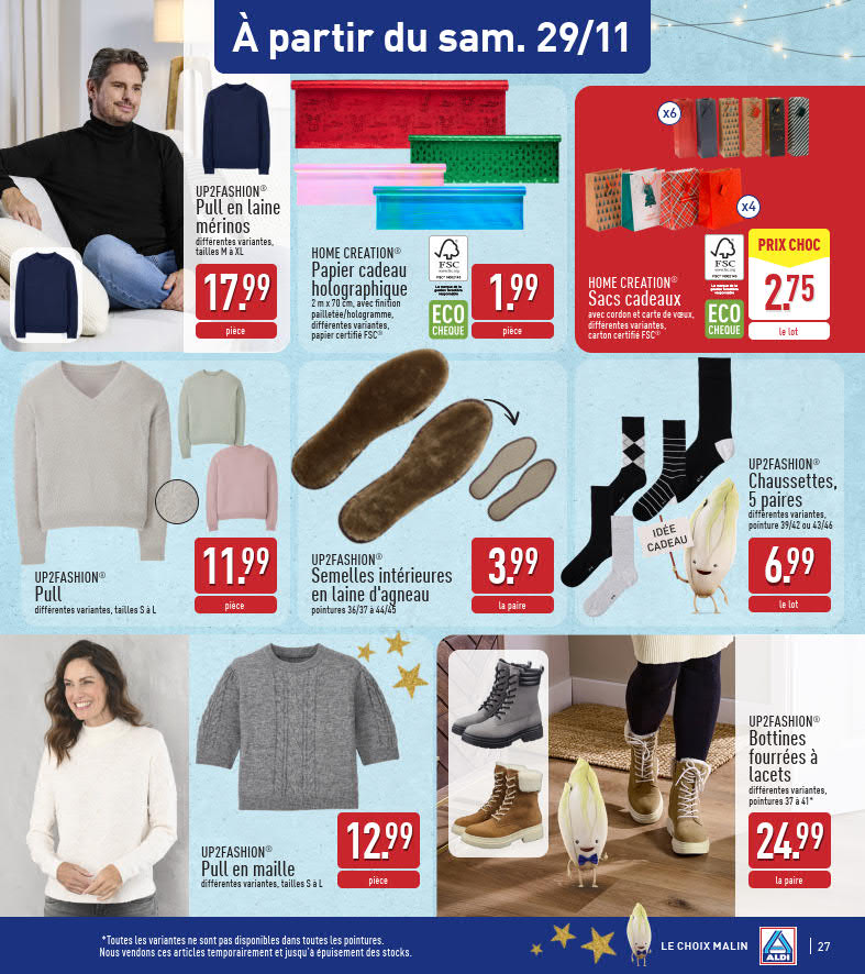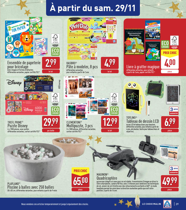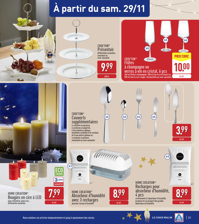 Nous proposons les derniers arrivages, vous offrant ainsi un large choix de produits parmi lesquels vous pouvez sélectionner vos favoris. Assurez-vous de parcourir nos produits et de sélectionner vos favoris avant l'expiration des offres. Faire du shopping de manière intelligente signifie réaliser des économies considérables, et les meilleures offres sont maintenant disponibles et valables jusqu'au 30 novembre. Alors ne tardez pas à faire vos courses. Notre personnel amical est toujours prêt à vous aider, vous pouvez donc être sûr d'un service client de qualité à chaque étape. Découvrez le shopping sans tracas et des économies importantes, uniquement avec Aldi.