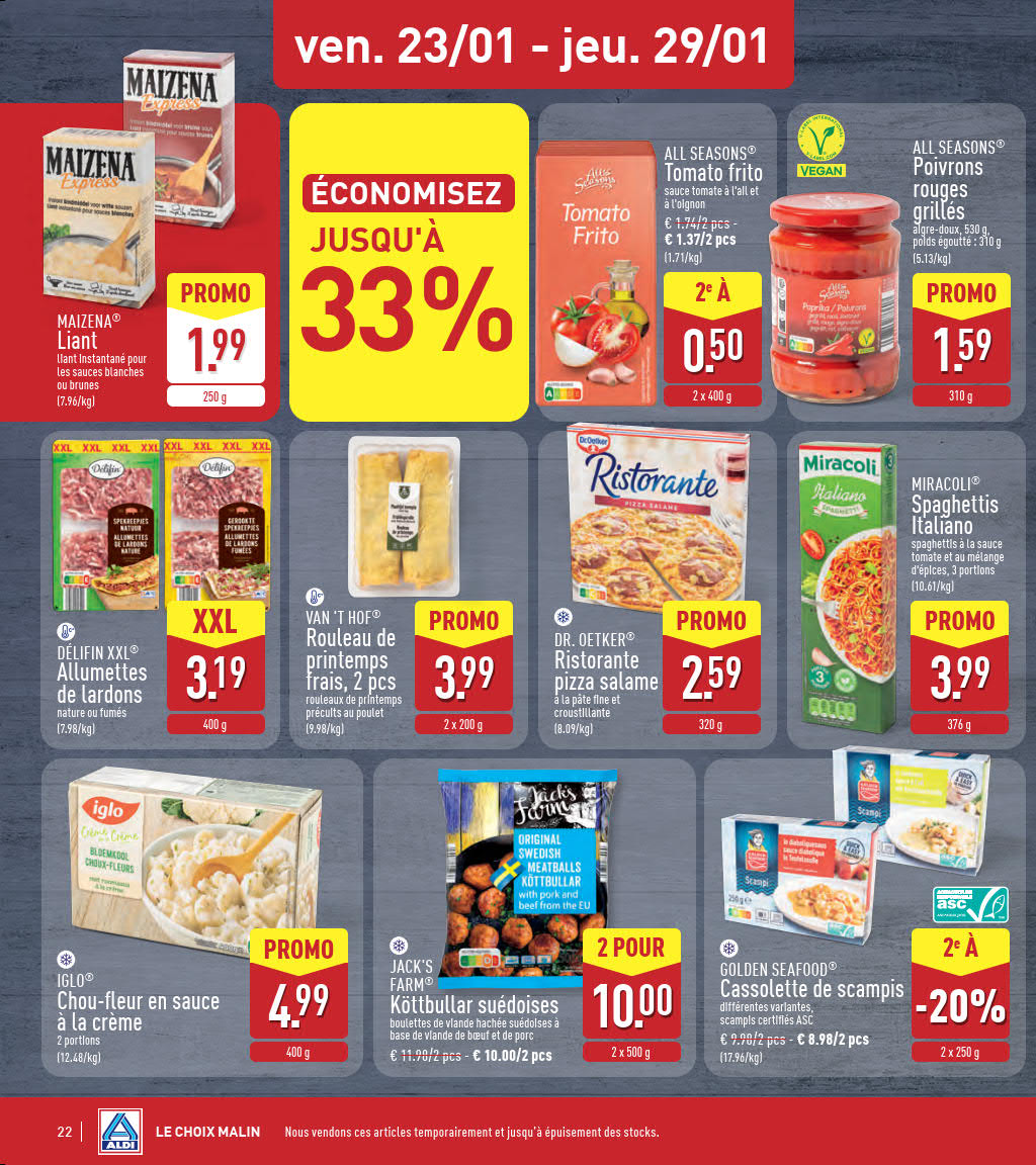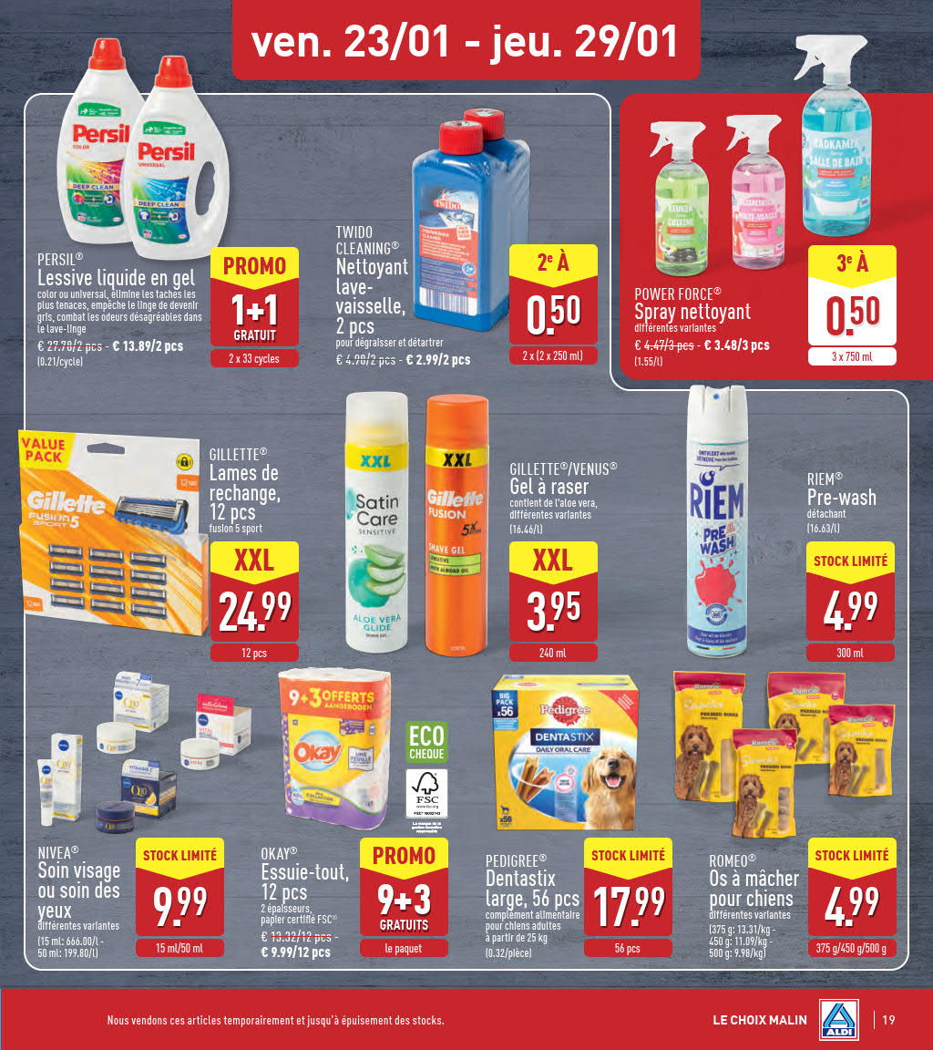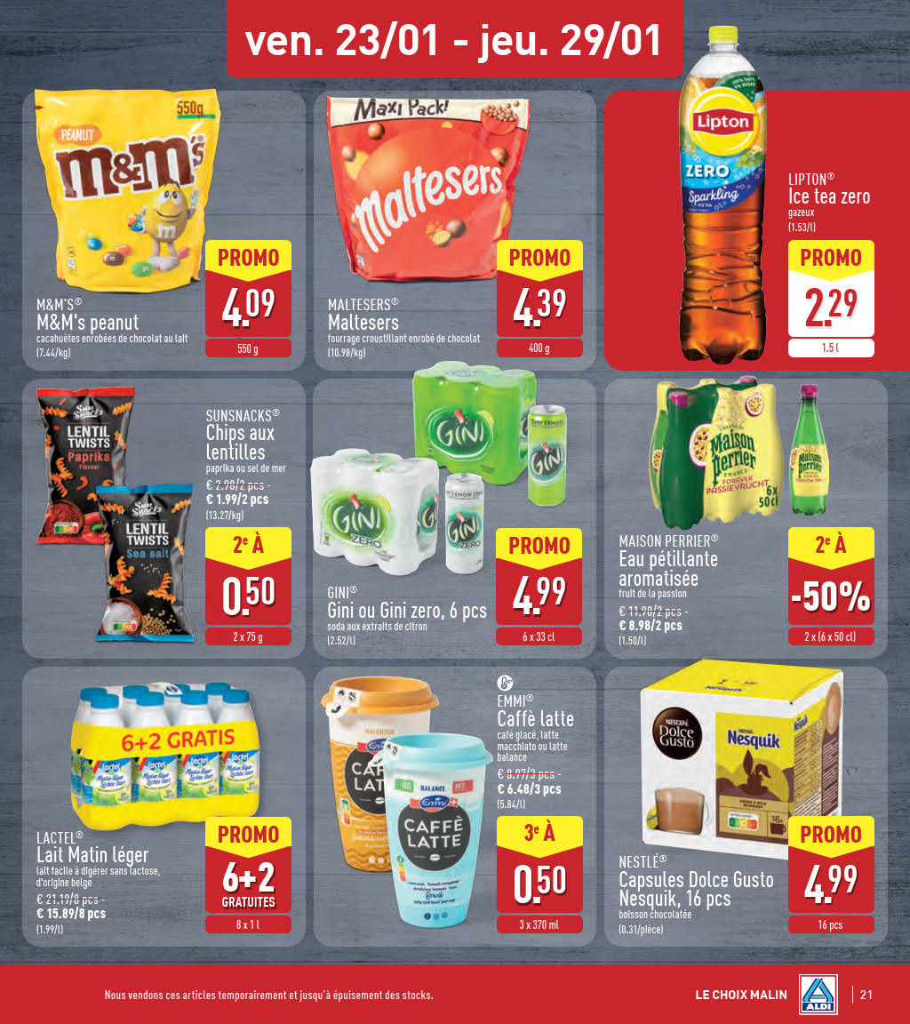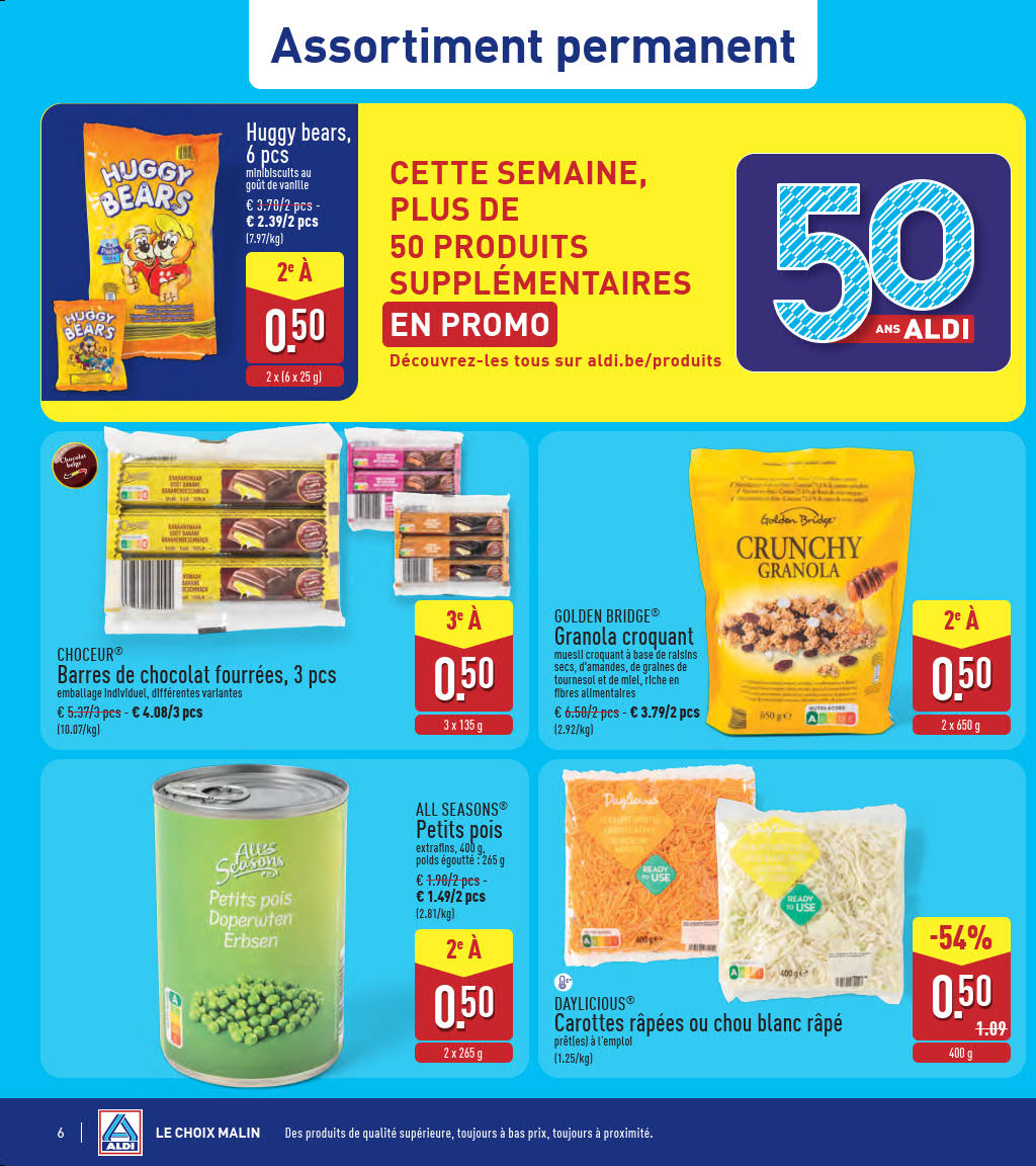 Vous êtes à la recherche de bonnes affaires et de réductions exceptionnelles? Ne cherchez plus loin que Aldi pour répondre à tous vos besoins en matière de shopping. Nos promotions et offres sont proposées à des prix incroyablement bas, et notre gamme de produits convient à tous les goûts et à tous les budgets. Consultez notre brochure de promotion valable du 19 janvier au 24 janvier, et explorez le catalogue pour créer votre liste de courses. Ne manquez pas nos offres hebdomadaires et nos offres exclusives et restez à jour avec les dernières offres et réductions chez Aldi.