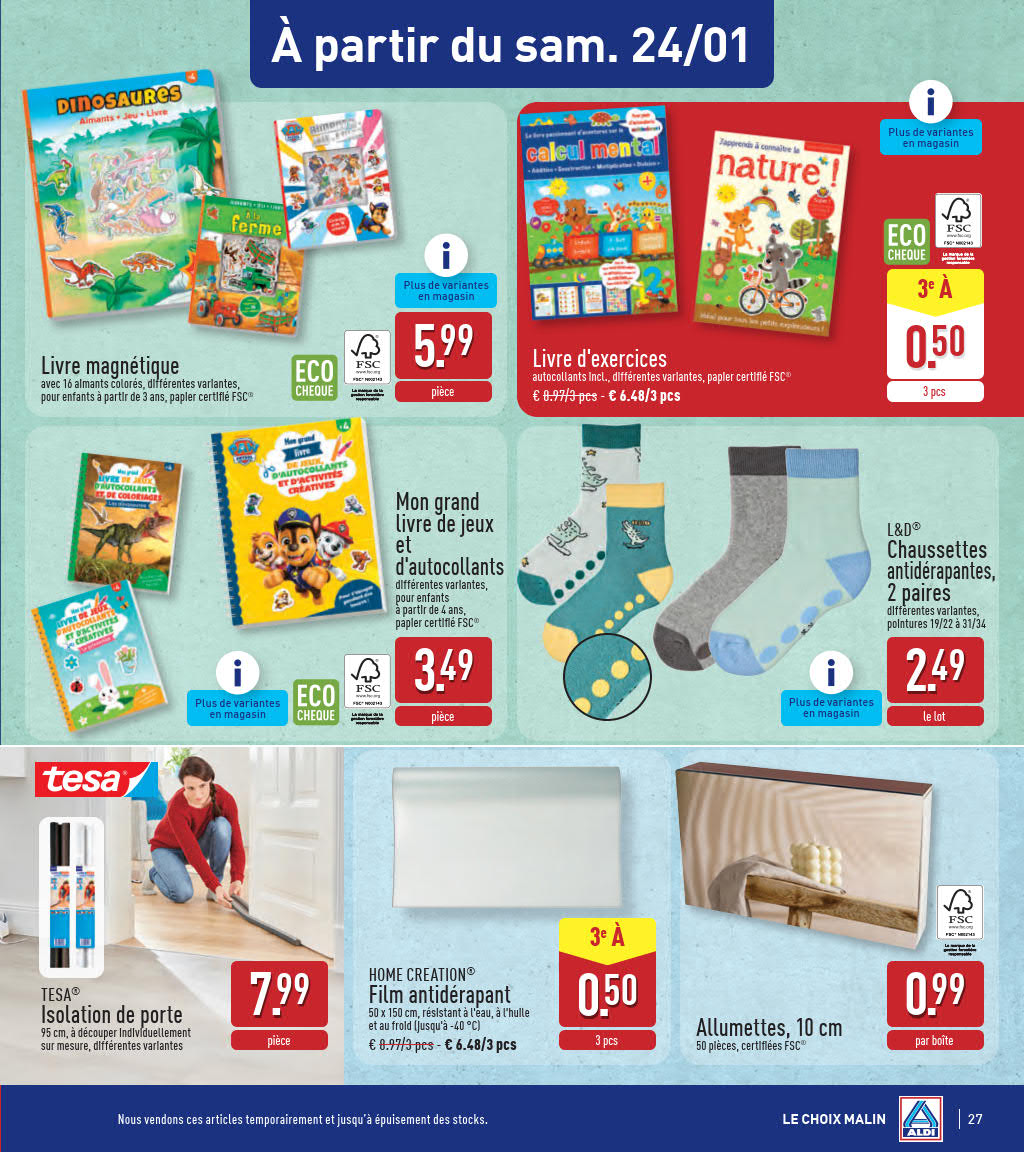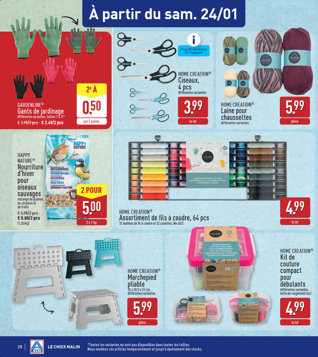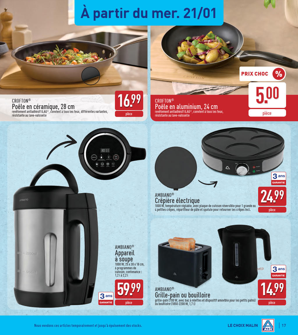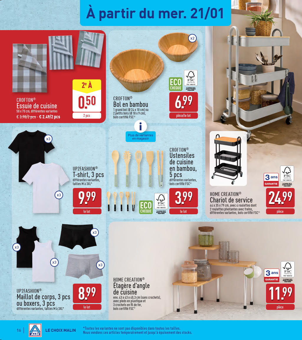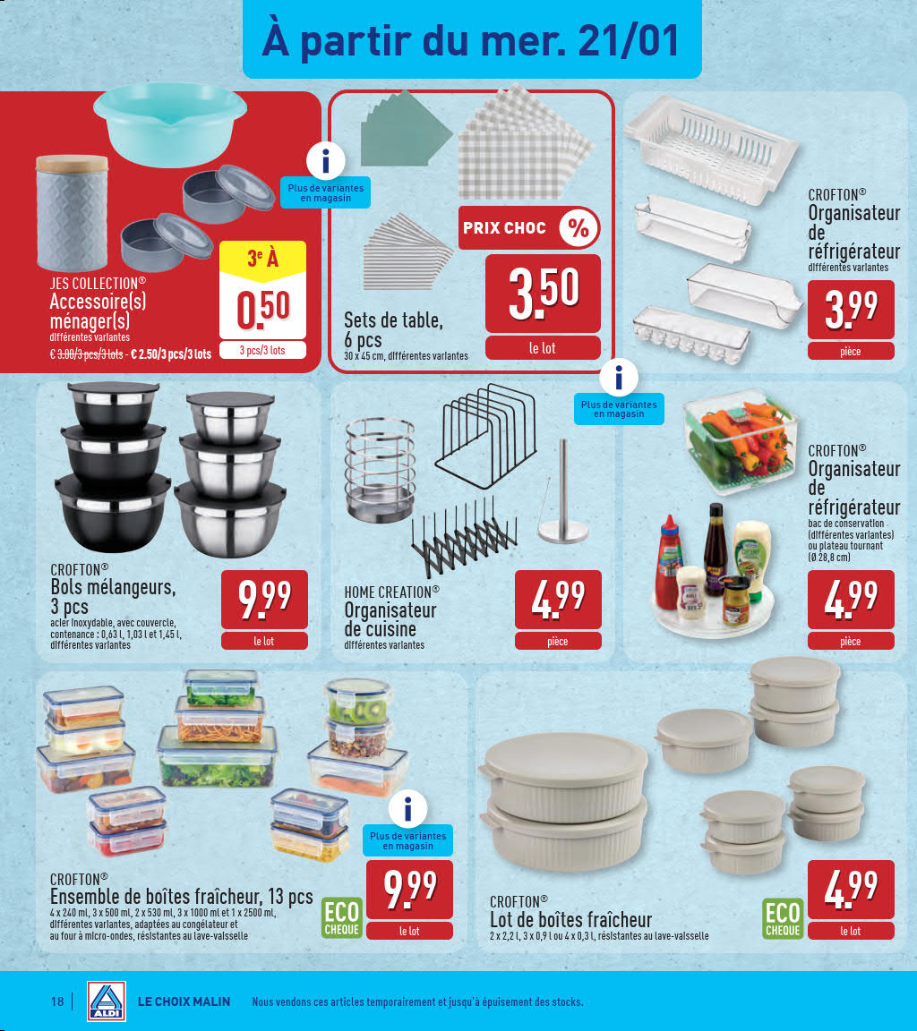 Nous proposons les derniers arrivages, vous offrant ainsi un large choix de produits parmi lesquels vous pouvez sélectionner vos favoris. Assurez-vous de parcourir nos produits et de sélectionner vos favoris avant l'expiration des offres. Faire du shopping de manière intelligente signifie réaliser des économies considérables, et les meilleures offres sont maintenant disponibles et valables jusqu'au 24 janvier. Alors ne tardez pas à faire vos courses. Notre personnel amical est toujours prêt à vous aider, vous pouvez donc être sûr d'un service client de qualité à chaque étape. Découvrez le shopping sans tracas et des économies importantes, uniquement avec Aldi.