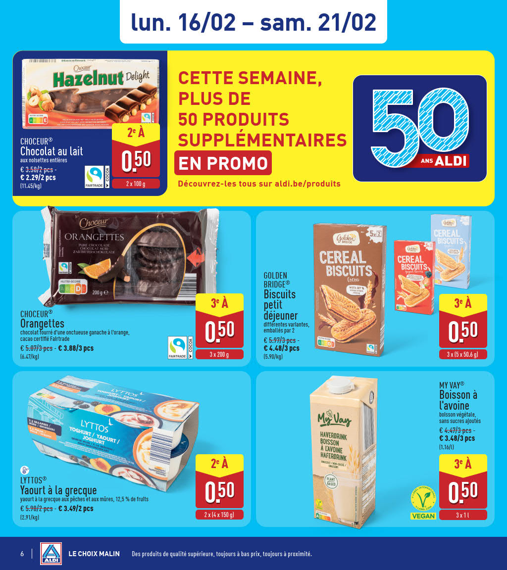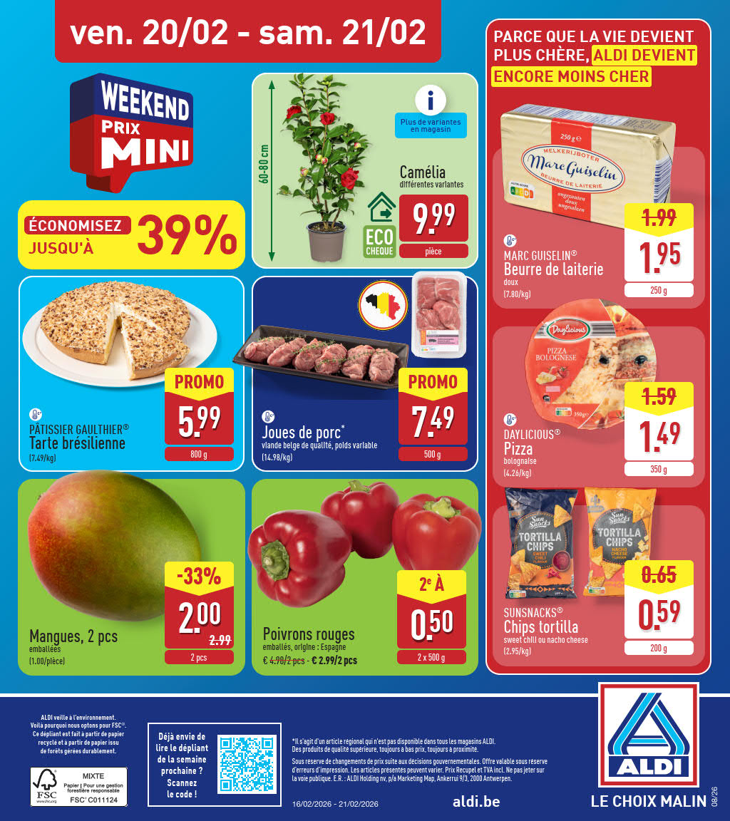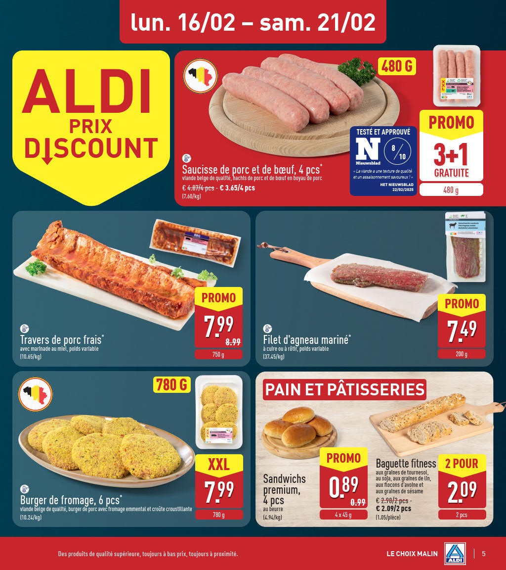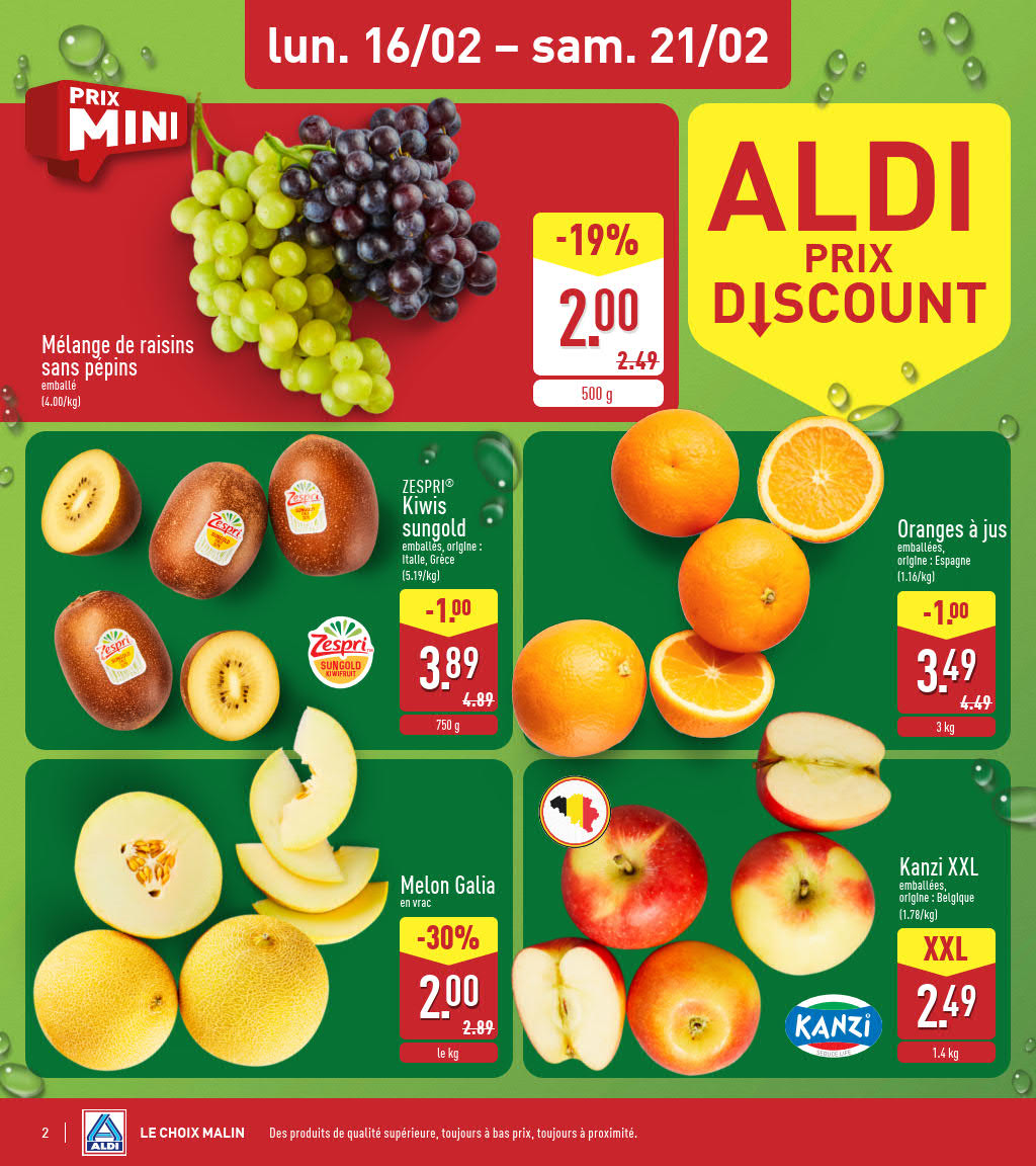 Vous êtes à la recherche de bonnes affaires et de réductions exceptionnelles? Ne cherchez plus loin que Aldi pour répondre à tous vos besoins en matière de shopping. Nos promotions et offres sont proposées à des prix incroyablement bas, et notre gamme de produits convient à tous les goûts et à tous les budgets. Consultez notre brochure de promotion valable du 16 février au 21 février, et explorez le catalogue pour créer votre liste de courses. Ne manquez pas nos offres hebdomadaires et nos offres exclusives et restez à jour avec les dernières offres et réductions chez Aldi.