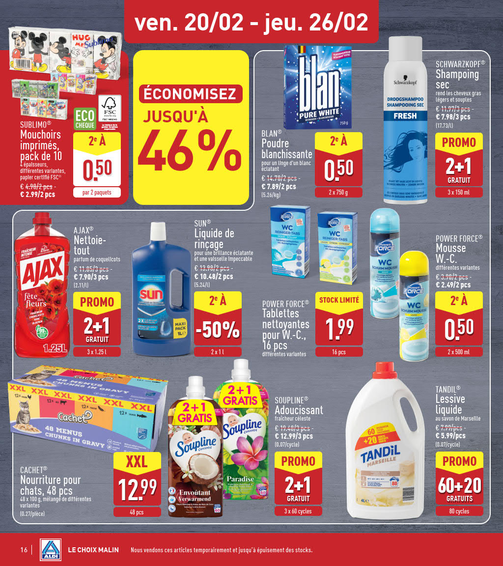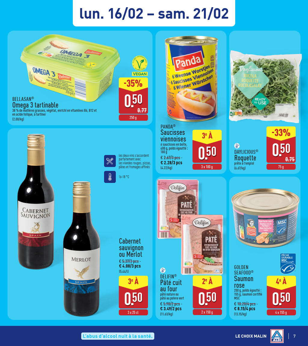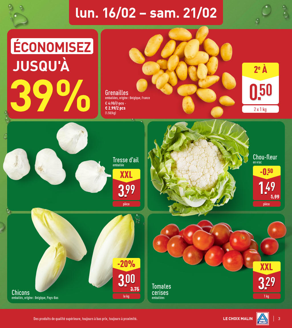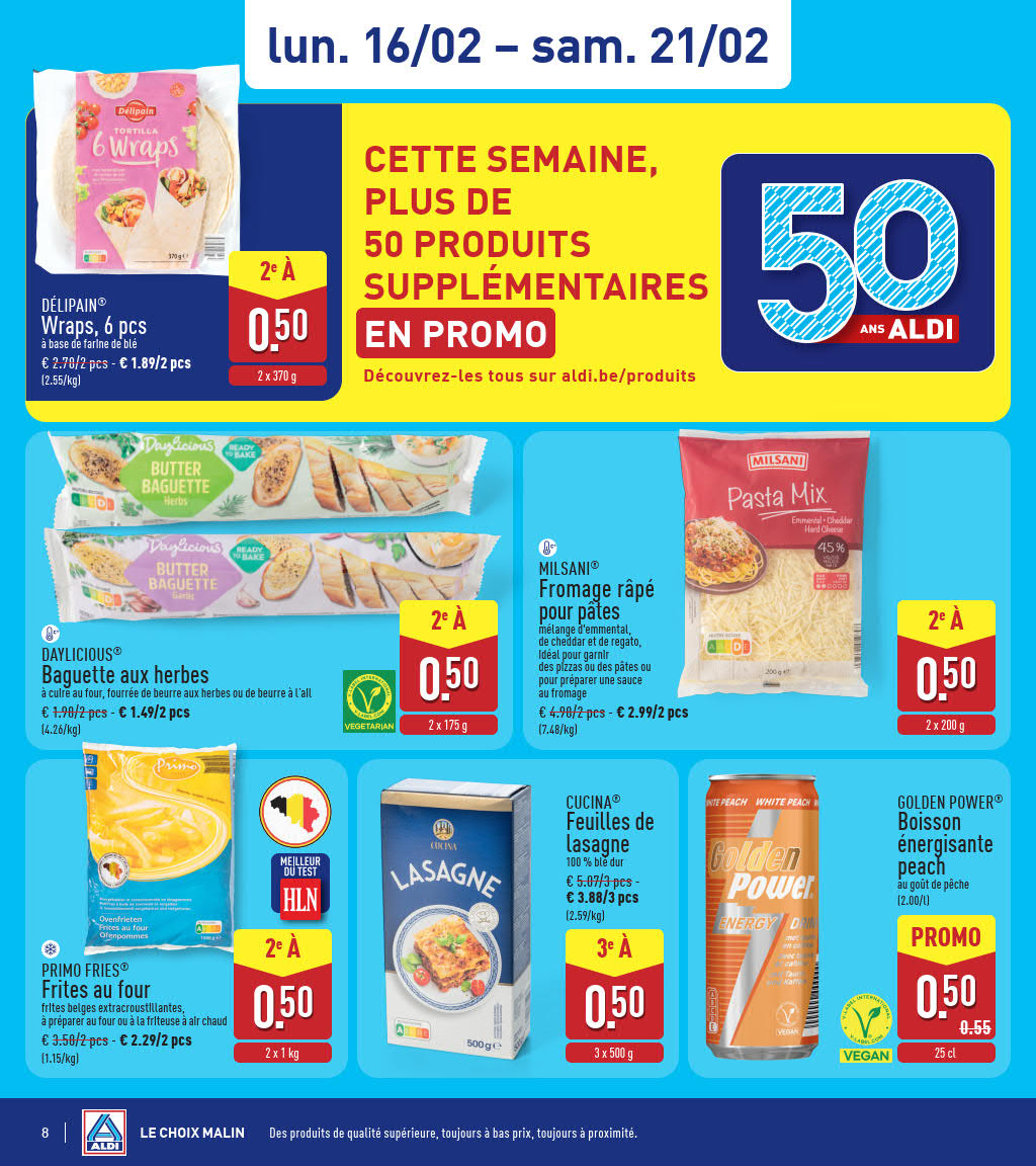 Vous êtes à la recherche de bonnes affaires et de réductions exceptionnelles? Ne cherchez plus loin que Aldi pour répondre à tous vos besoins en matière de shopping. Nos promotions et offres sont proposées à des prix incroyablement bas, et notre gamme de produits convient à tous les goûts et à tous les budgets. Consultez notre brochure de promotion valable du 16 février au 21 février, et explorez le catalogue pour créer votre liste de courses. Ne manquez pas nos offres hebdomadaires et nos offres exclusives et restez à jour avec les dernières offres et réductions chez Aldi.