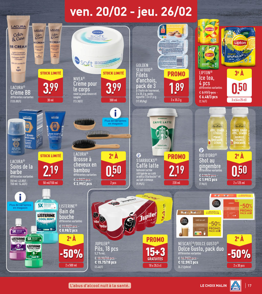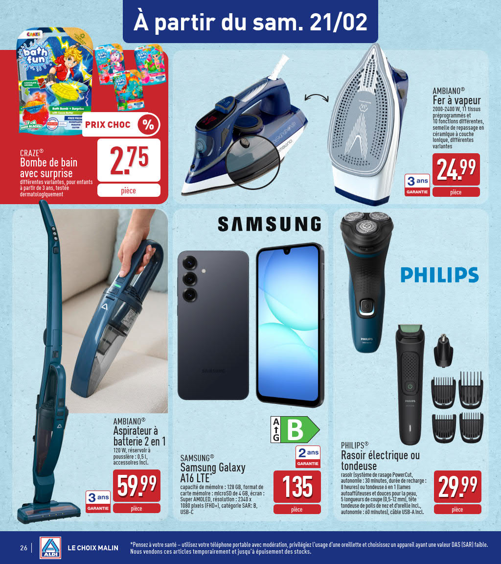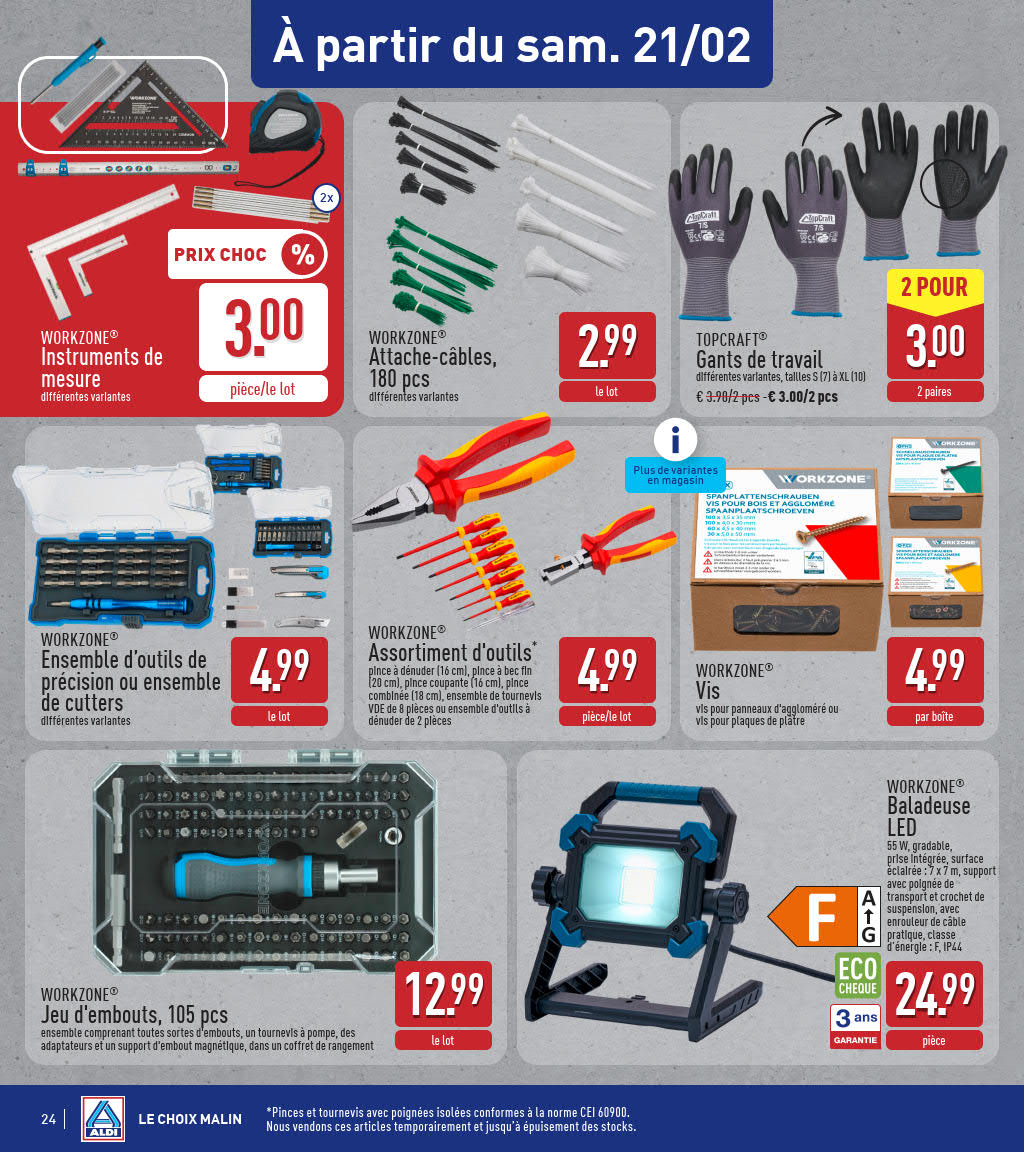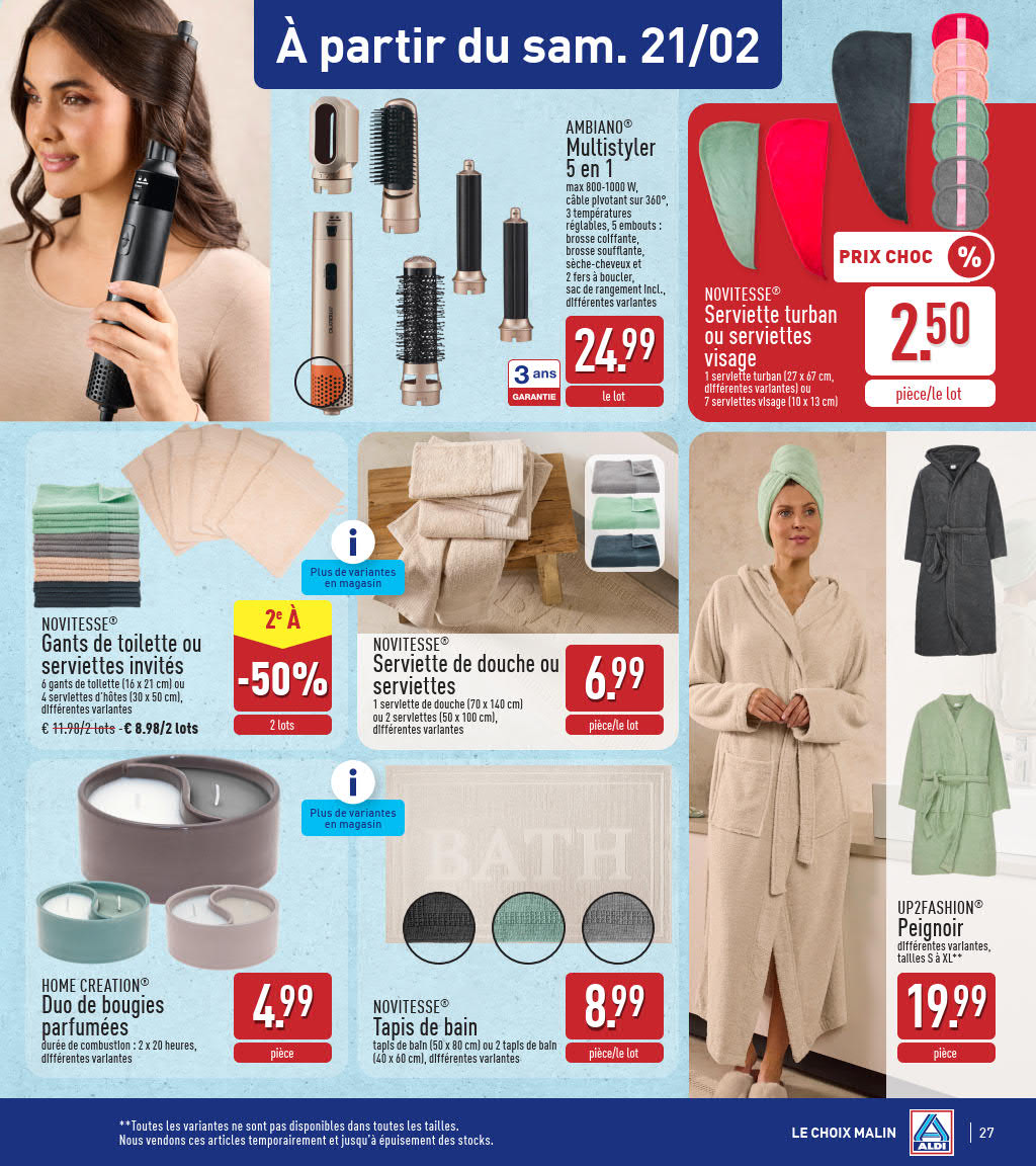 Nous proposons les derniers arrivages, vous offrant ainsi un large choix de produits parmi lesquels vous pouvez sélectionner vos favoris. Assurez-vous de parcourir nos produits et de sélectionner vos favoris avant l'expiration des offres. Faire du shopping de manière intelligente signifie réaliser des économies considérables, et les meilleures offres sont maintenant disponibles et valables jusqu'au 21 février. Alors ne tardez pas à faire vos courses. Notre personnel amical est toujours prêt à vous aider, vous pouvez donc être sûr d'un service client de qualité à chaque étape. Découvrez le shopping sans tracas et des économies importantes, uniquement avec Aldi.