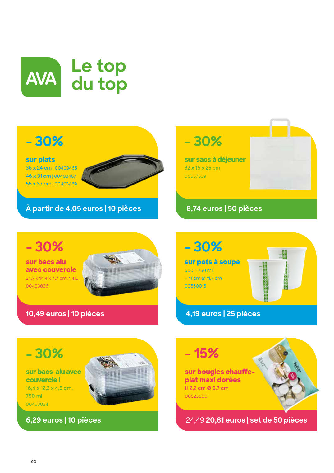 Vous êtes à la recherche de bonnes affaires et de réductions exceptionnelles? Ne cherchez plus loin que AVA pour répondre à tous vos besoins en matière de shopping. Nos promotions et offres sont proposées à des prix incroyablement bas, et notre gamme de produits convient à tous les goûts et à tous les budgets. Consultez notre brochure de promotion valable du 29 novembre au 31 décembre, et explorez le catalogue pour créer votre liste de courses. Ne manquez pas nos offres hebdomadaires et nos offres exclusives et restez à jour avec les dernières offres et réductions chez AVA.