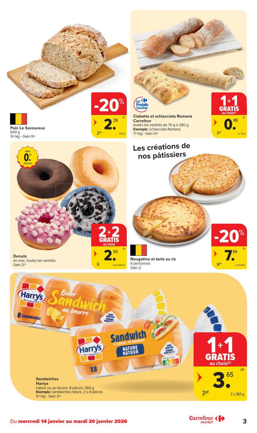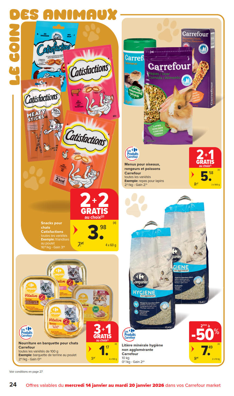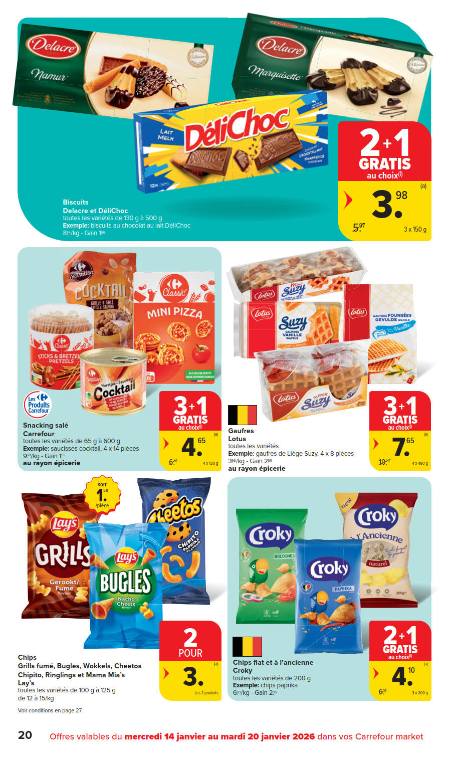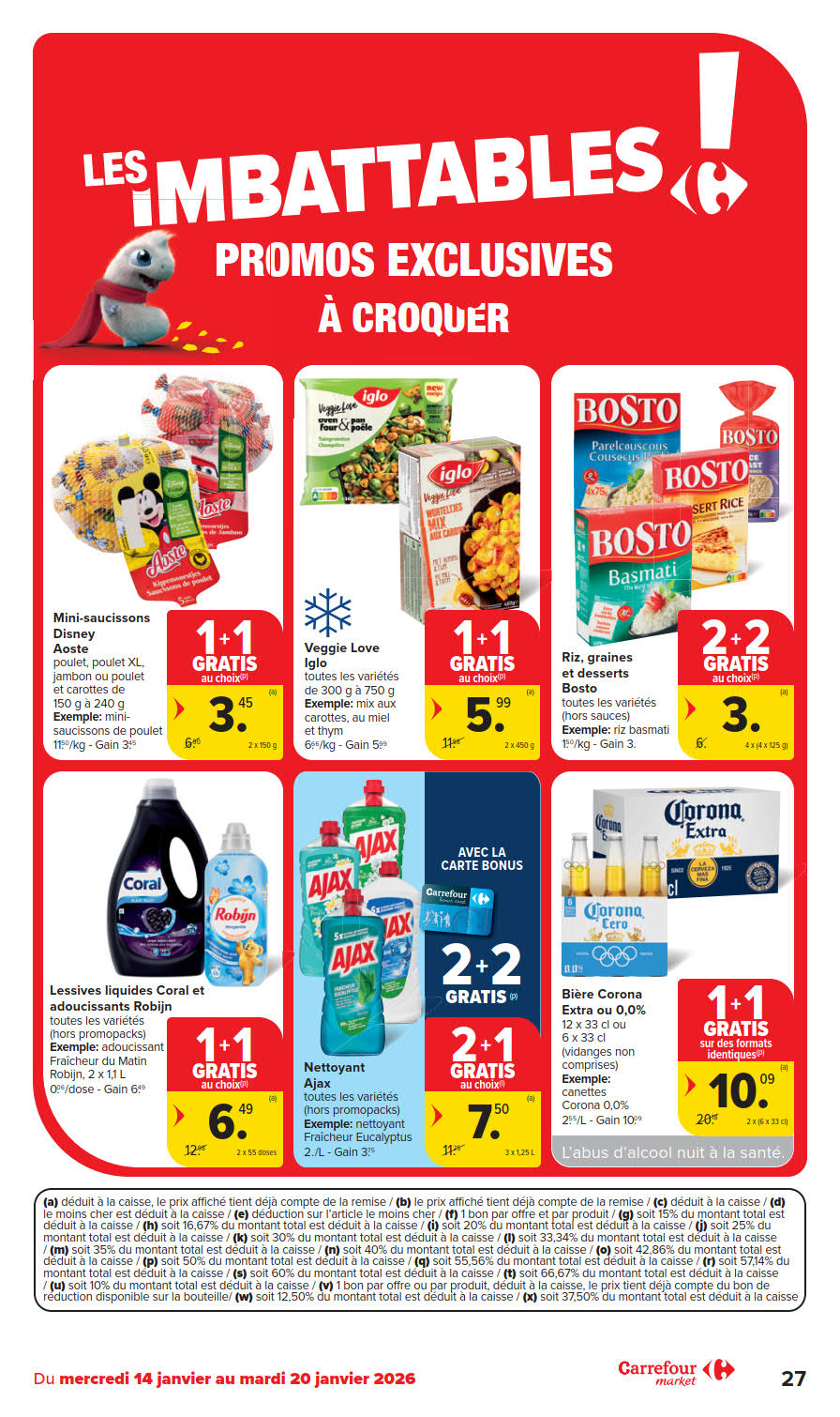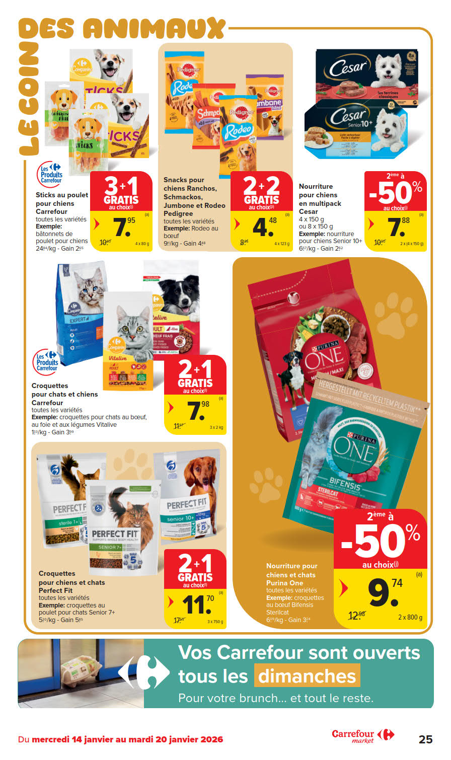 Vous êtes à la recherche de bonnes affaires et de réductions exceptionnelles? Ne cherchez plus loin que Carrefour Market pour répondre à tous vos besoins en matière de shopping. Nos promotions et offres sont proposées à des prix incroyablement bas, et notre gamme de produits convient à tous les goûts et à tous les budgets. Consultez notre brochure de promotion valable du 14 janvier au 20 janvier, et explorez le catalogue pour créer votre liste de courses. Ne manquez pas nos offres hebdomadaires et nos offres exclusives et restez à jour avec les dernières offres et réductions chez Carrefour Market.