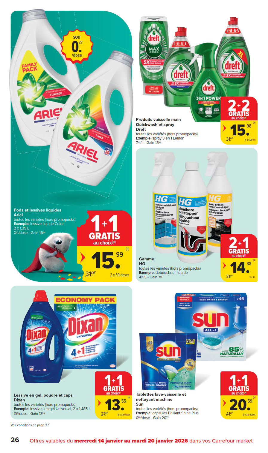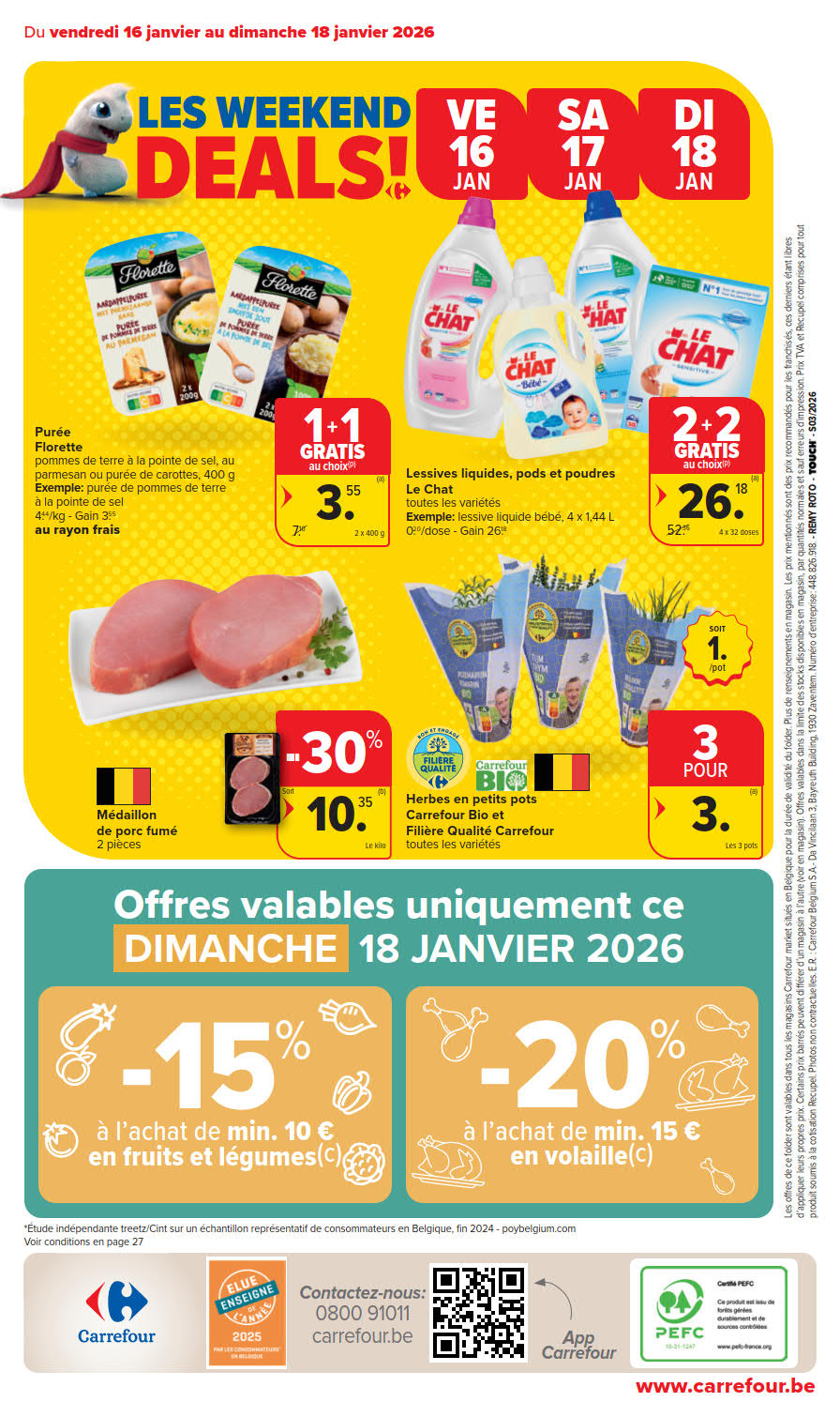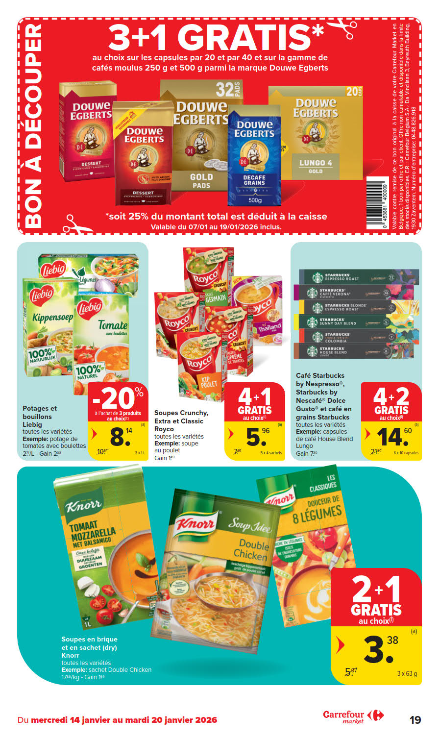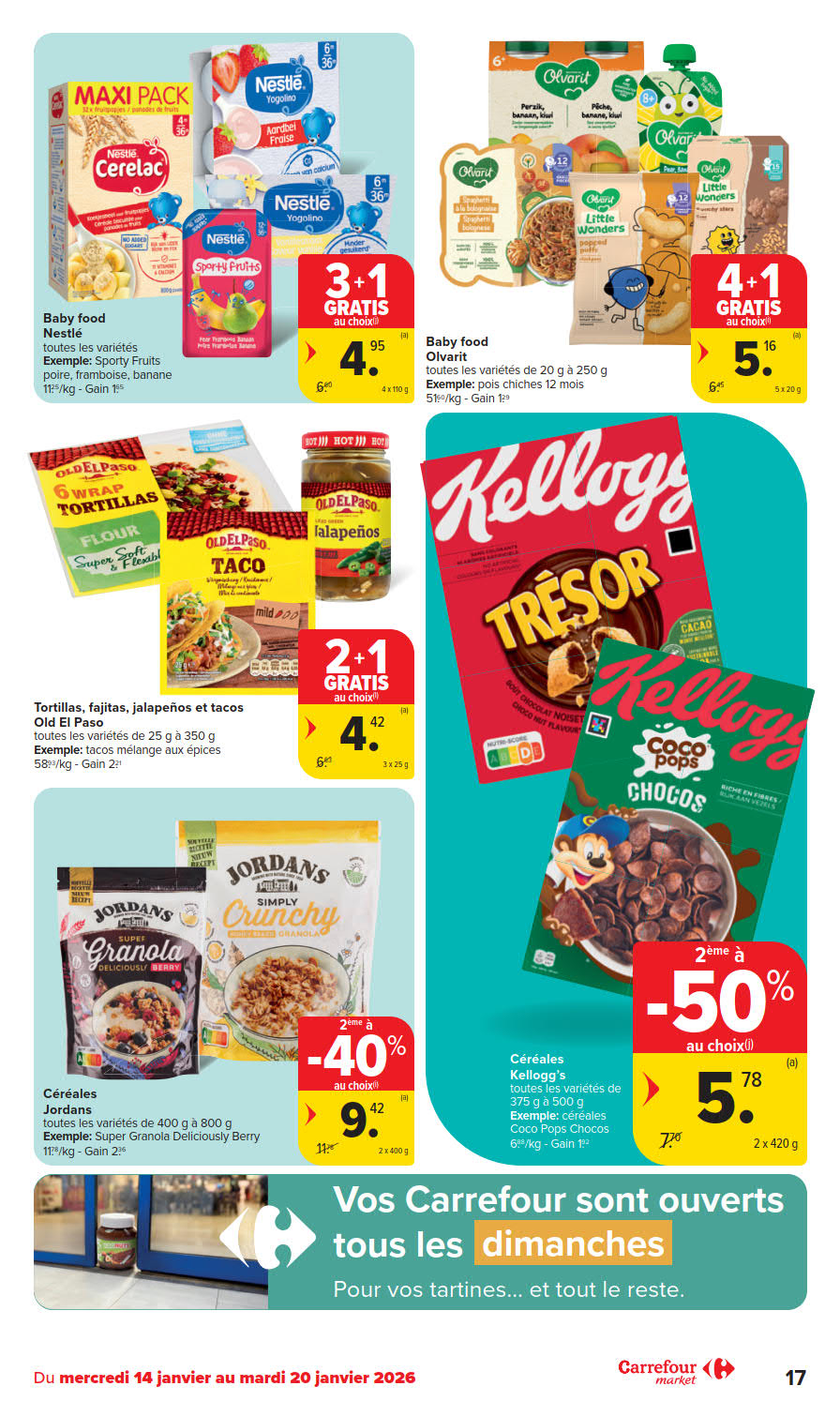 Vous êtes à la recherche de bonnes affaires et de réductions exceptionnelles? Ne cherchez plus loin que Carrefour Market pour répondre à tous vos besoins en matière de shopping. Nos promotions et offres sont proposées à des prix incroyablement bas, et notre gamme de produits convient à tous les goûts et à tous les budgets. Consultez notre brochure de promotion valable du 14 janvier au 20 janvier, et explorez le catalogue pour créer votre liste de courses. Ne manquez pas nos offres hebdomadaires et nos offres exclusives et restez à jour avec les dernières offres et réductions chez Carrefour Market.