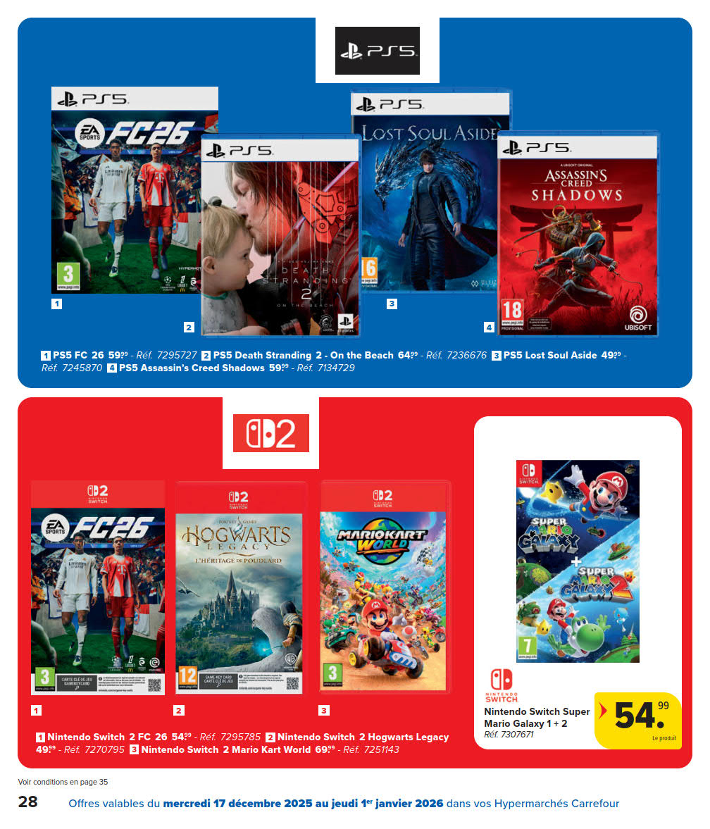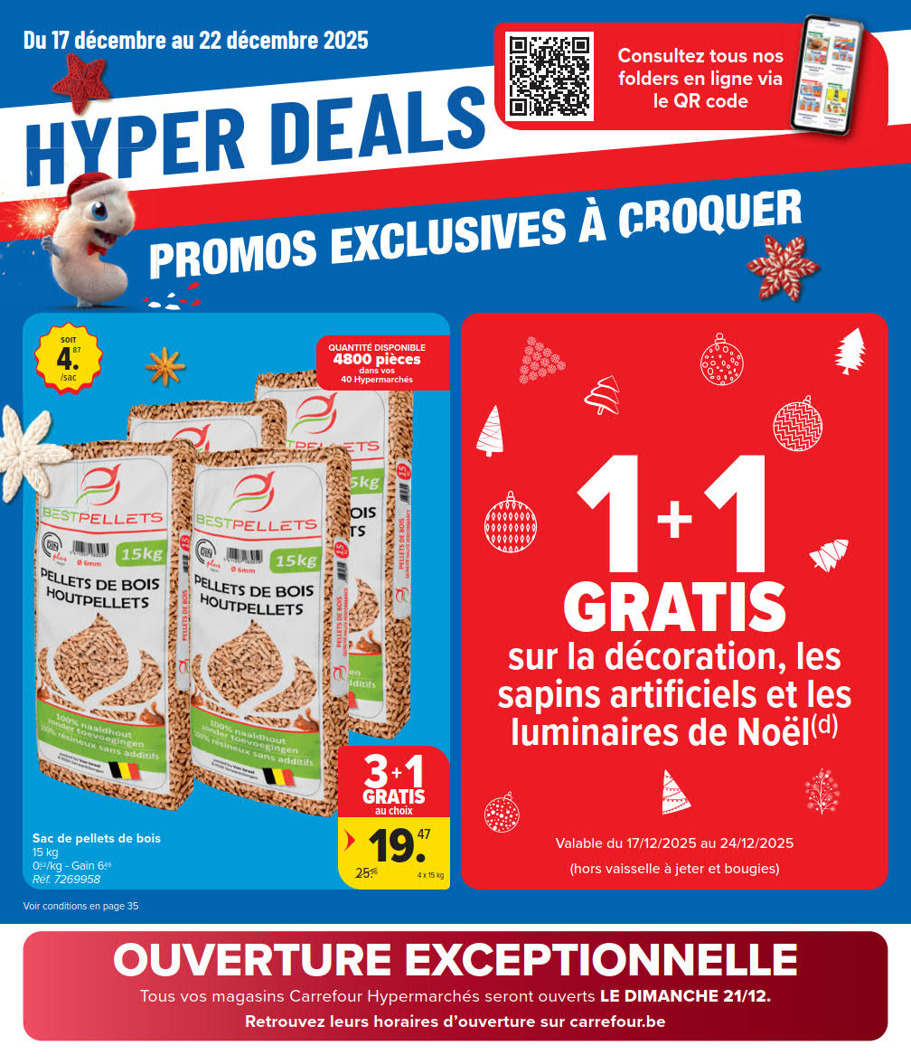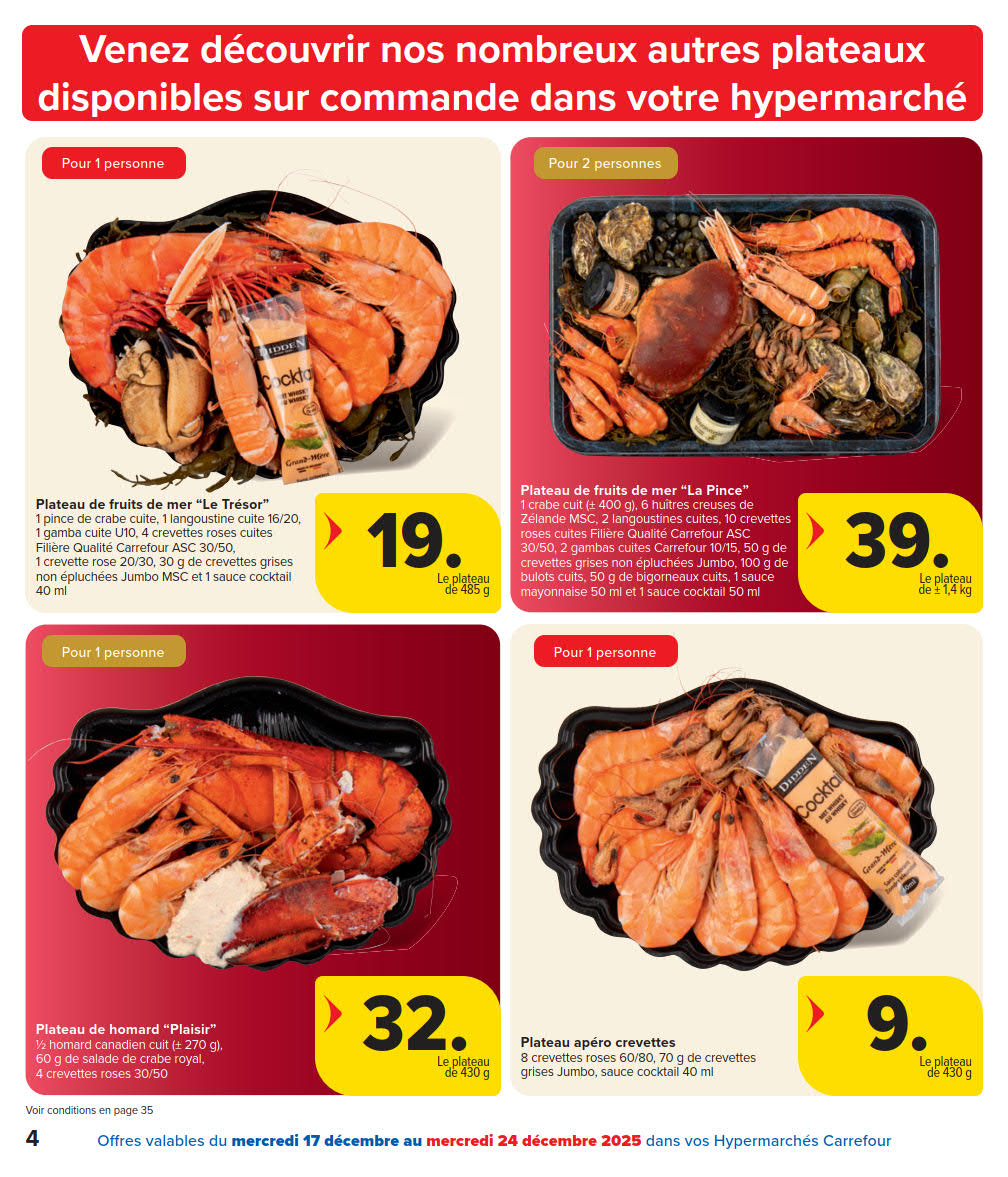 Vous êtes à la recherche de bonnes affaires et de réductions exceptionnelles? Ne cherchez plus loin que Carrefour pour répondre à tous vos besoins en matière de shopping. Nos promotions et offres sont proposées à des prix incroyablement bas, et notre gamme de produits convient à tous les goûts et à tous les budgets. Consultez notre brochure de promotion valable du 17 décembre au 31 décembre, et explorez le catalogue pour créer votre liste de courses. Ne manquez pas nos offres hebdomadaires et nos offres exclusives et restez à jour avec les dernières offres et réductions chez Carrefour.
