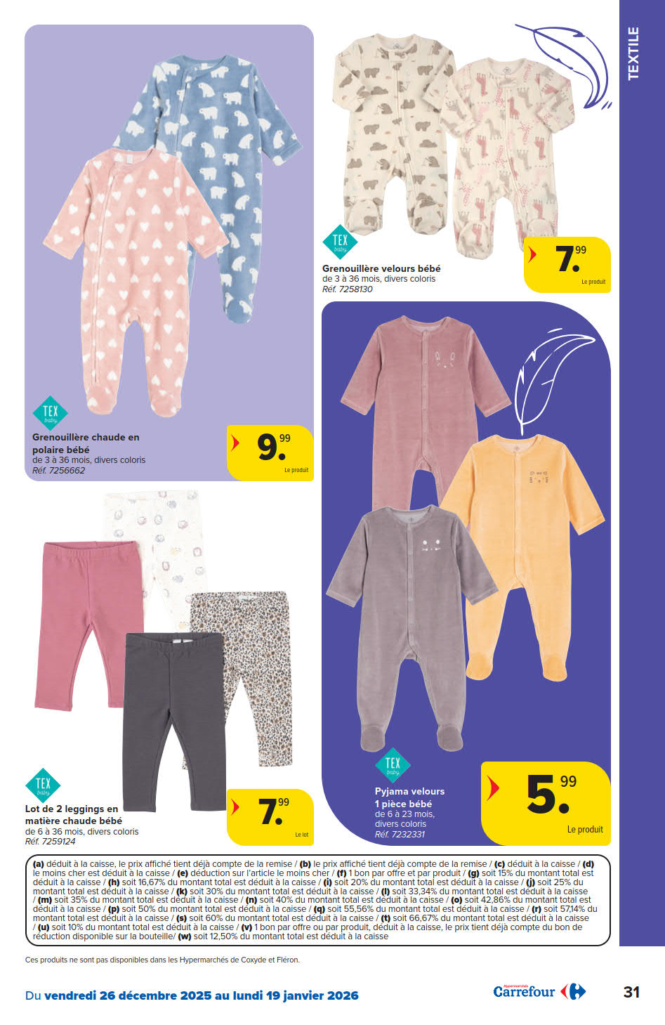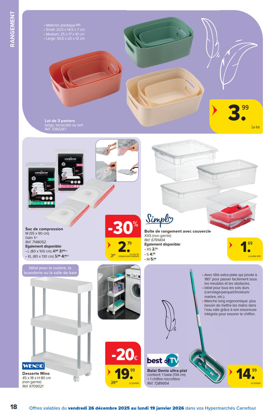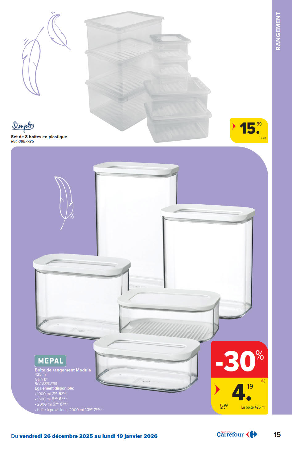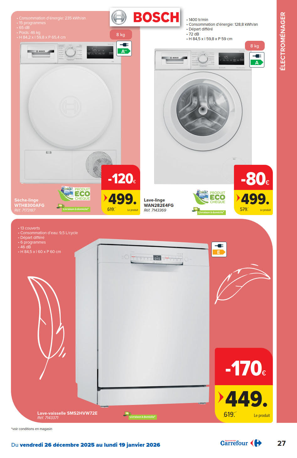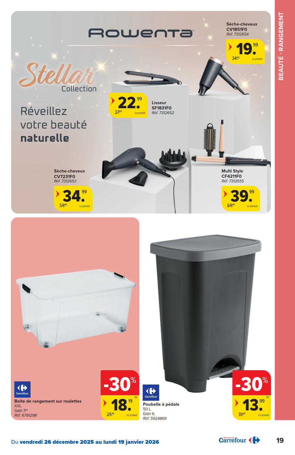 Vous êtes à la recherche de bonnes affaires et de réductions exceptionnelles? Ne cherchez plus loin que Carrefour pour répondre à tous vos besoins en matière de shopping. Nos promotions et offres sont proposées à des prix incroyablement bas, et notre gamme de produits convient à tous les goûts et à tous les budgets. Consultez notre brochure de promotion valable du 26 décembre au 19 janvier, et explorez le catalogue pour créer votre liste de courses. Ne manquez pas nos offres hebdomadaires et nos offres exclusives et restez à jour avec les dernières offres et réductions chez Carrefour.