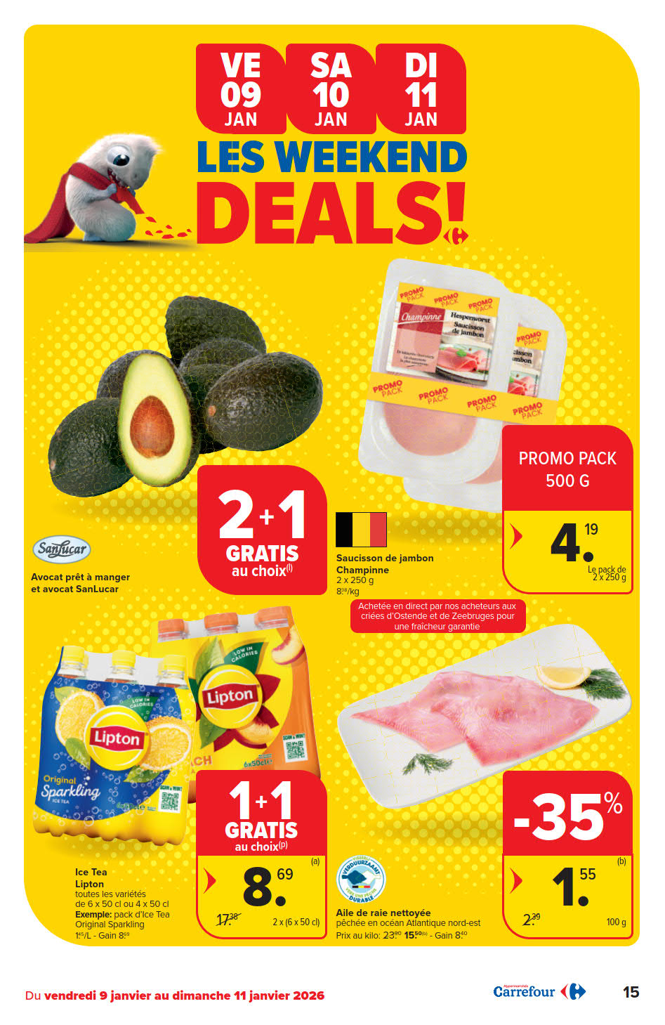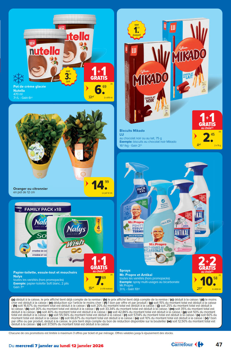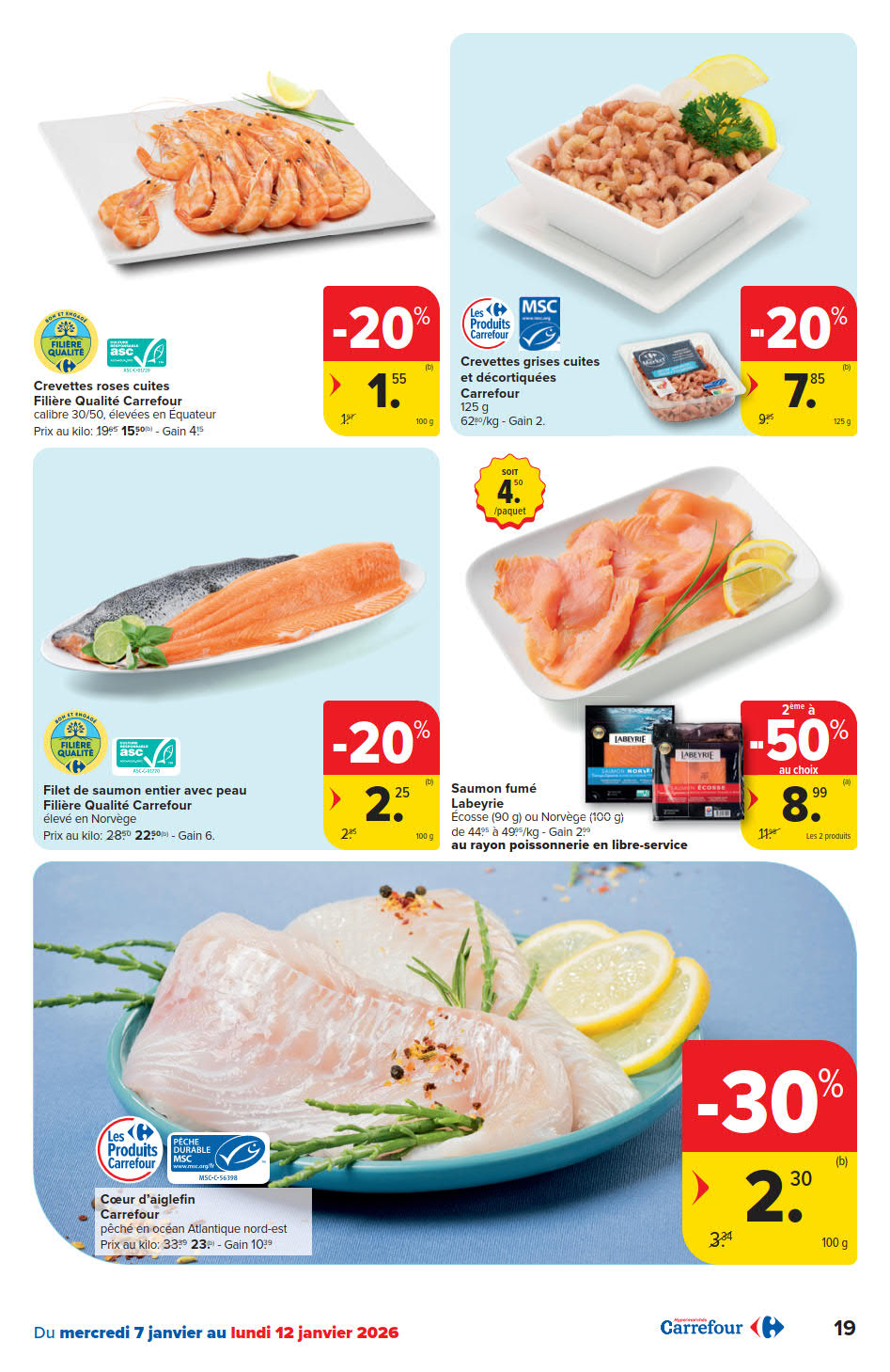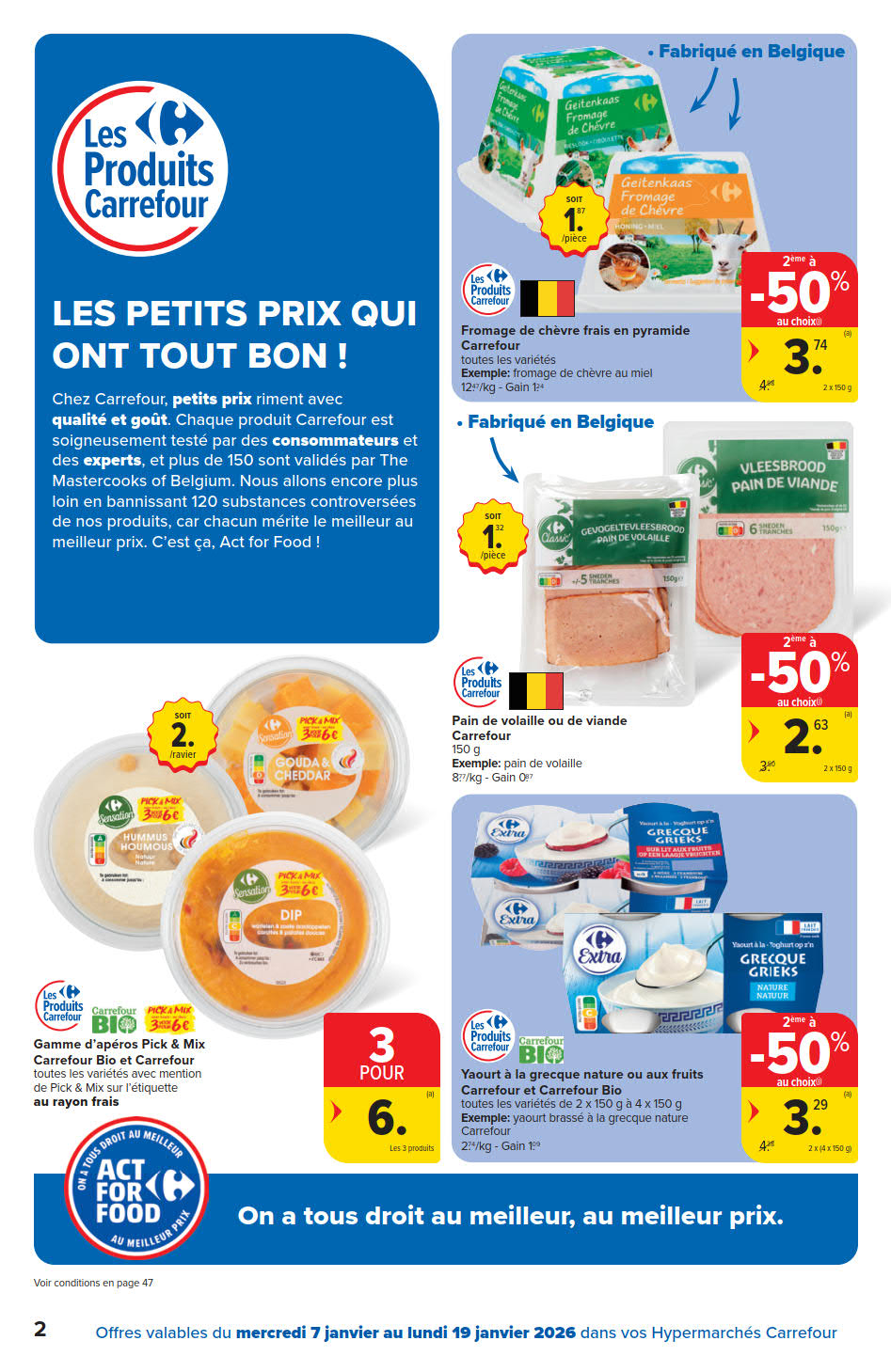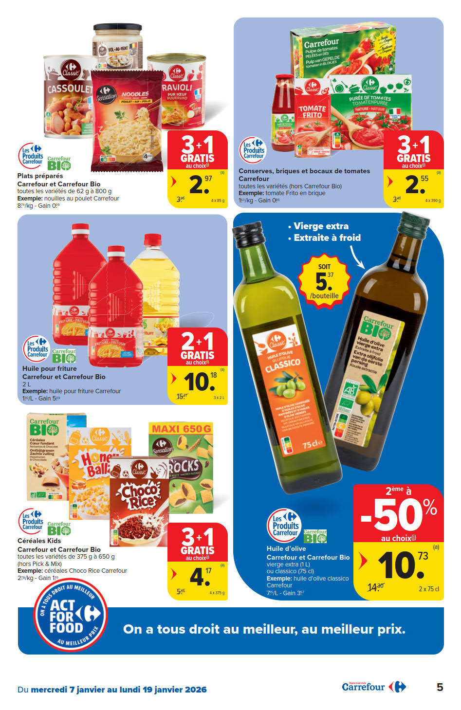 Vous êtes à la recherche de bonnes affaires et de réductions exceptionnelles? Ne cherchez plus loin que Carrefour pour répondre à tous vos besoins en matière de shopping. Nos promotions et offres sont proposées à des prix incroyablement bas, et notre gamme de produits convient à tous les goûts et à tous les budgets. Consultez notre brochure de promotion valable du 07 janvier au 19 janvier, et explorez le catalogue pour créer votre liste de courses. Ne manquez pas nos offres hebdomadaires et nos offres exclusives et restez à jour avec les dernières offres et réductions chez Carrefour.