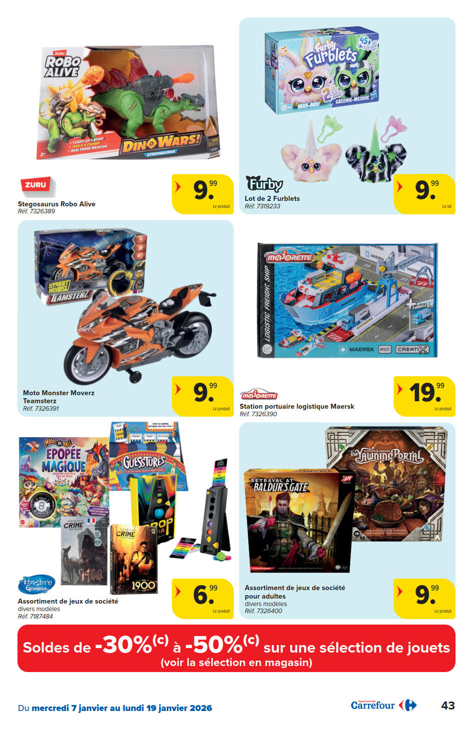 Nous proposons les derniers arrivages, vous offrant ainsi un large choix de produits parmi lesquels vous pouvez sélectionner vos favoris. Assurez-vous de parcourir nos produits et de sélectionner vos favoris avant l'expiration des offres. Faire du shopping de manière intelligente signifie réaliser des économies considérables, et les meilleures offres sont maintenant disponibles et valables jusqu'au 19 janvier. Alors ne tardez pas à faire vos courses. Notre personnel amical est toujours prêt à vous aider, vous pouvez donc être sûr d'un service client de qualité à chaque étape. Découvrez le shopping sans tracas et des économies importantes, uniquement avec Carrefour.