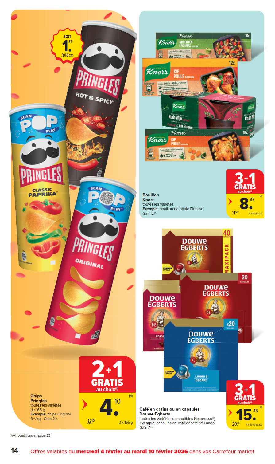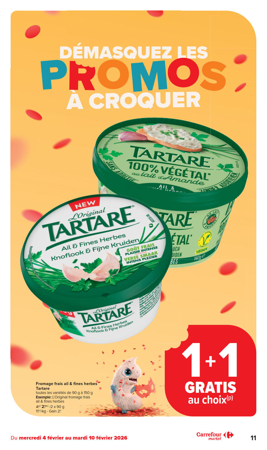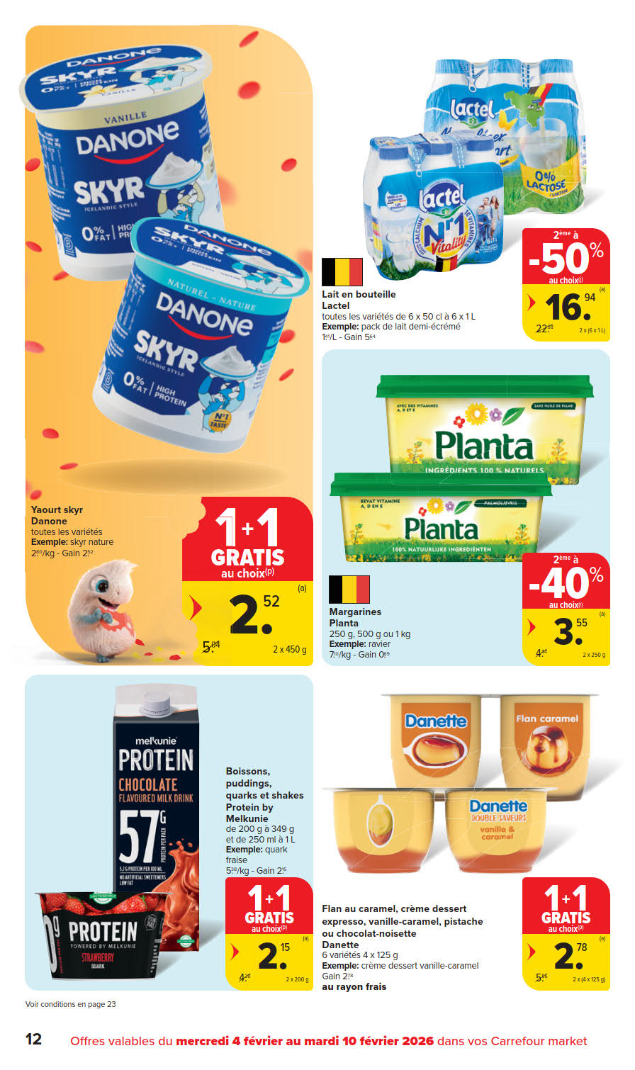 Vous êtes à la recherche de bonnes affaires et de réductions exceptionnelles? Ne cherchez plus loin que Carrefour pour répondre à tous vos besoins en matière de shopping. Nos promotions et offres sont proposées à des prix incroyablement bas, et notre gamme de produits convient à tous les goûts et à tous les budgets. Consultez notre brochure de promotion valable du 04 février au 10 février, et explorez le catalogue pour créer votre liste de courses. Ne manquez pas nos offres hebdomadaires et nos offres exclusives et restez à jour avec les dernières offres et réductions chez Carrefour.
