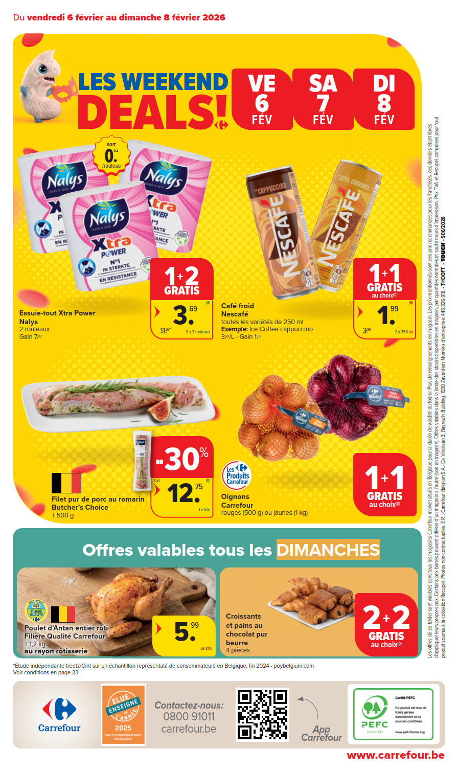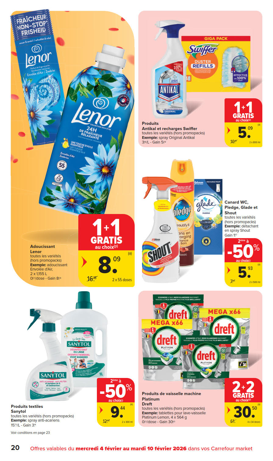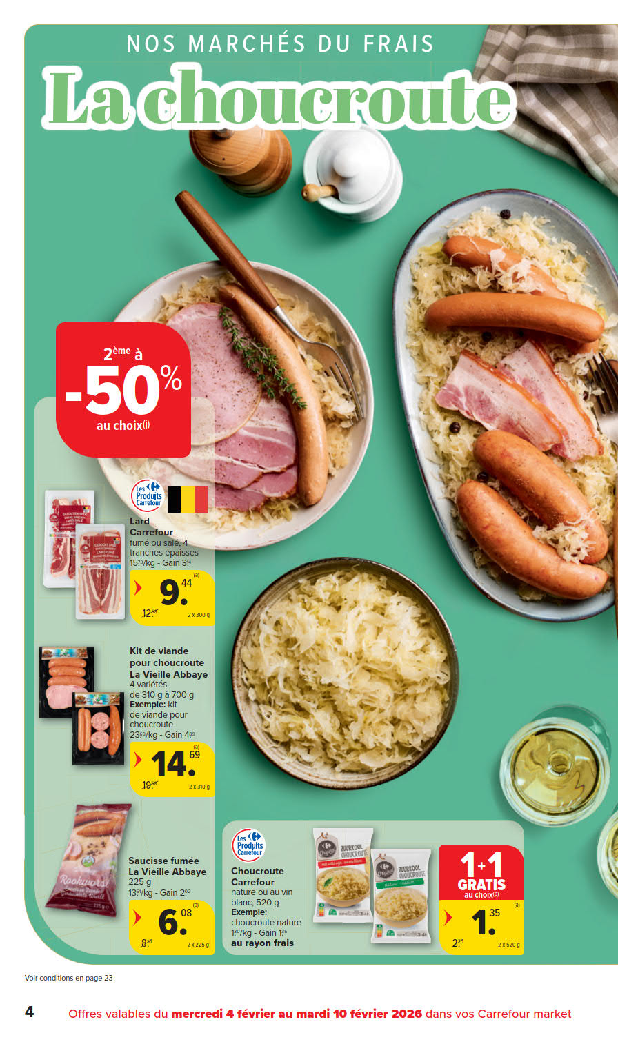 Vous êtes à la recherche de bonnes affaires et de réductions exceptionnelles? Ne cherchez plus loin que Carrefour pour répondre à tous vos besoins en matière de shopping. Nos promotions et offres sont proposées à des prix incroyablement bas, et notre gamme de produits convient à tous les goûts et à tous les budgets. Consultez notre brochure de promotion valable du 04 février au 10 février, et explorez le catalogue pour créer votre liste de courses. Ne manquez pas nos offres hebdomadaires et nos offres exclusives et restez à jour avec les dernières offres et réductions chez Carrefour.