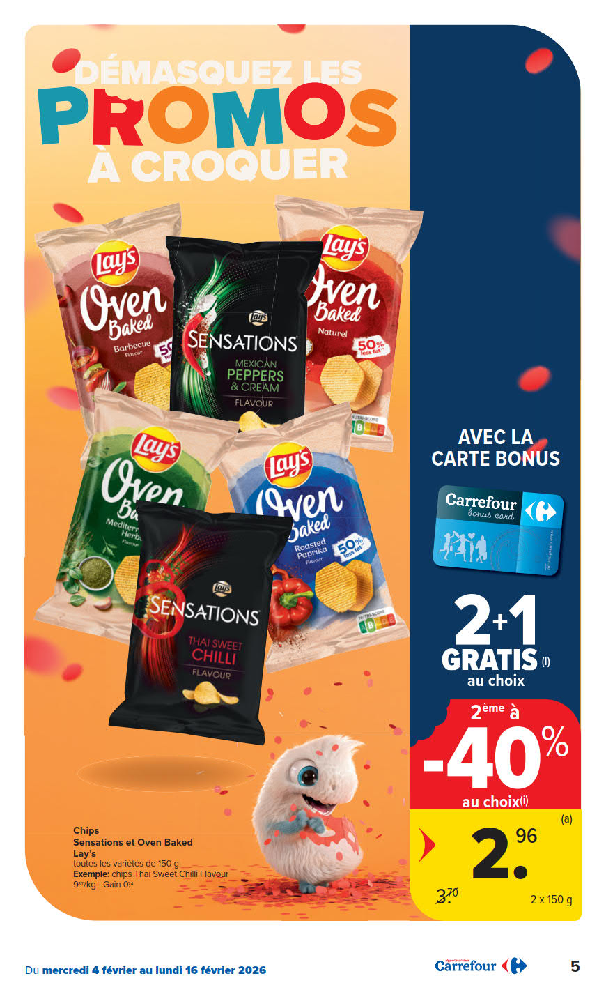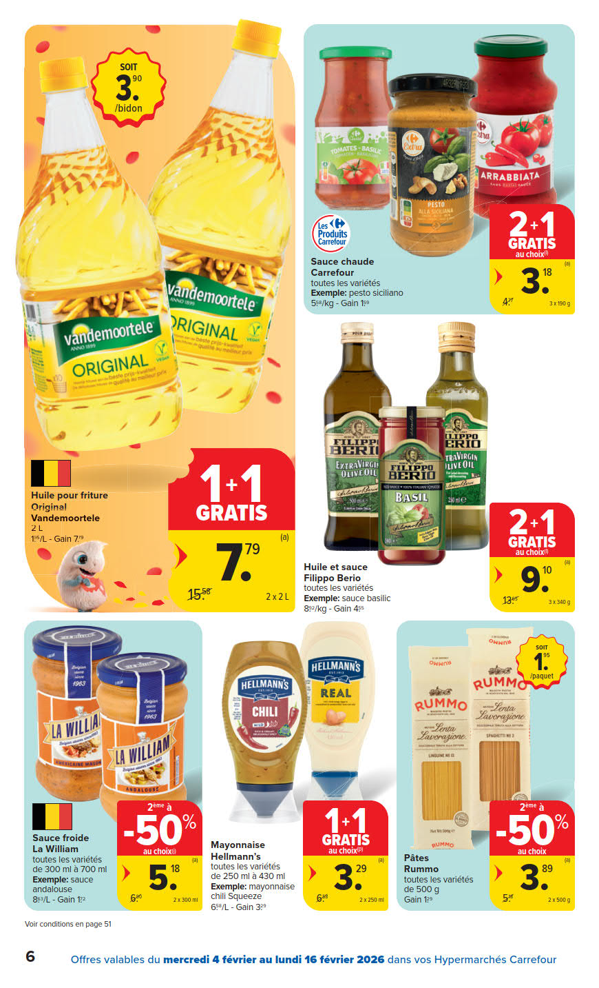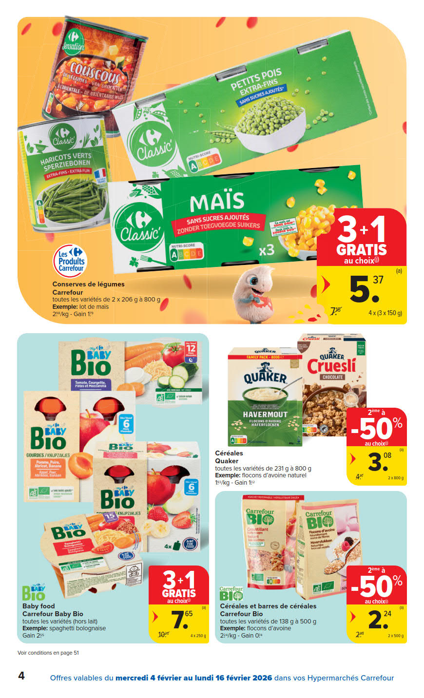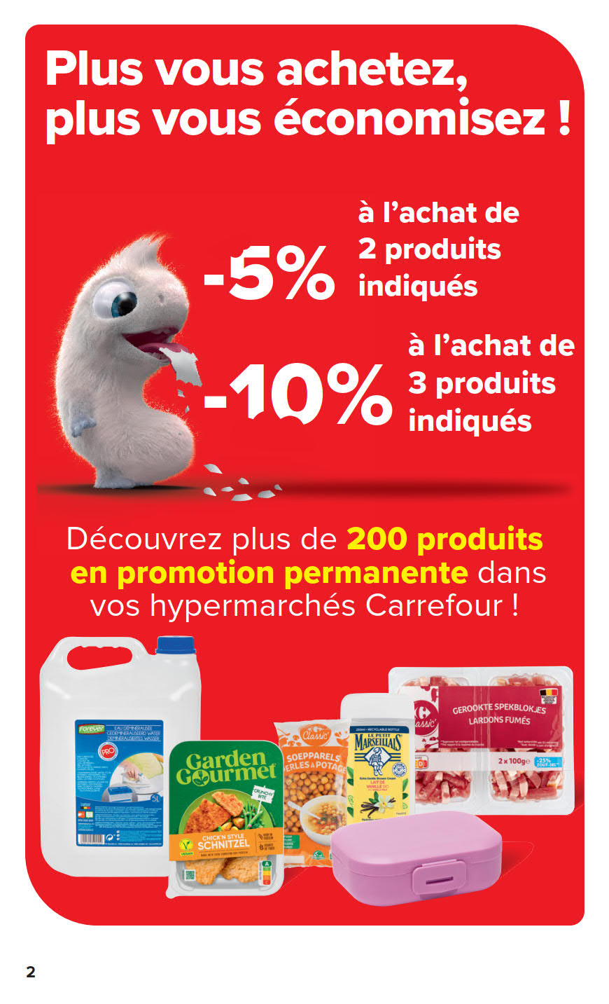 Vous êtes à la recherche de bonnes affaires et de réductions exceptionnelles? Ne cherchez plus loin que Carrefour pour répondre à tous vos besoins en matière de shopping. Nos promotions et offres sont proposées à des prix incroyablement bas, et notre gamme de produits convient à tous les goûts et à tous les budgets. Consultez notre brochure de promotion valable du 04 février au 16 février, et explorez le catalogue pour créer votre liste de courses. Ne manquez pas nos offres hebdomadaires et nos offres exclusives et restez à jour avec les dernières offres et réductions chez Carrefour.