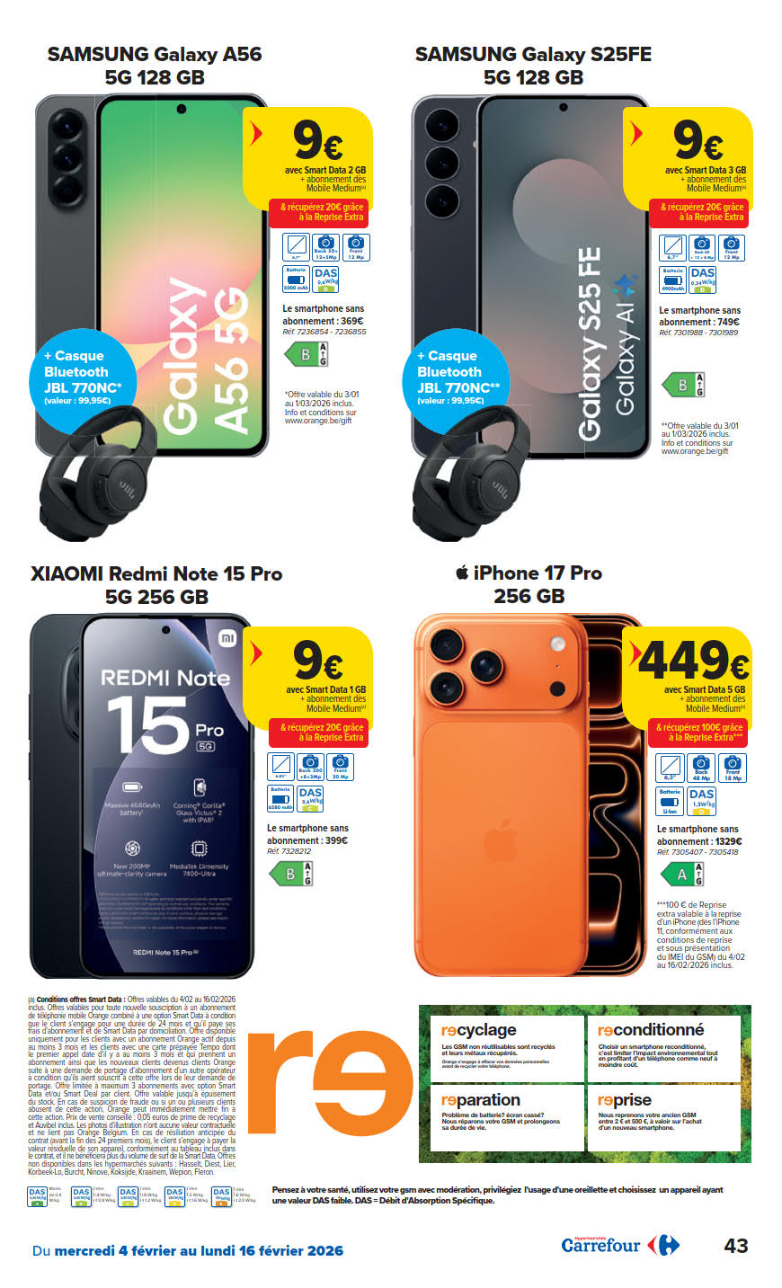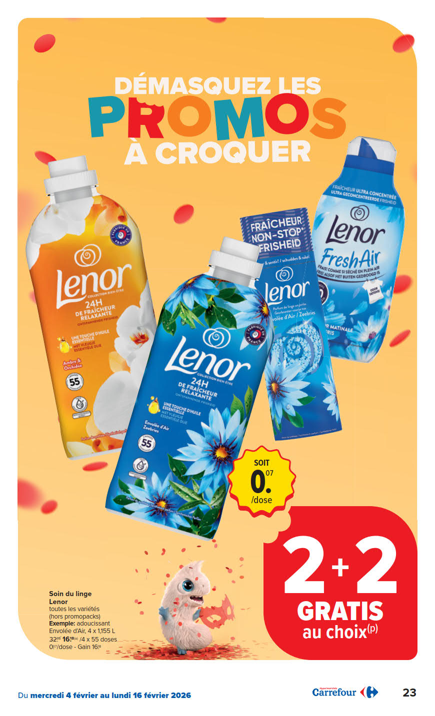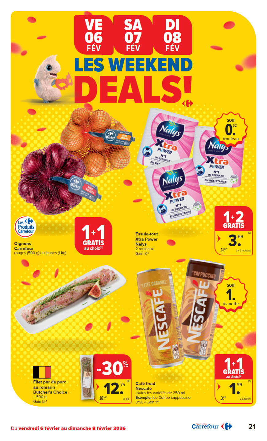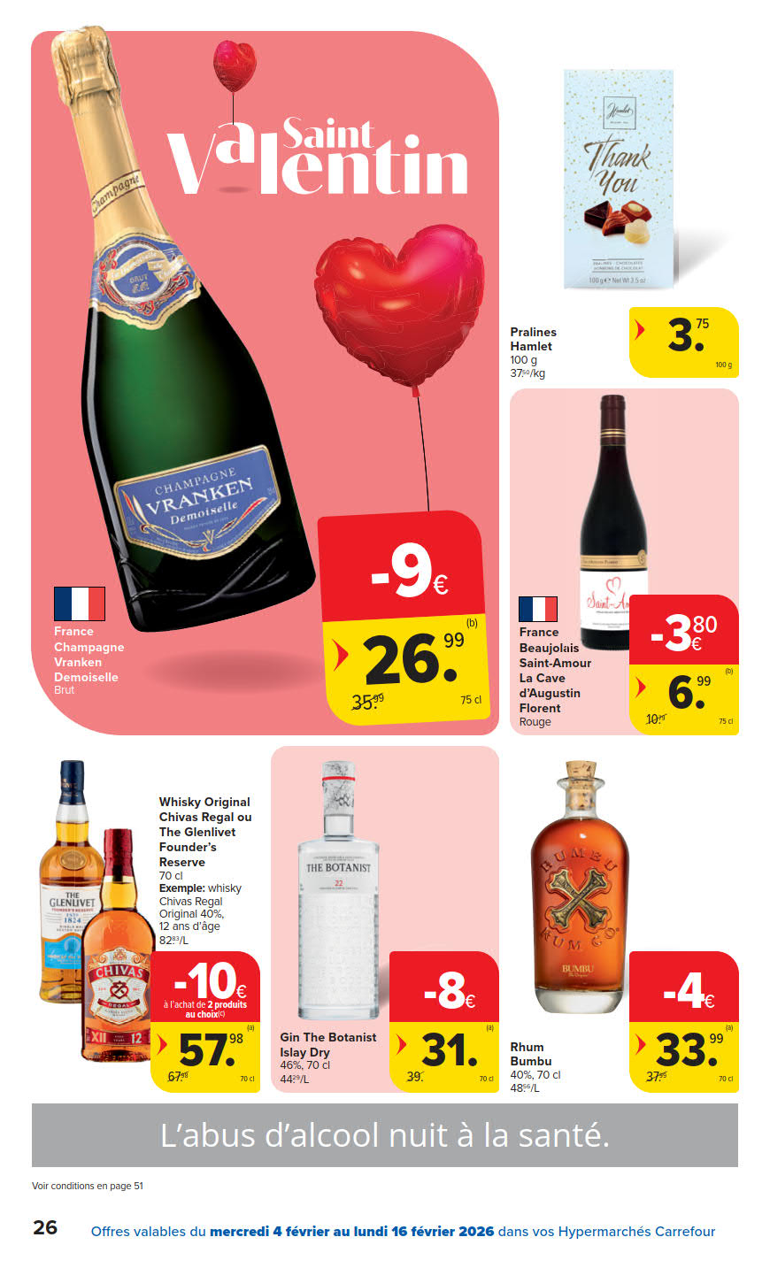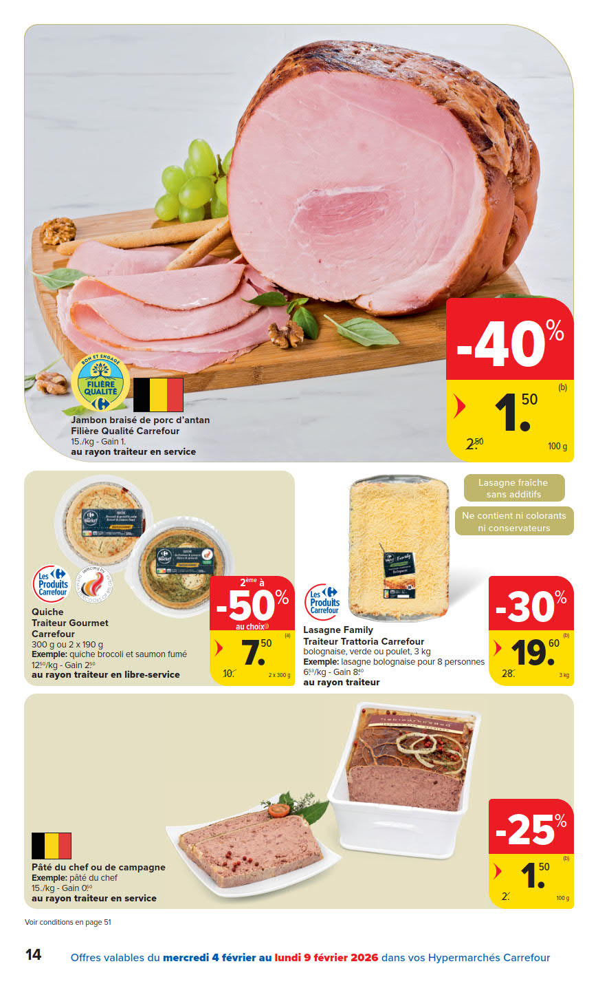 Vous êtes à la recherche de bonnes affaires et de réductions exceptionnelles? Ne cherchez plus loin que Carrefour pour répondre à tous vos besoins en matière de shopping. Nos promotions et offres sont proposées à des prix incroyablement bas, et notre gamme de produits convient à tous les goûts et à tous les budgets. Consultez notre brochure de promotion valable du 04 février au 16 février, et explorez le catalogue pour créer votre liste de courses. Ne manquez pas nos offres hebdomadaires et nos offres exclusives et restez à jour avec les dernières offres et réductions chez Carrefour.