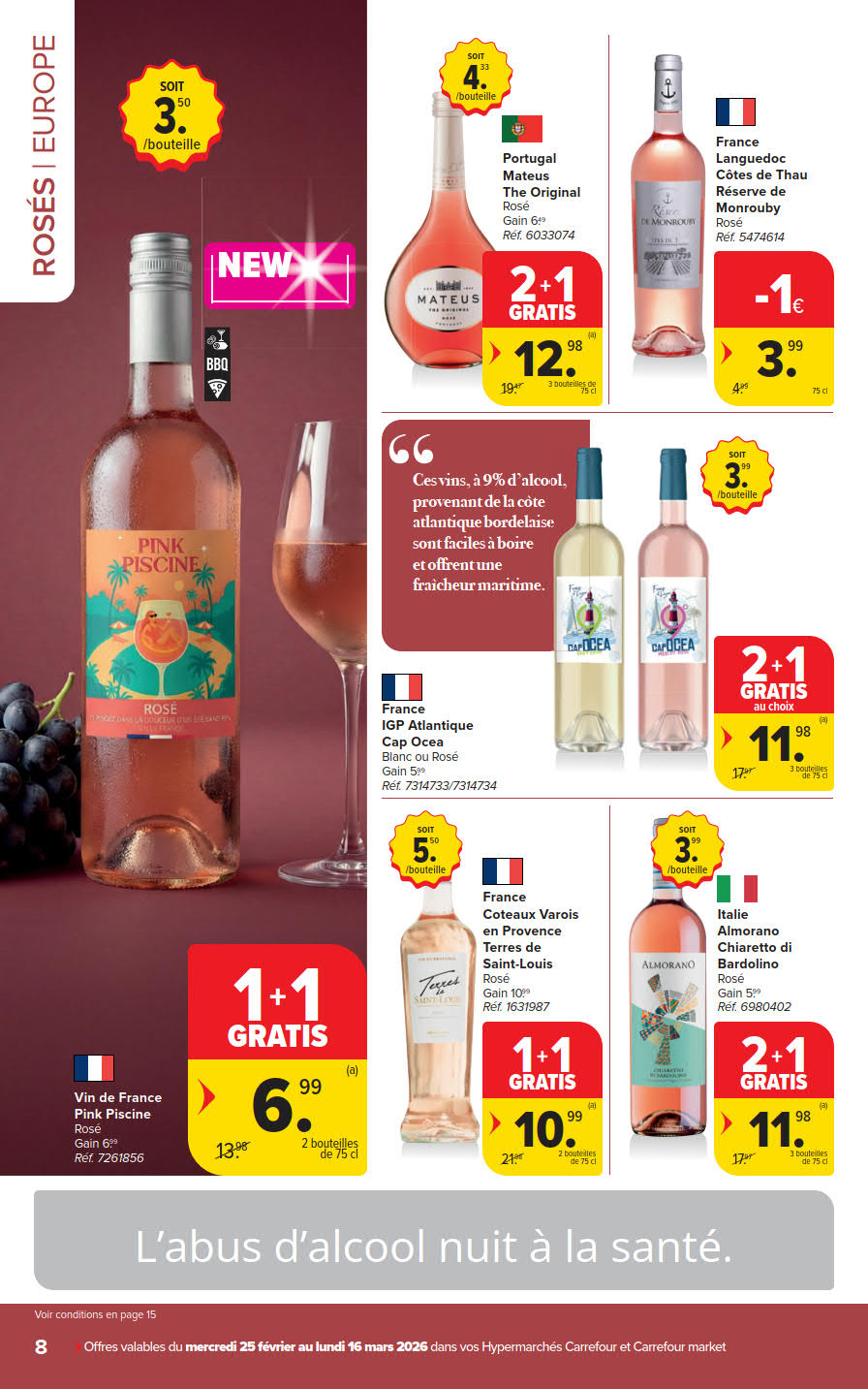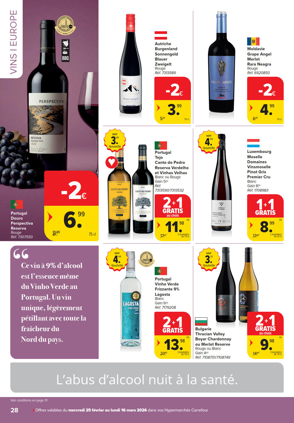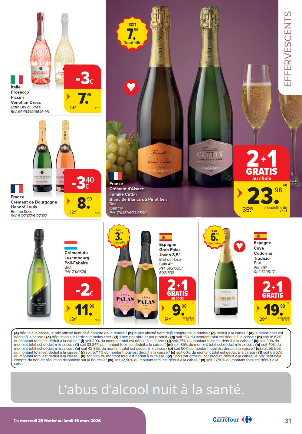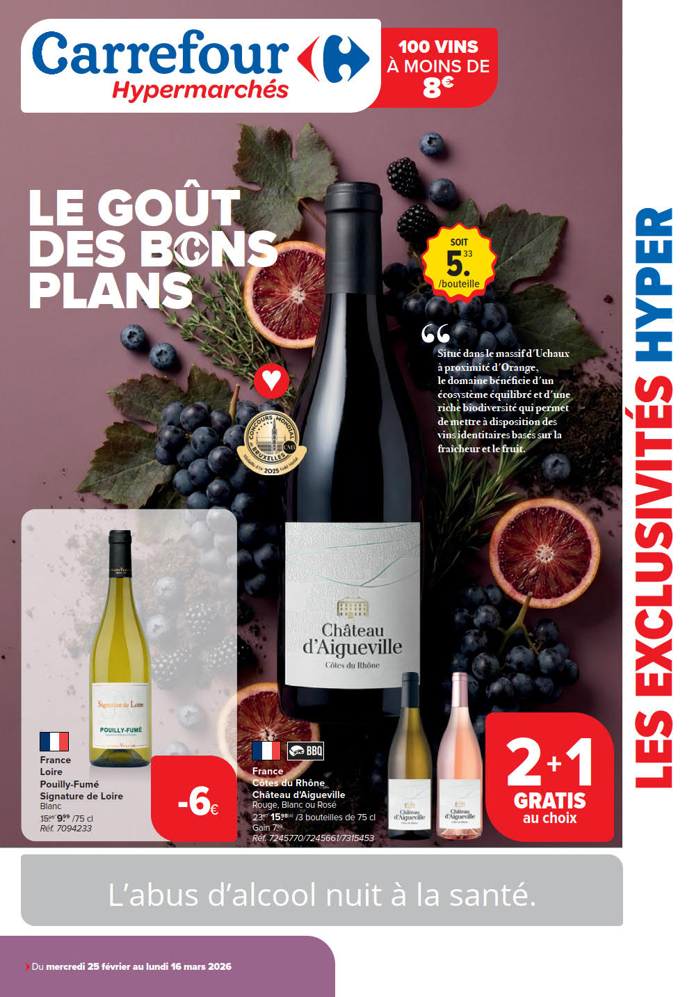 Vous êtes à la recherche de bonnes affaires et de réductions exceptionnelles? Ne cherchez plus loin que Carrefour pour répondre à tous vos besoins en matière de shopping. Nos promotions et offres sont proposées à des prix incroyablement bas, et notre gamme de produits convient à tous les goûts et à tous les budgets. Consultez notre brochure de promotion valable du 25 février au 16 mars, et explorez le catalogue pour créer votre liste de courses. Ne manquez pas nos offres hebdomadaires et nos offres exclusives et restez à jour avec les dernières offres et réductions chez Carrefour.