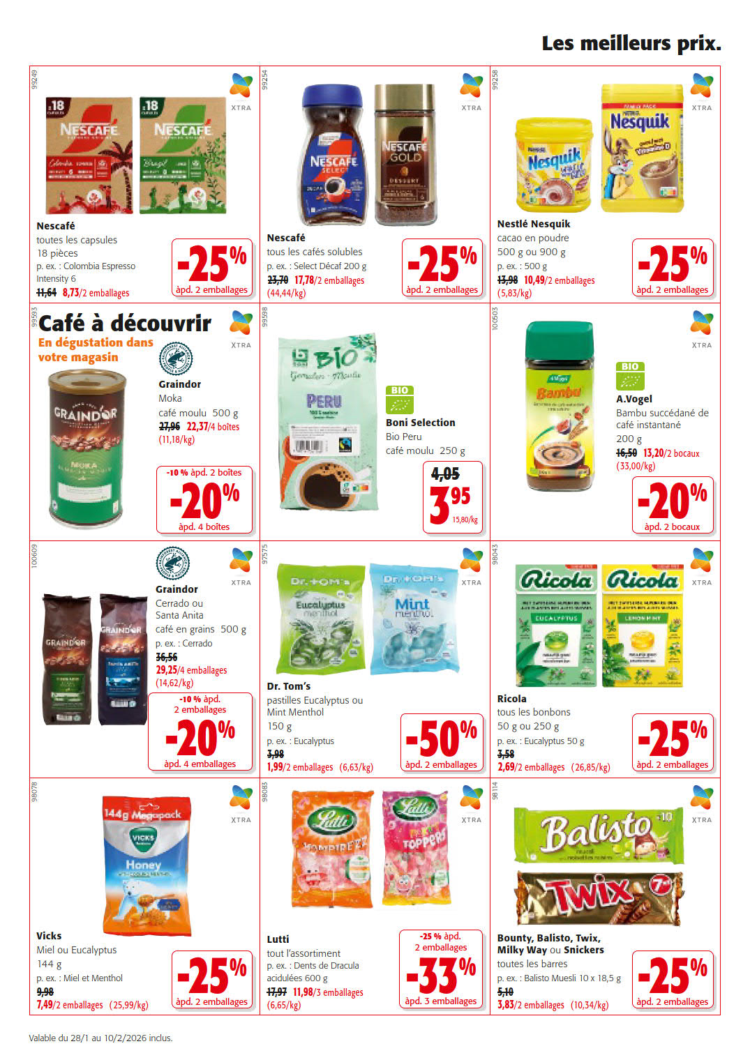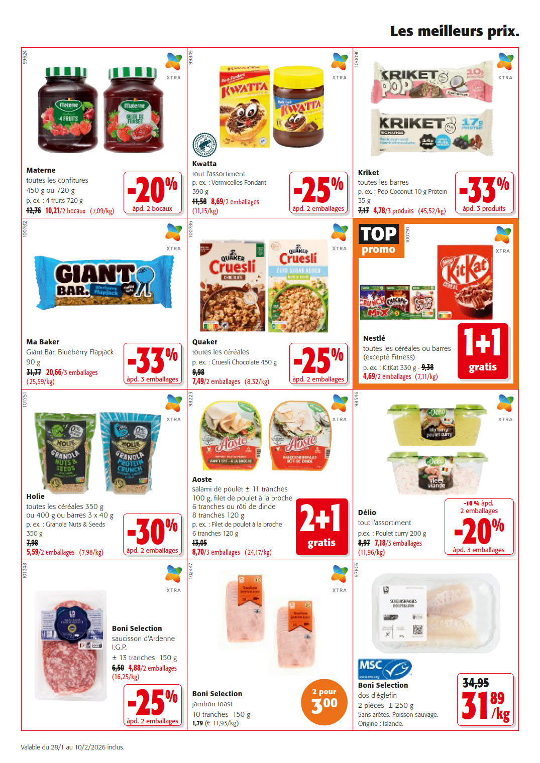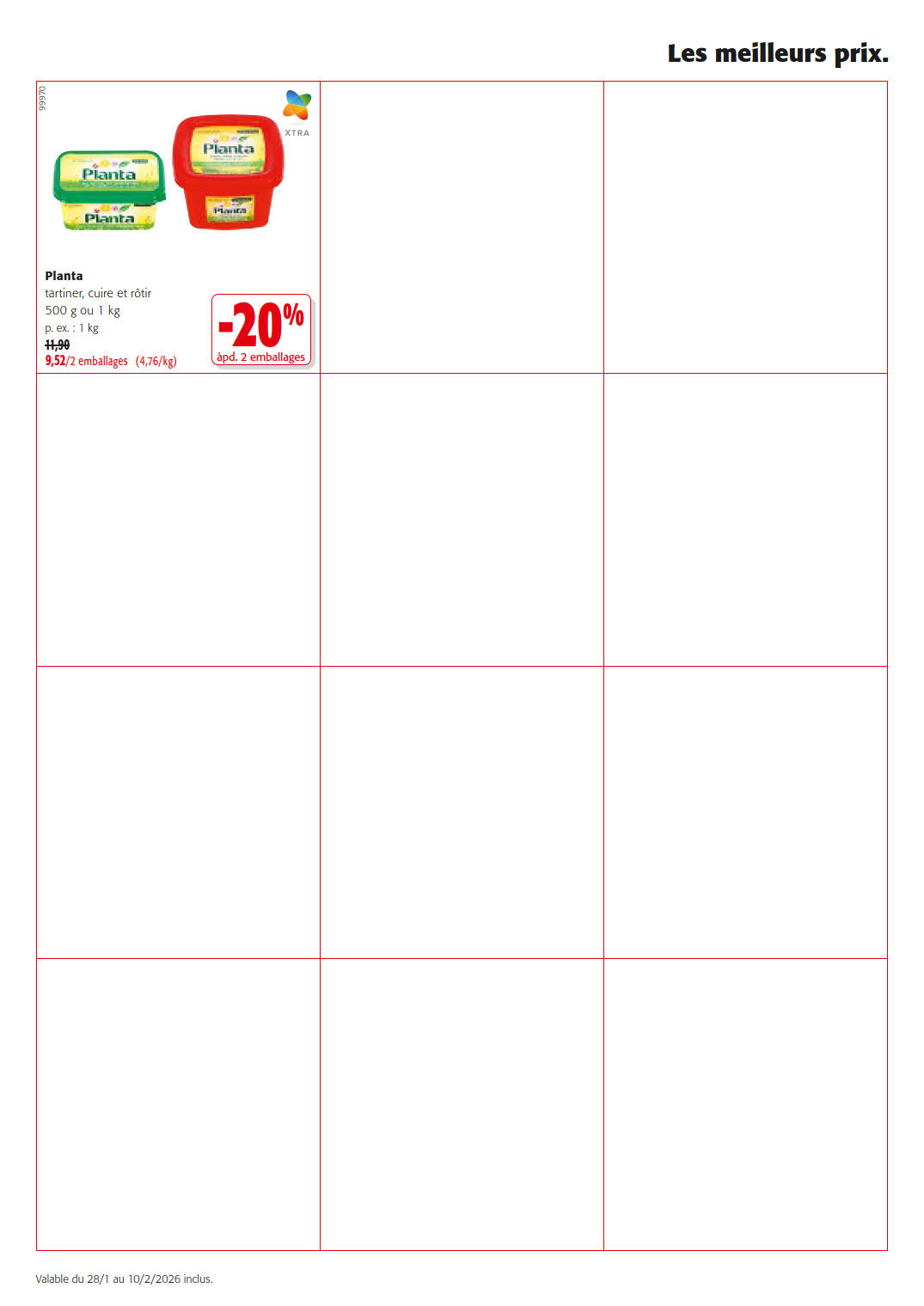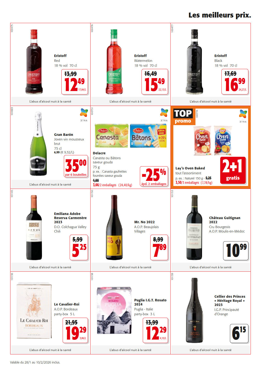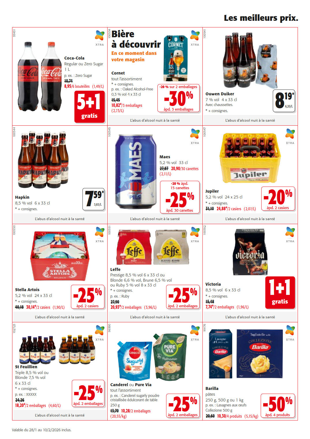 Vous êtes à la recherche de bonnes affaires et de réductions exceptionnelles? Ne cherchez plus loin que Colruyt pour répondre à tous vos besoins en matière de shopping. Nos promotions et offres sont proposées à des prix incroyablement bas, et notre gamme de produits convient à tous les goûts et à tous les budgets. Consultez notre brochure de promotion valable du 28 janvier au 10 février, et explorez le catalogue pour créer votre liste de courses. Ne manquez pas nos offres hebdomadaires et nos offres exclusives et restez à jour avec les dernières offres et réductions chez Colruyt.