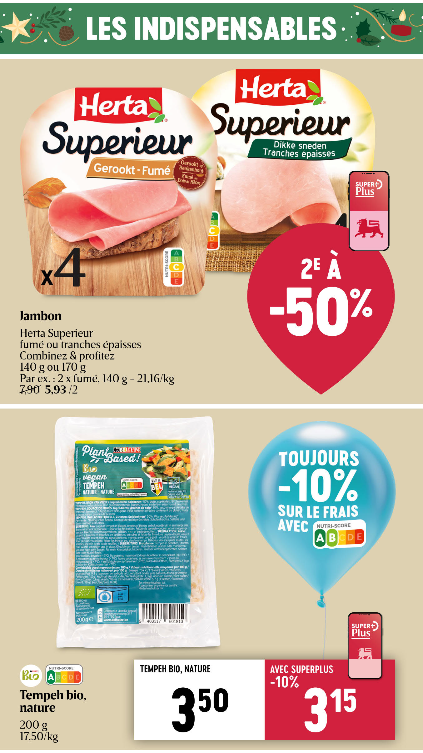 Vous êtes à la recherche de bonnes affaires et de réductions exceptionnelles? Ne cherchez plus loin que Delhaize pour répondre à tous vos besoins en matière de shopping. Nos promotions et offres sont proposées à des prix incroyablement bas, et notre gamme de produits convient à tous les goûts et à tous les budgets. Consultez notre brochure de promotion valable du 26 décembre au 01 janvier, et explorez le catalogue pour créer votre liste de courses. Ne manquez pas nos offres hebdomadaires et nos offres exclusives et restez à jour avec les dernières offres et réductions chez Delhaize.