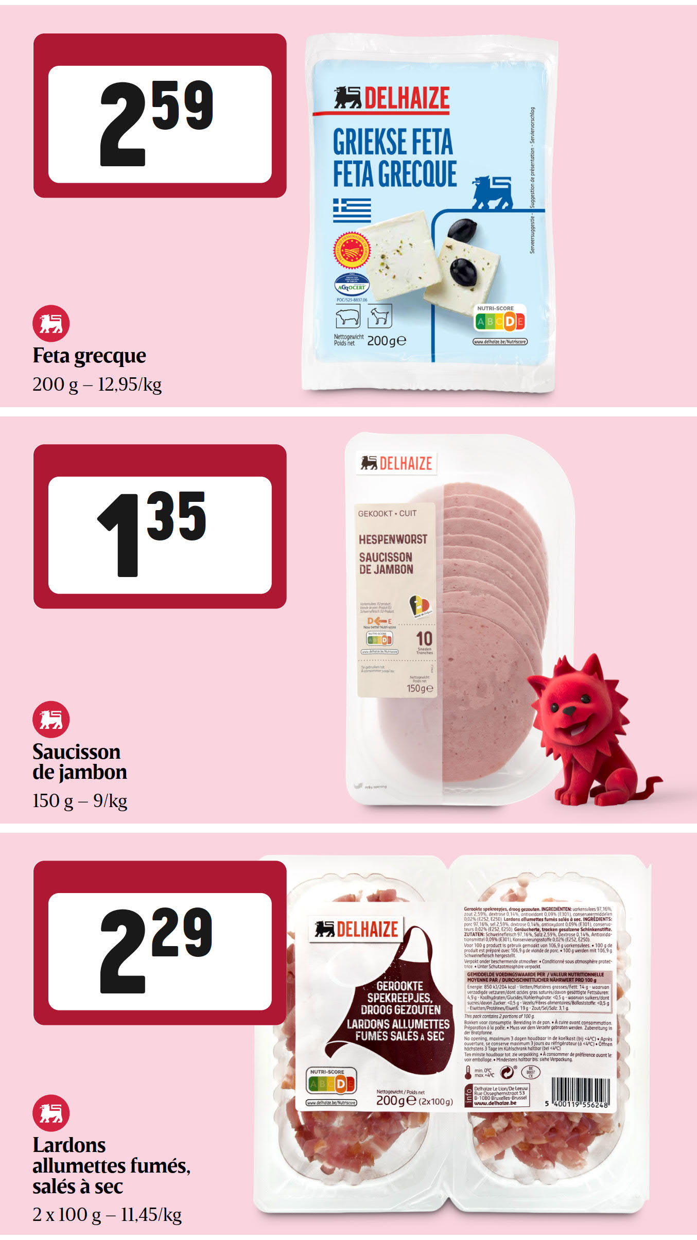 Nous proposons les derniers arrivages, vous offrant ainsi un large choix de produits parmi lesquels vous pouvez sélectionner vos favoris. Assurez-vous de parcourir nos produits et de sélectionner vos favoris avant l'expiration des offres. Faire du shopping de manière intelligente signifie réaliser des économies considérables, et les meilleures offres sont maintenant disponibles et valables jusqu'au 18 février. Alors ne tardez pas à faire vos courses. Notre personnel amical est toujours prêt à vous aider, vous pouvez donc être sûr d'un service client de qualité à chaque étape. Découvrez le shopping sans tracas et des économies importantes, uniquement avec Delhaize.