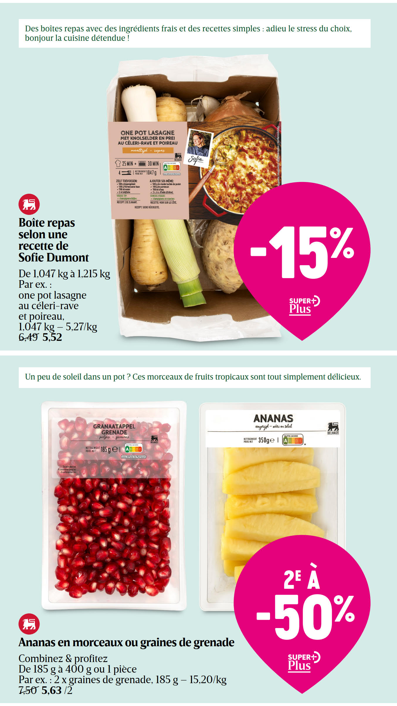 Vous êtes à la recherche de bonnes affaires et de réductions exceptionnelles? Ne cherchez plus loin que Delhaize pour répondre à tous vos besoins en matière de shopping. Nos promotions et offres sont proposées à des prix incroyablement bas, et notre gamme de produits convient à tous les goûts et à tous les budgets. Consultez notre brochure de promotion valable du 30 octobre au 05 novembre, et explorez le catalogue pour créer votre liste de courses. Ne manquez pas nos offres hebdomadaires et nos offres exclusives et restez à jour avec les dernières offres et réductions chez Delhaize.