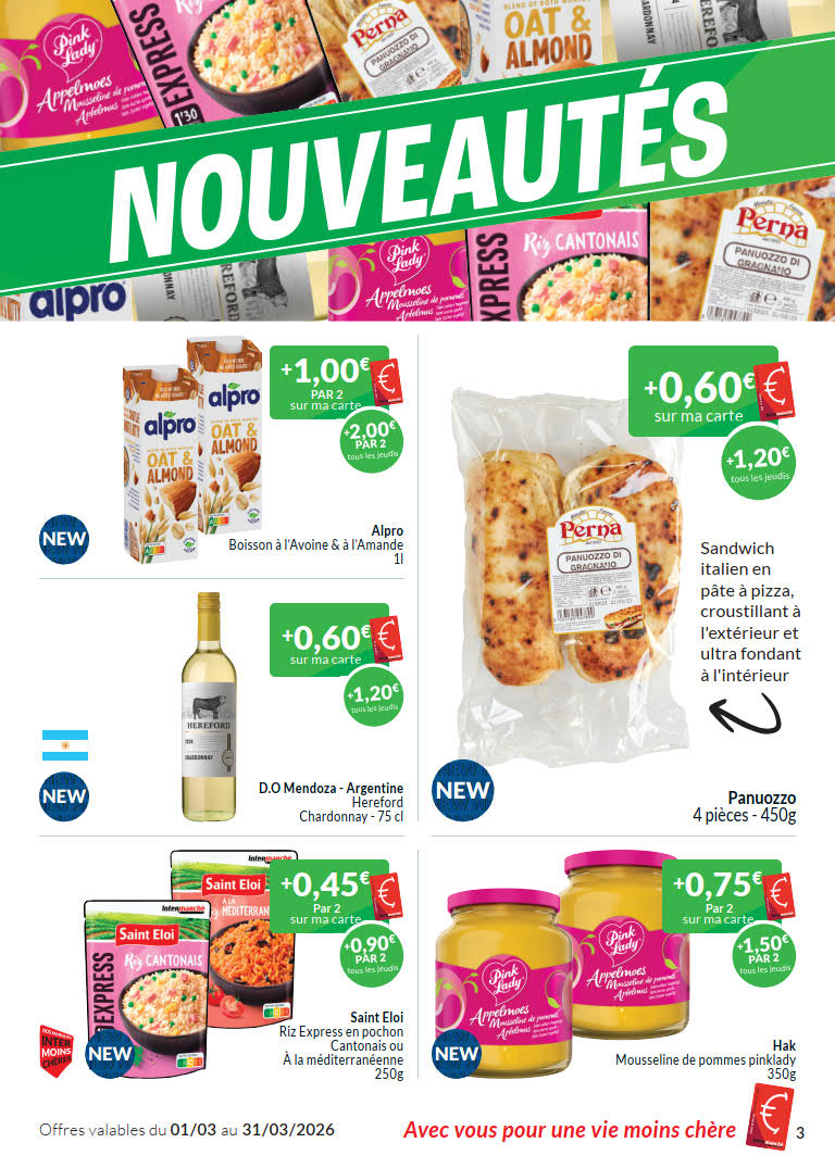 Nous proposons les derniers arrivages, vous offrant ainsi un large choix de produits parmi lesquels vous pouvez sélectionner vos favoris. Assurez-vous de parcourir nos produits et de sélectionner vos favoris avant l'expiration des offres. Faire du shopping de manière intelligente signifie réaliser des économies considérables, et les meilleures offres sont maintenant disponibles et valables jusqu'au 31 mars. Alors ne tardez pas à faire vos courses. Notre personnel amical est toujours prêt à vous aider, vous pouvez donc être sûr d'un service client de qualité à chaque étape. Découvrez le shopping sans tracas et des économies importantes, uniquement avec Intermarché.
