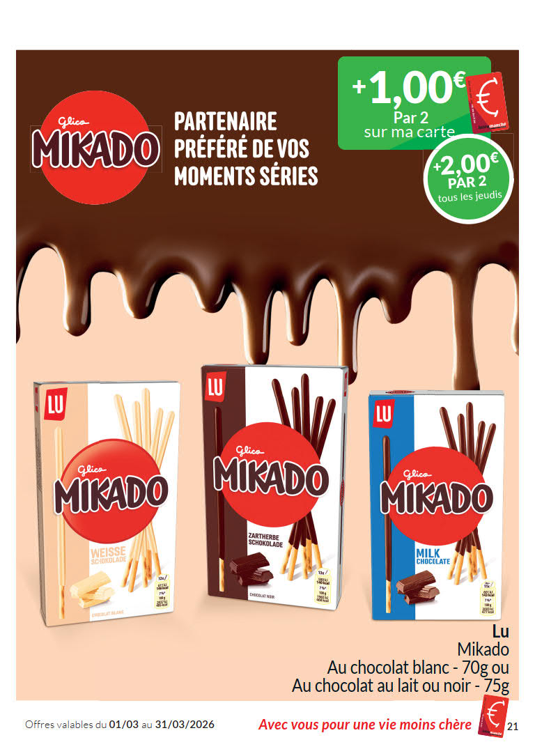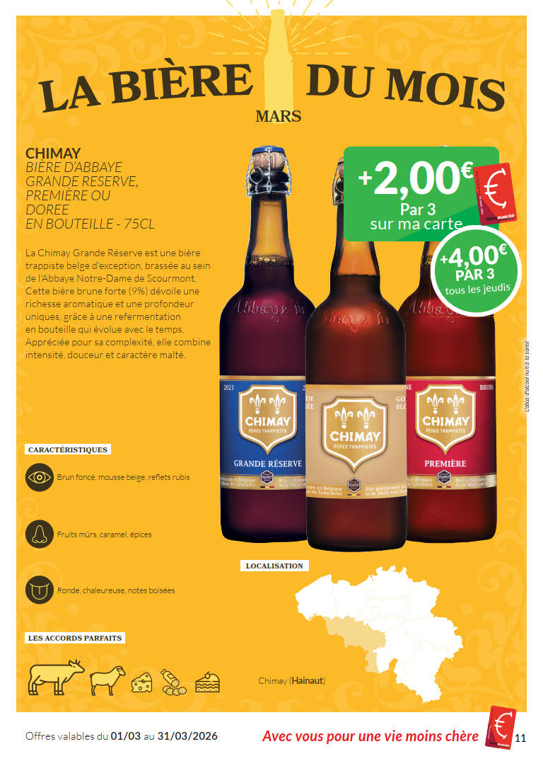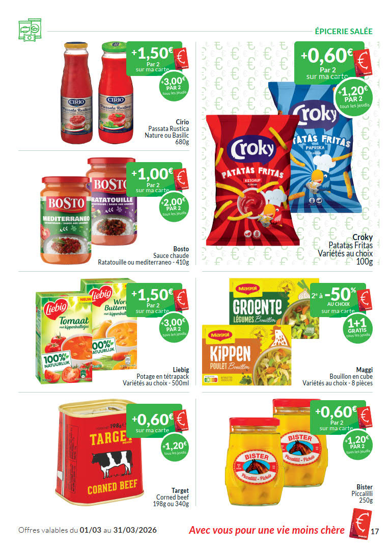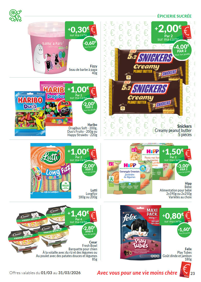 Vous êtes à la recherche de bonnes affaires et de réductions exceptionnelles? Ne cherchez plus loin que Intermarché pour répondre à tous vos besoins en matière de shopping. Nos promotions et offres sont proposées à des prix incroyablement bas, et notre gamme de produits convient à tous les goûts et à tous les budgets. Consultez notre brochure de promotion valable du 01 mars au 31 mars, et explorez le catalogue pour créer votre liste de courses. Ne manquez pas nos offres hebdomadaires et nos offres exclusives et restez à jour avec les dernières offres et réductions chez Intermarché.