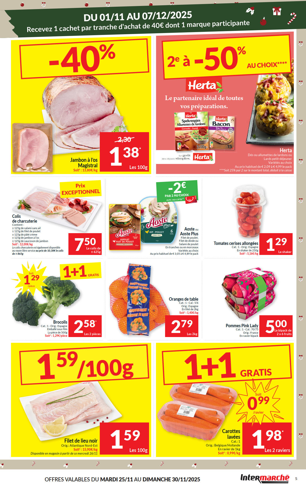 Vous êtes à la recherche de bonnes affaires et de réductions exceptionnelles? Ne cherchez plus loin que Intermarché pour répondre à tous vos besoins en matière de shopping. Nos promotions et offres sont proposées à des prix incroyablement bas, et notre gamme de produits convient à tous les goûts et à tous les budgets. Consultez notre brochure de promotion valable du 25 novembre au 30 novembre, et explorez le catalogue pour créer votre liste de courses. Ne manquez pas nos offres hebdomadaires et nos offres exclusives et restez à jour avec les dernières offres et réductions chez Intermarché.
