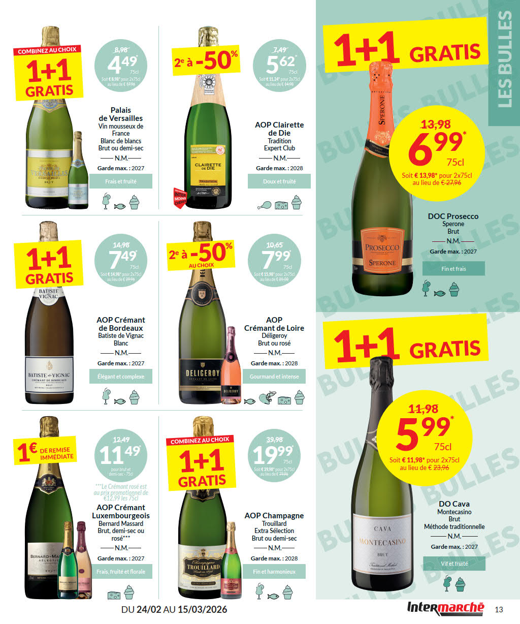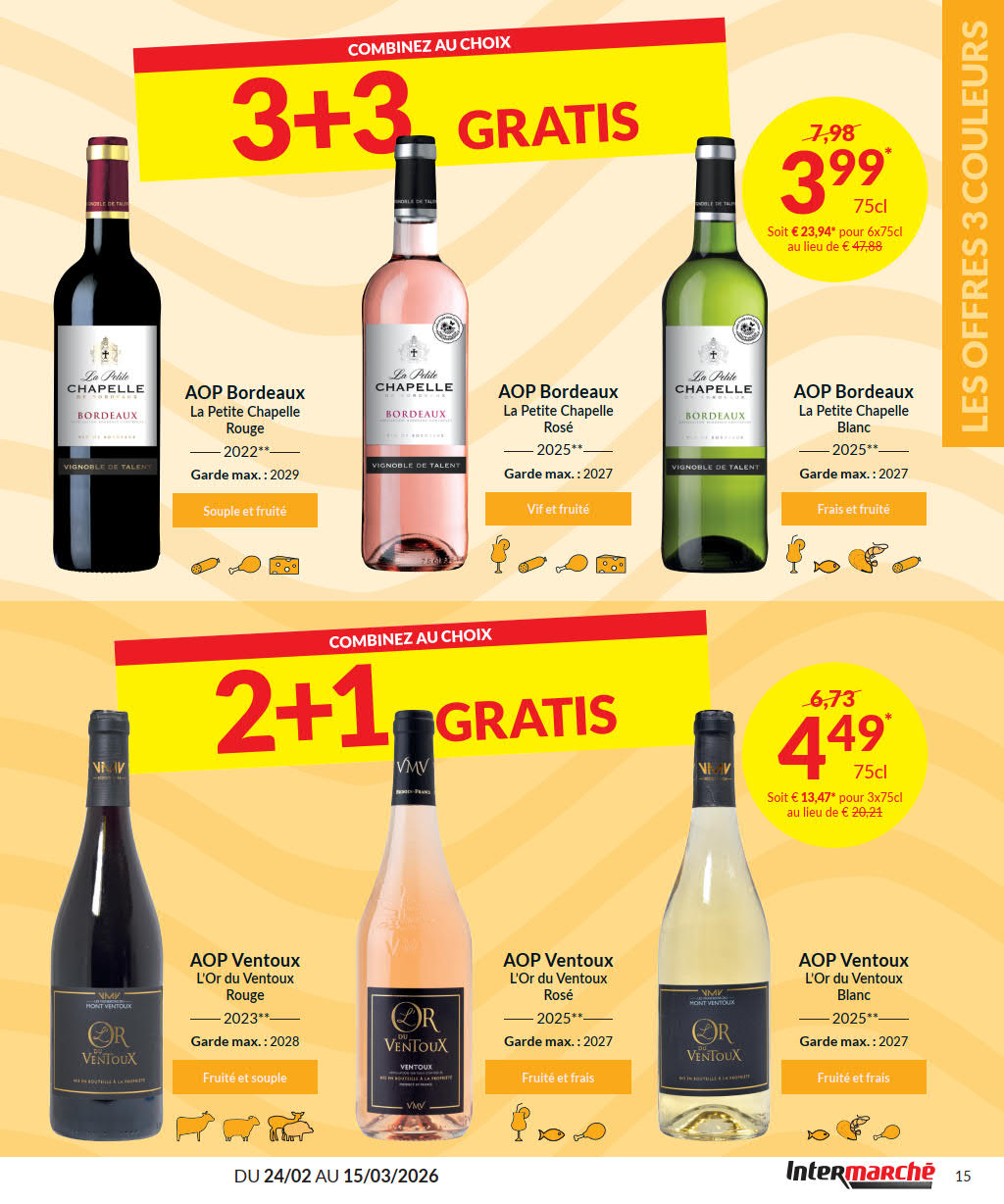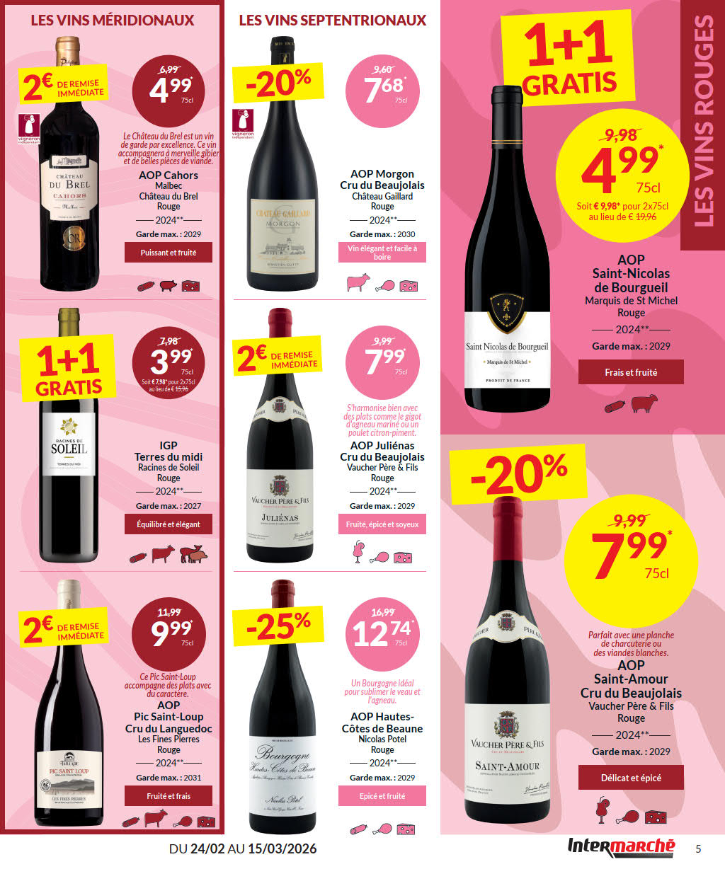 Vous êtes à la recherche de bonnes affaires et de réductions exceptionnelles? Ne cherchez plus loin que Intermarché pour répondre à tous vos besoins en matière de shopping. Nos promotions et offres sont proposées à des prix incroyablement bas, et notre gamme de produits convient à tous les goûts et à tous les budgets. Consultez notre brochure de promotion valable du 24 février au 15 mars, et explorez le catalogue pour créer votre liste de courses. Ne manquez pas nos offres hebdomadaires et nos offres exclusives et restez à jour avec les dernières offres et réductions chez Intermarché.