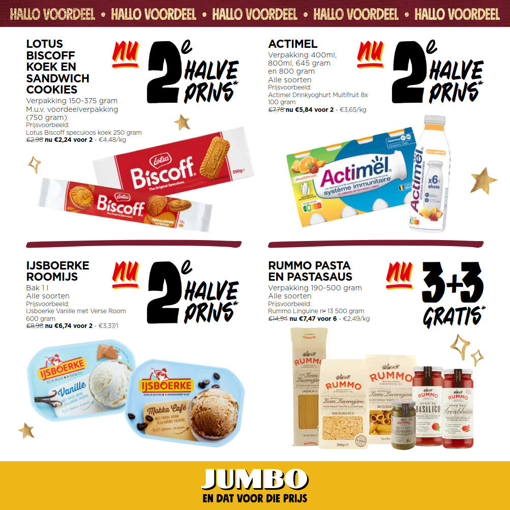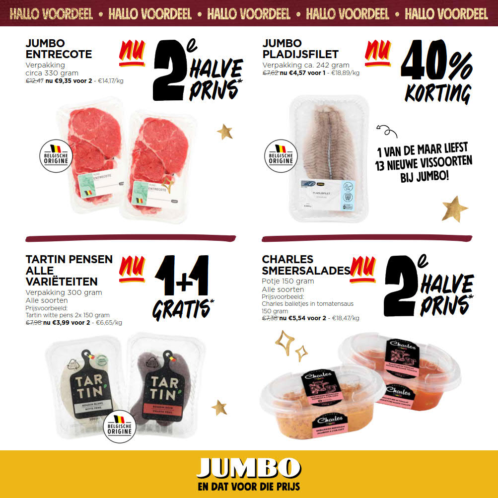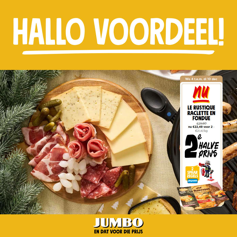 Vous êtes à la recherche de bonnes affaires et de réductions exceptionnelles? Ne cherchez plus loin que Jumbo pour répondre à tous vos besoins en matière de shopping. Nos promotions et offres sont proposées à des prix incroyablement bas, et notre gamme de produits convient à tous les goûts et à tous les budgets. Consultez notre brochure de promotion valable du 03 décembre au 10 décembre, et explorez le catalogue pour créer votre liste de courses. Ne manquez pas nos offres hebdomadaires et nos offres exclusives et restez à jour avec les dernières offres et réductions chez Jumbo.