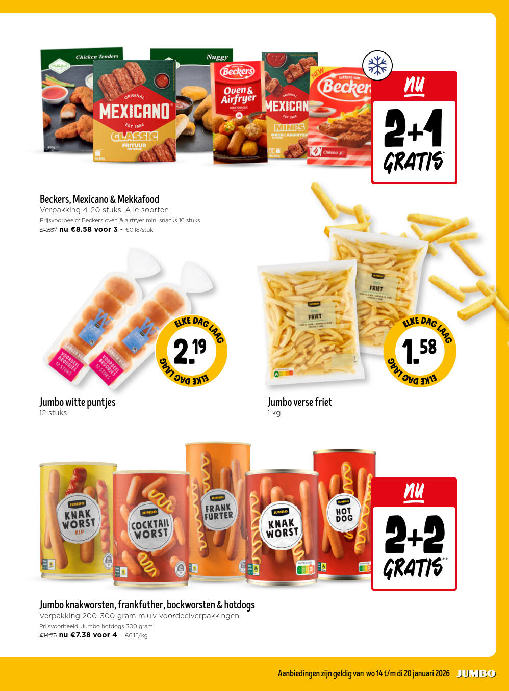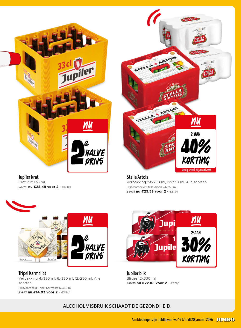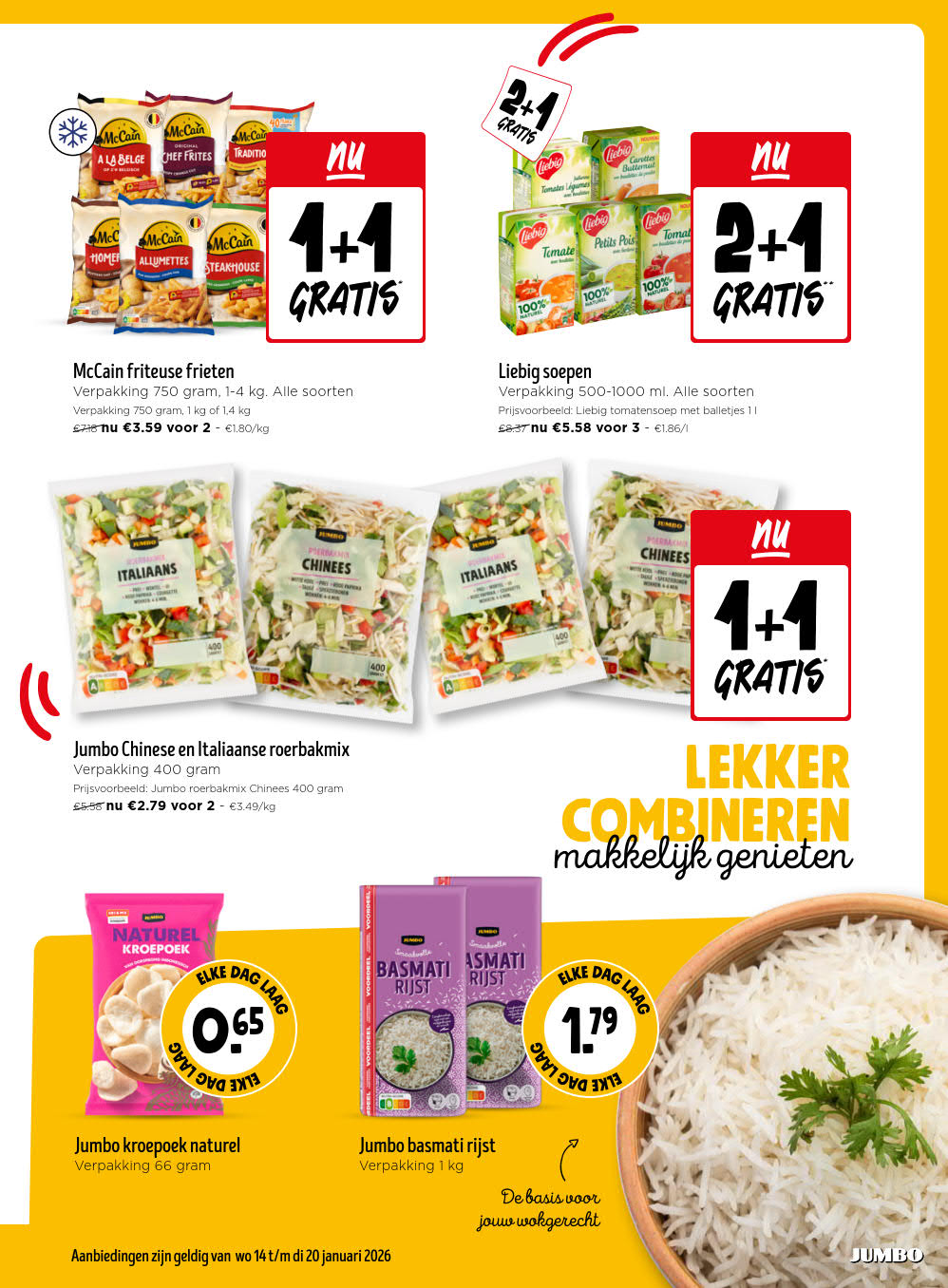 Vous êtes à la recherche de bonnes affaires et de réductions exceptionnelles? Ne cherchez plus loin que Jumbo pour répondre à tous vos besoins en matière de shopping. Nos promotions et offres sont proposées à des prix incroyablement bas, et notre gamme de produits convient à tous les goûts et à tous les budgets. Consultez notre brochure de promotion valable du 14 janvier au 20 janvier, et explorez le catalogue pour créer votre liste de courses. Ne manquez pas nos offres hebdomadaires et nos offres exclusives et restez à jour avec les dernières offres et réductions chez Jumbo.