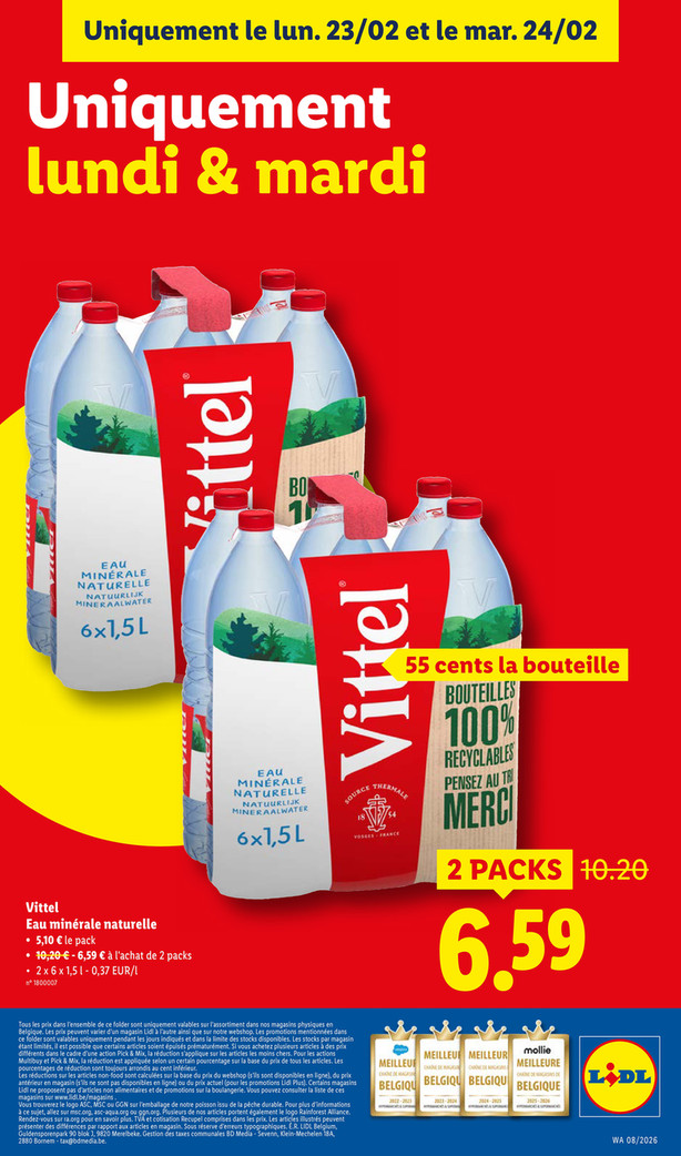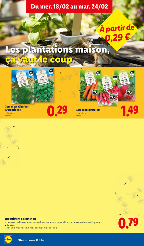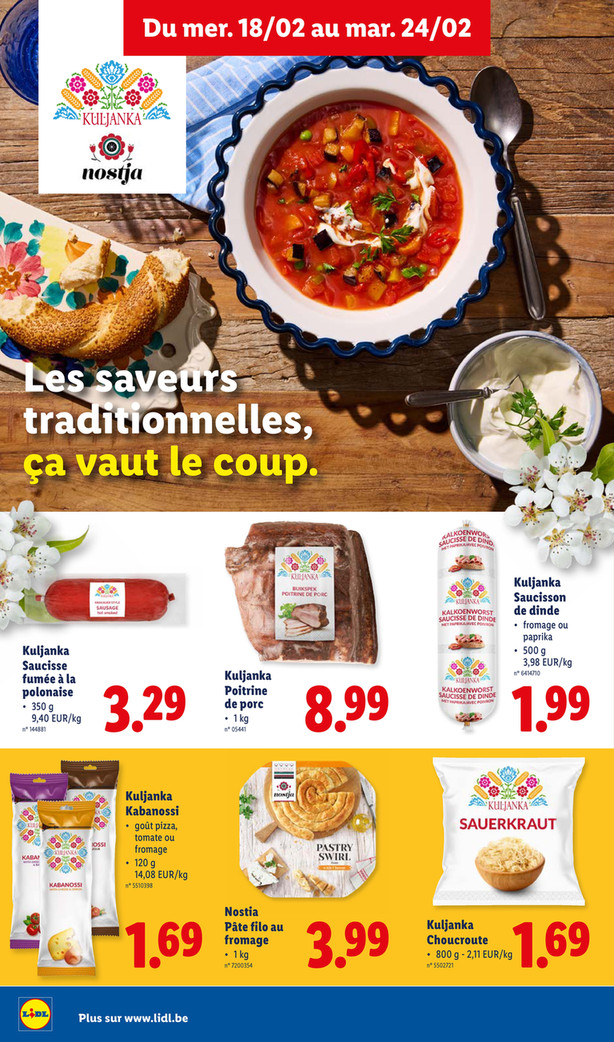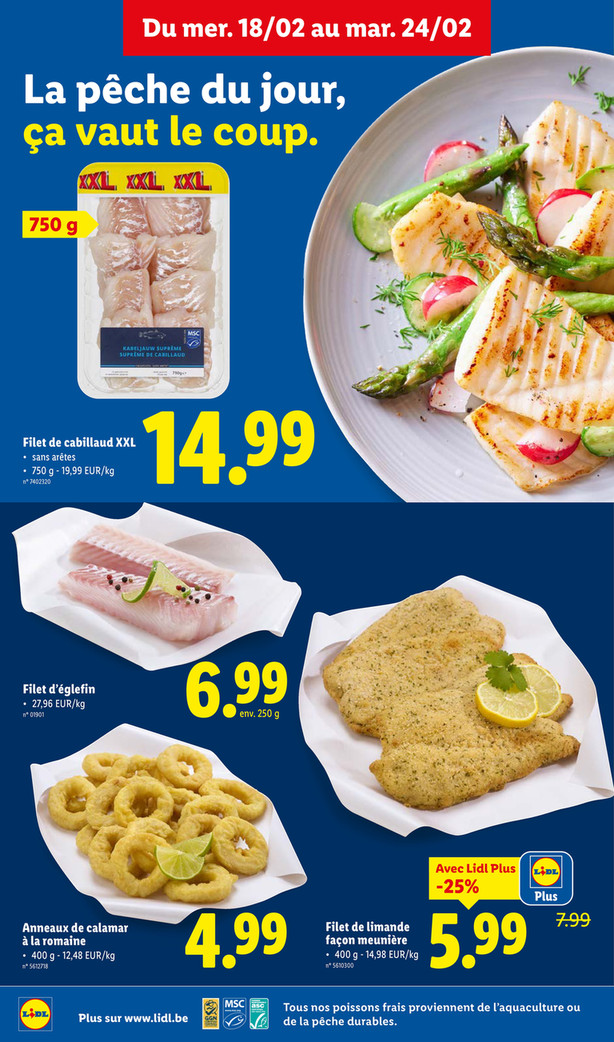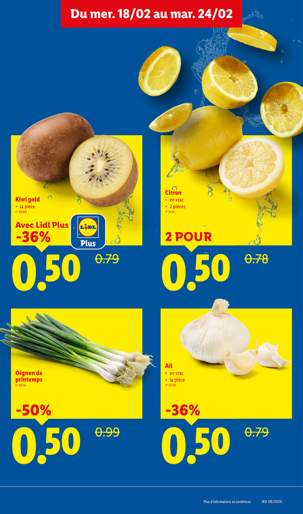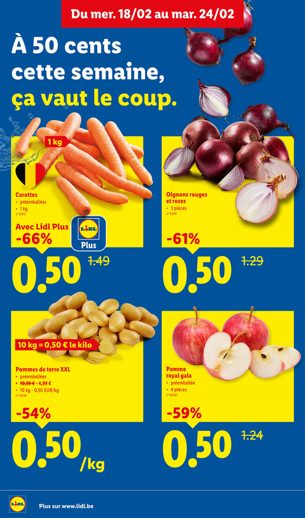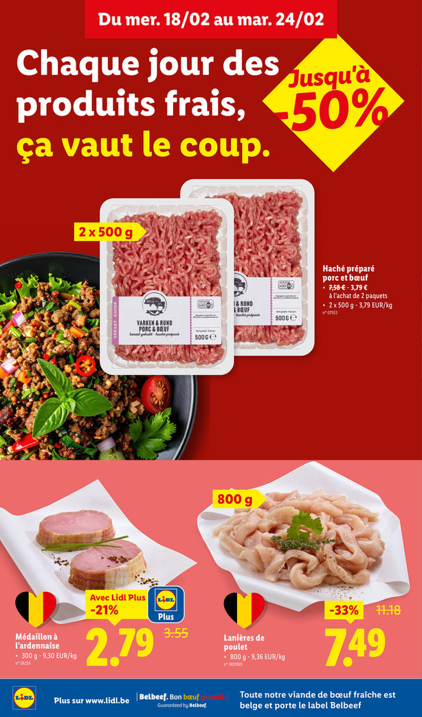 Vous êtes à la recherche de bonnes affaires et de réductions exceptionnelles? Ne cherchez plus loin que Lidl pour répondre à tous vos besoins en matière de shopping. Nos promotions et offres sont proposées à des prix incroyablement bas, et notre gamme de produits convient à tous les goûts et à tous les budgets. Consultez notre brochure de promotion valable du 18 février au 24 février, et explorez le catalogue pour créer votre liste de courses. Ne manquez pas nos offres hebdomadaires et nos offres exclusives et restez à jour avec les dernières offres et réductions chez Lidl.