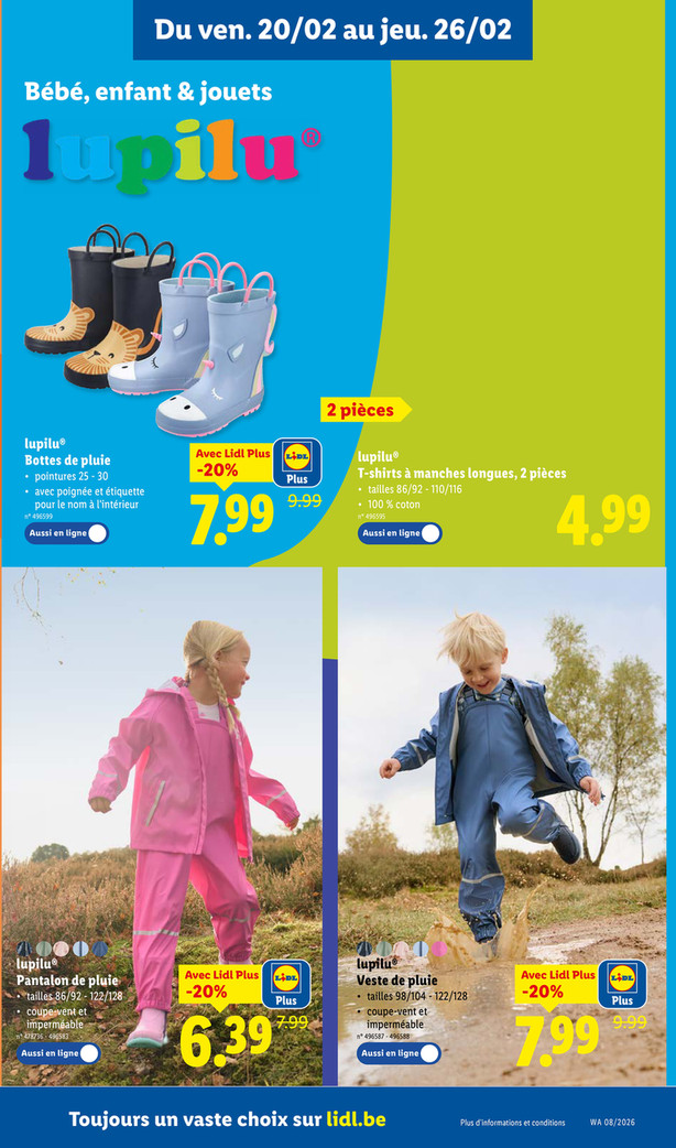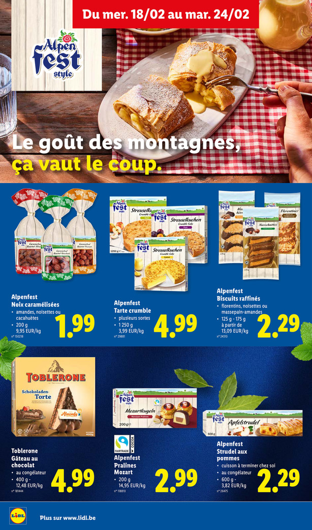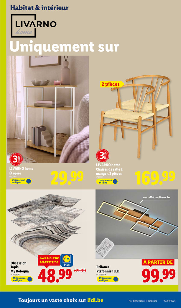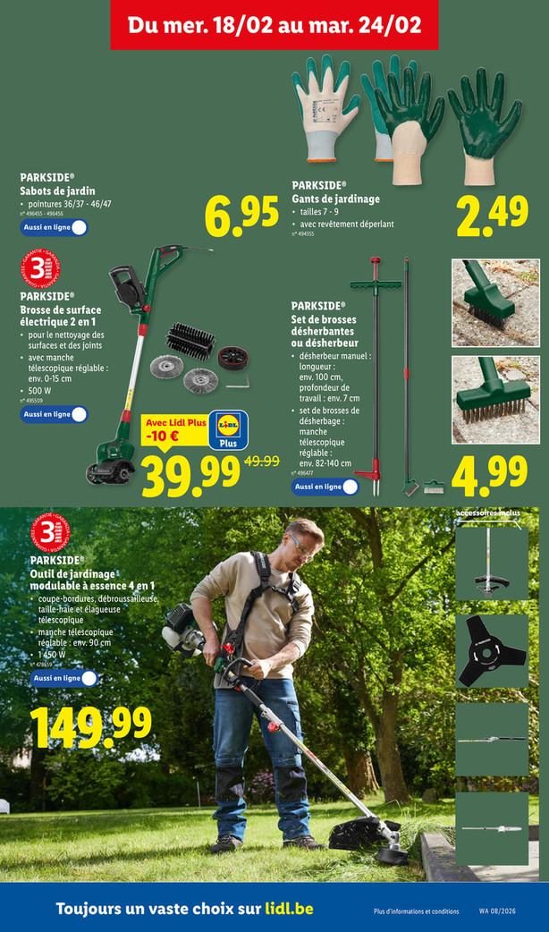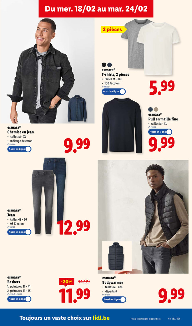 Nous proposons les derniers arrivages, vous offrant ainsi un large choix de produits parmi lesquels vous pouvez sélectionner vos favoris. Assurez-vous de parcourir nos produits et de sélectionner vos favoris avant l'expiration des offres. Faire du shopping de manière intelligente signifie réaliser des économies considérables, et les meilleures offres sont maintenant disponibles et valables jusqu'au 24 février. Alors ne tardez pas à faire vos courses. Notre personnel amical est toujours prêt à vous aider, vous pouvez donc être sûr d'un service client de qualité à chaque étape. Découvrez le shopping sans tracas et des économies importantes, uniquement avec Lidl.