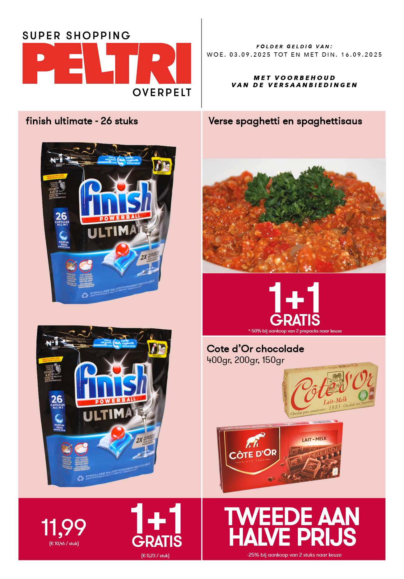 Vous êtes à la recherche de bonnes affaires et de réductions exceptionnelles? Ne cherchez plus loin que Peltri pour répondre à tous vos besoins en matière de shopping. Nos promotions et offres sont proposées à des prix incroyablement bas, et notre gamme de produits convient à tous les goûts et à tous les budgets. Consultez notre brochure de promotion valable du 03 septembre au 16 septembre, et explorez le catalogue pour créer votre liste de courses. Ne manquez pas nos offres hebdomadaires et nos offres exclusives et restez à jour avec les dernières offres et réductions chez Peltri.