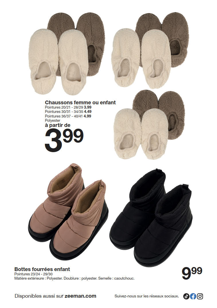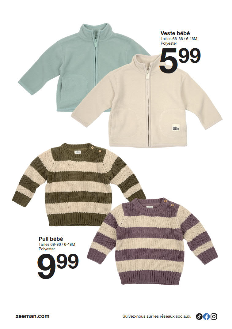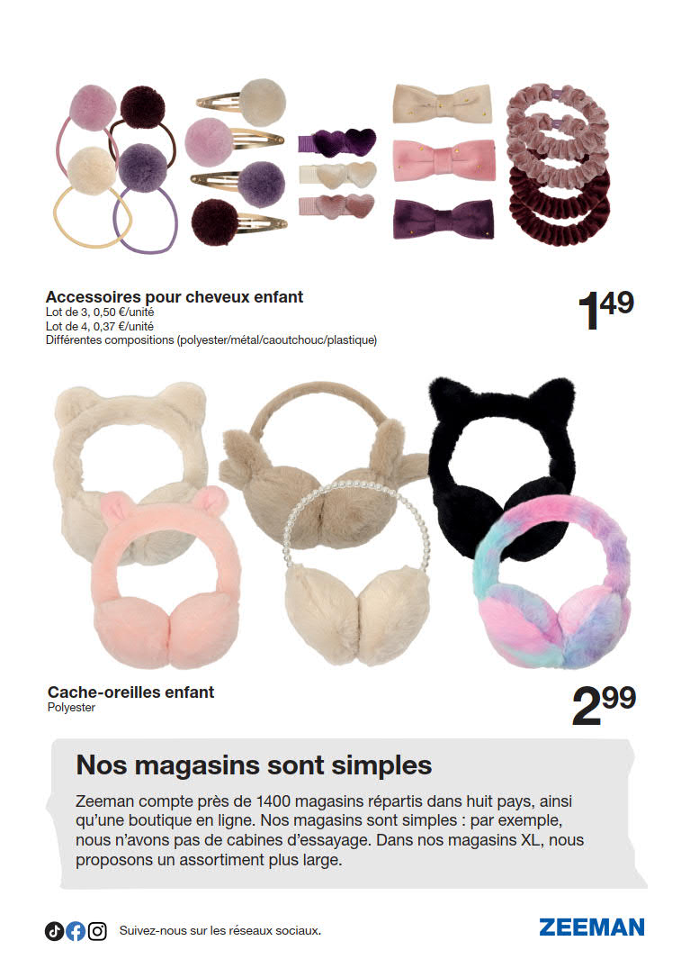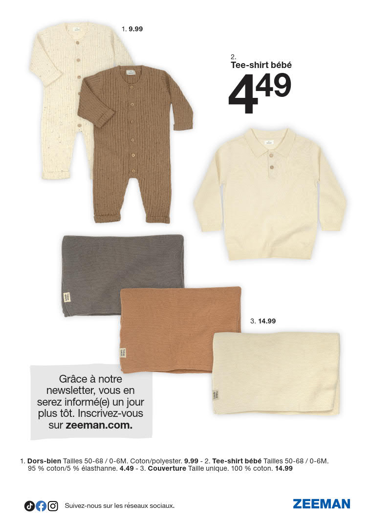 Nous proposons les derniers arrivages, vous offrant ainsi un large choix de produits parmi lesquels vous pouvez sélectionner vos favoris. Assurez-vous de parcourir nos produits et de sélectionner vos favoris avant l'expiration des offres. Faire du shopping de manière intelligente signifie réaliser des économies considérables, et les meilleures offres sont maintenant disponibles et valables jusqu'au 24 octobre. Alors ne tardez pas à faire vos courses. Notre personnel amical est toujours prêt à vous aider, vous pouvez donc être sûr d'un service client de qualité à chaque étape. Découvrez le shopping sans tracas et des économies importantes, uniquement avec Zeeman.