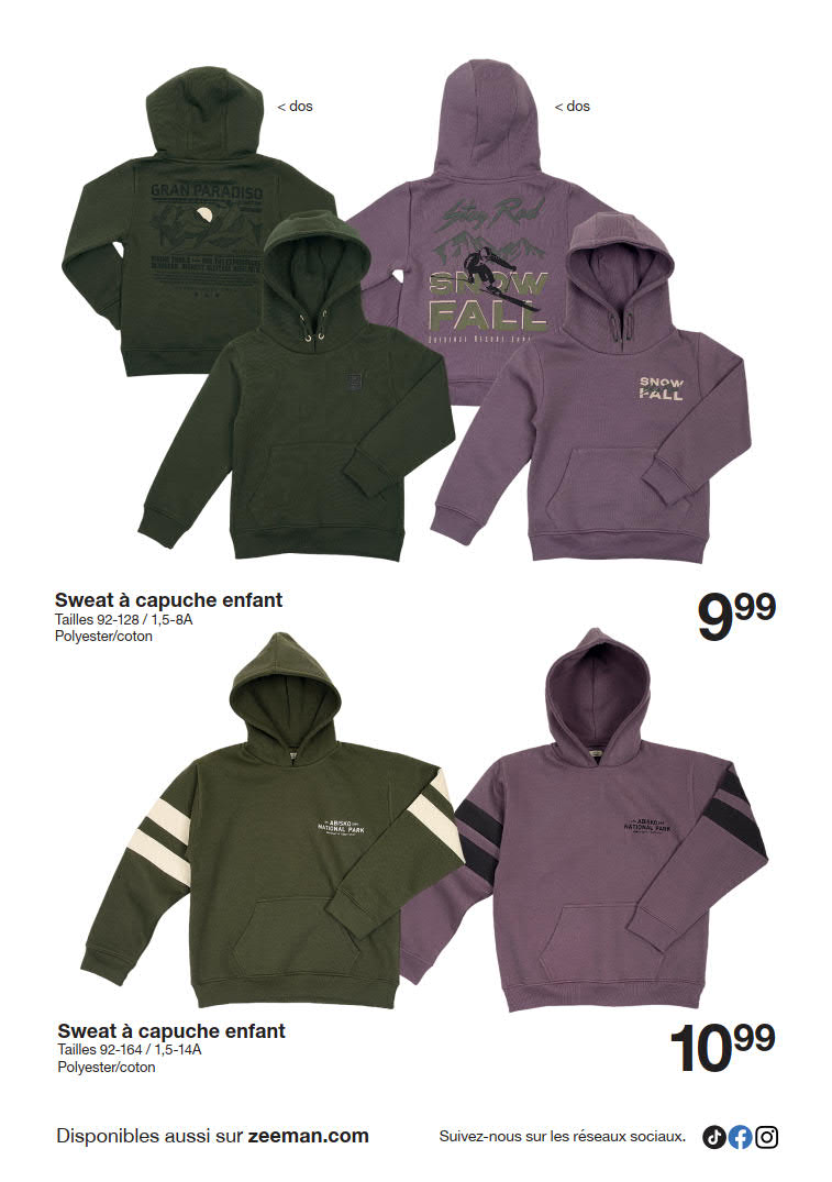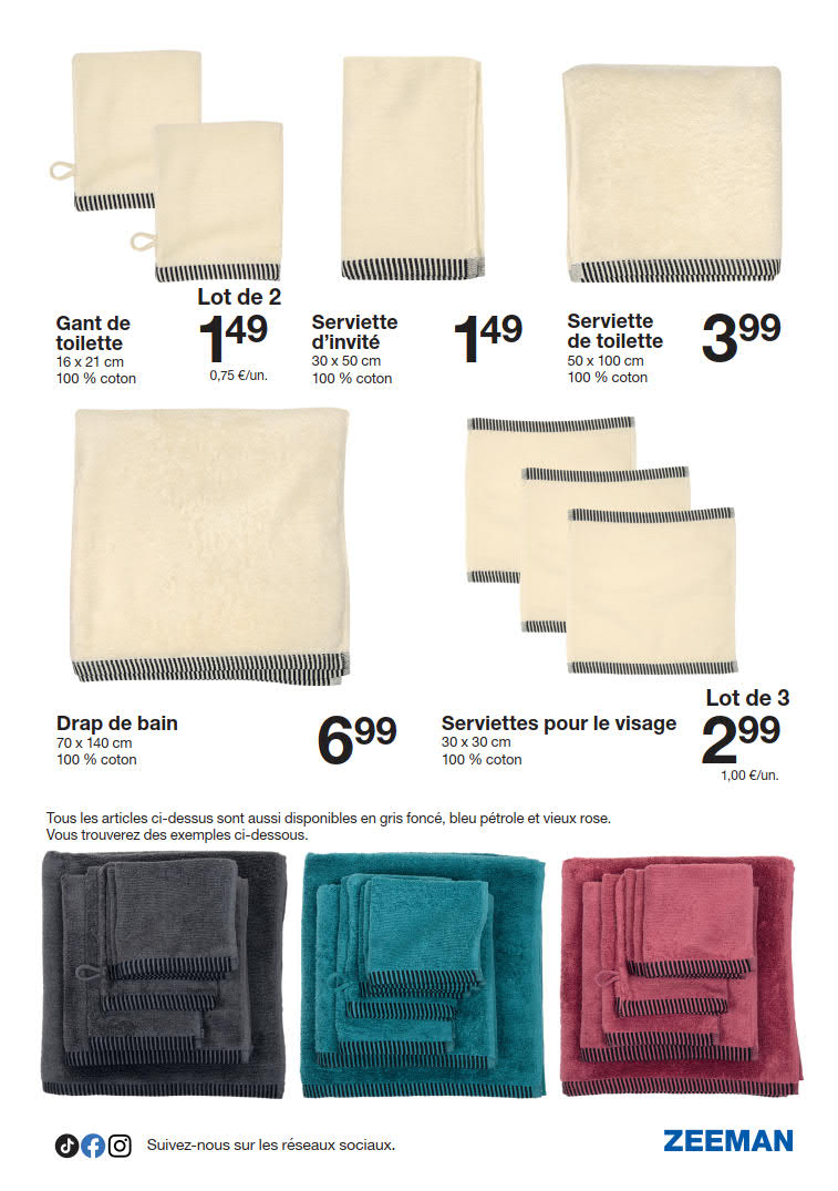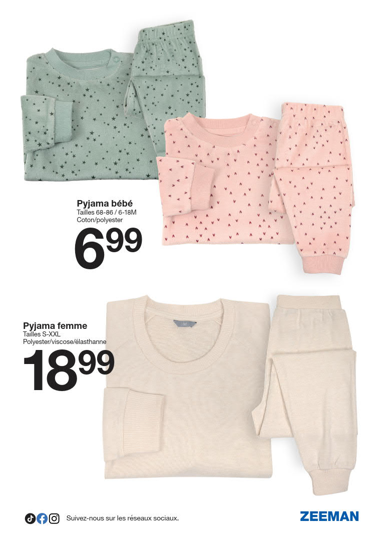 Vous êtes à la recherche de bonnes affaires et de réductions exceptionnelles? Ne cherchez plus loin que Zeeman pour répondre à tous vos besoins en matière de shopping. Nos promotions et offres sont proposées à des prix incroyablement bas, et notre gamme de produits convient à tous les goûts et à tous les budgets. Consultez notre brochure de promotion valable du 11 octobre au 24 octobre, et explorez le catalogue pour créer votre liste de courses. Ne manquez pas nos offres hebdomadaires et nos offres exclusives et restez à jour avec les dernières offres et réductions chez Zeeman.