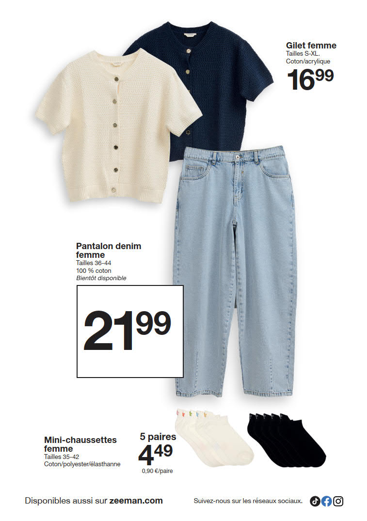 Nous proposons les derniers arrivages, vous offrant ainsi un large choix de produits parmi lesquels vous pouvez sélectionner vos favoris. Assurez-vous de parcourir nos produits et de sélectionner vos favoris avant l'expiration des offres. Faire du shopping de manière intelligente signifie réaliser des économies considérables, et les meilleures offres sont maintenant disponibles et valables jusqu'au 27 février. Alors ne tardez pas à faire vos courses. Notre personnel amical est toujours prêt à vous aider, vous pouvez donc être sûr d'un service client de qualité à chaque étape. Découvrez le shopping sans tracas et des économies importantes, uniquement avec Zeeman.